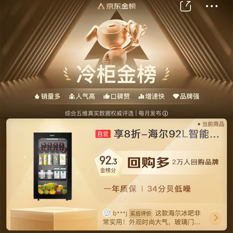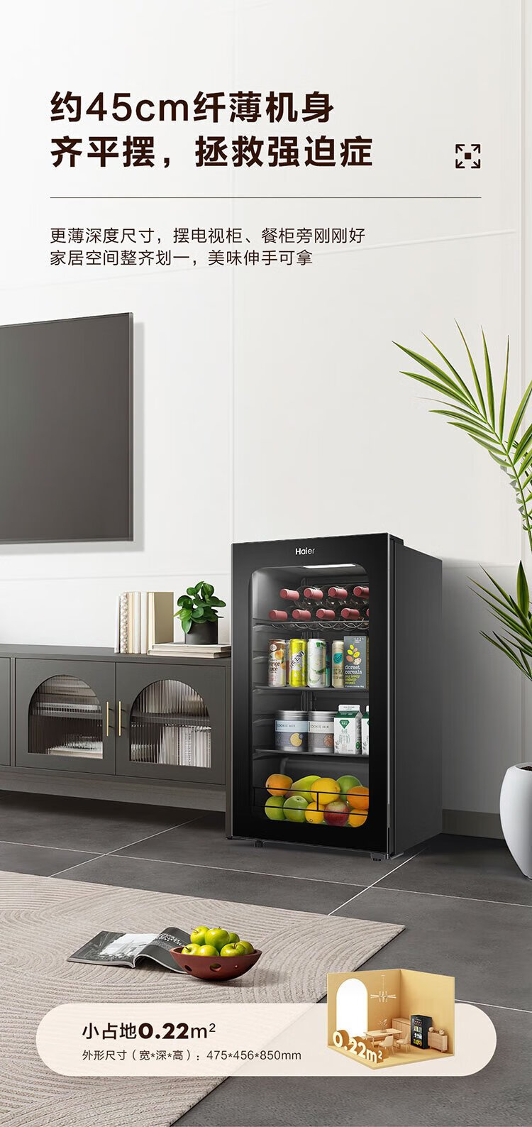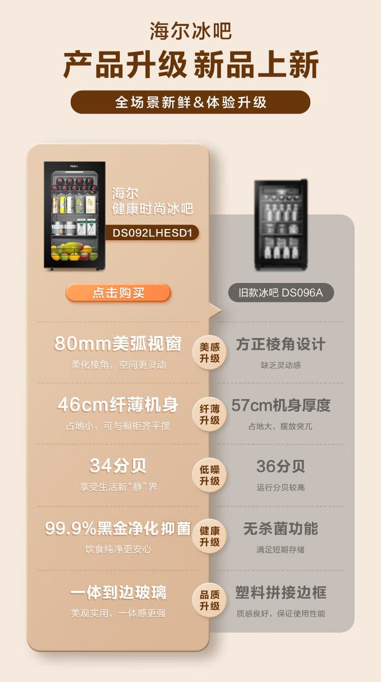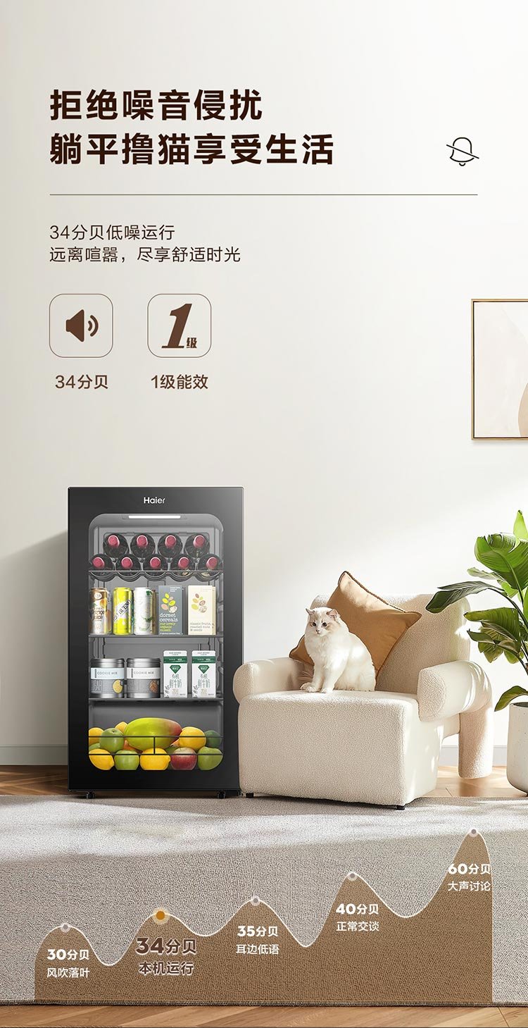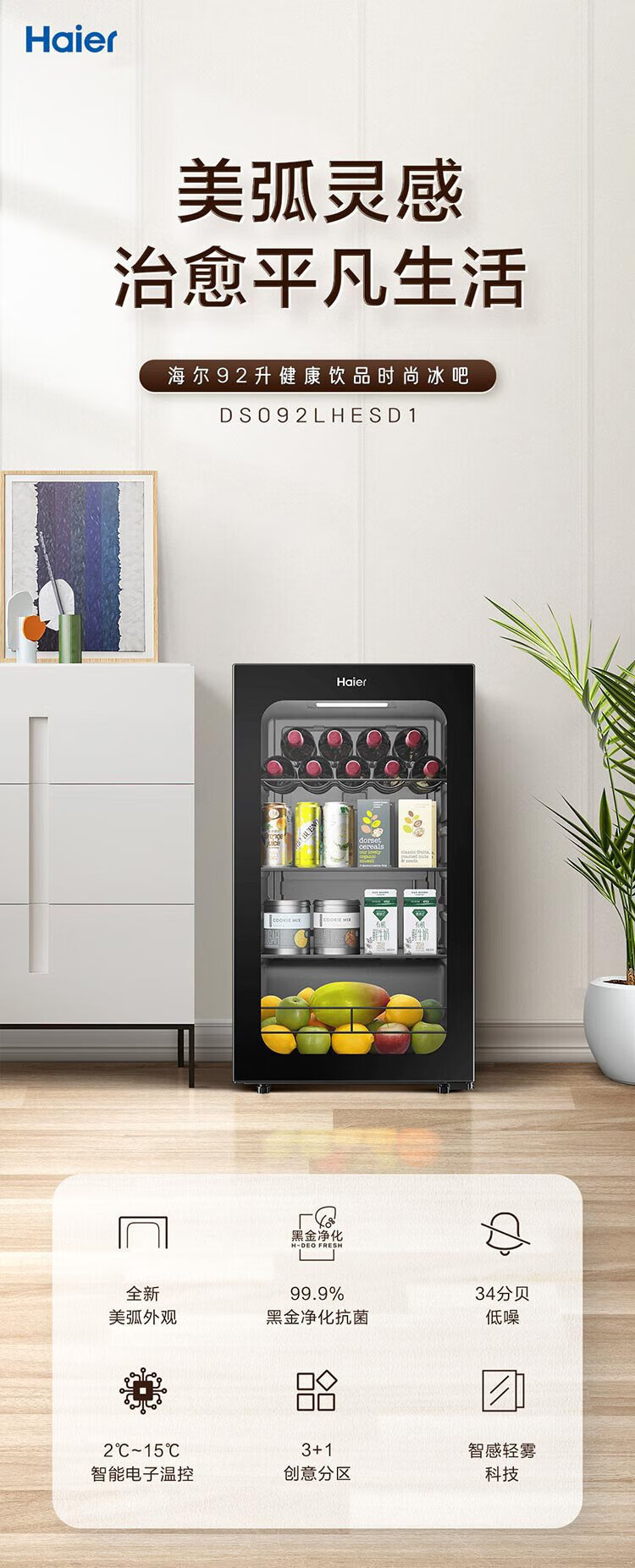 Haier 92L Antibacterial Ice Bar Home Living Room Tea Refrigerator Fresh Cabinet Office Small Refrigerator Small Mini Beverage Fruit Display Cabinet DS092LHESD1 National Subsidy