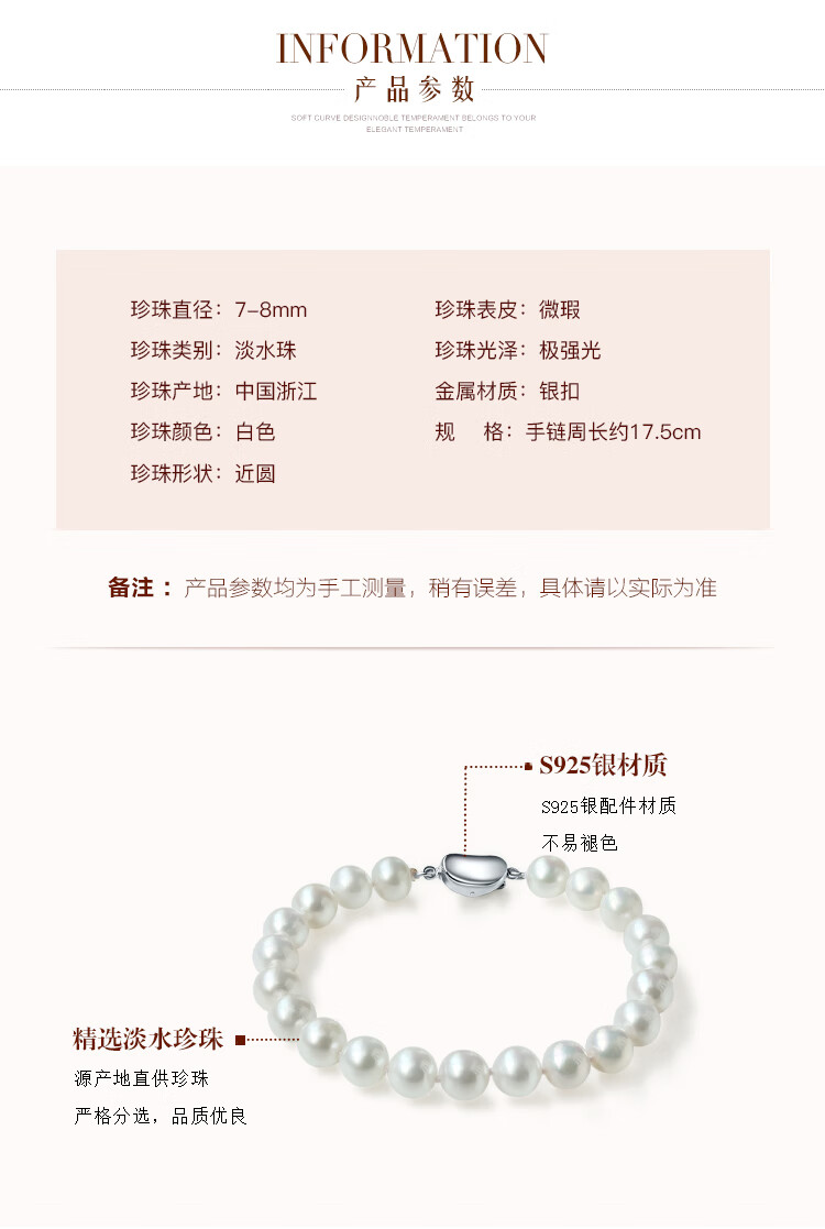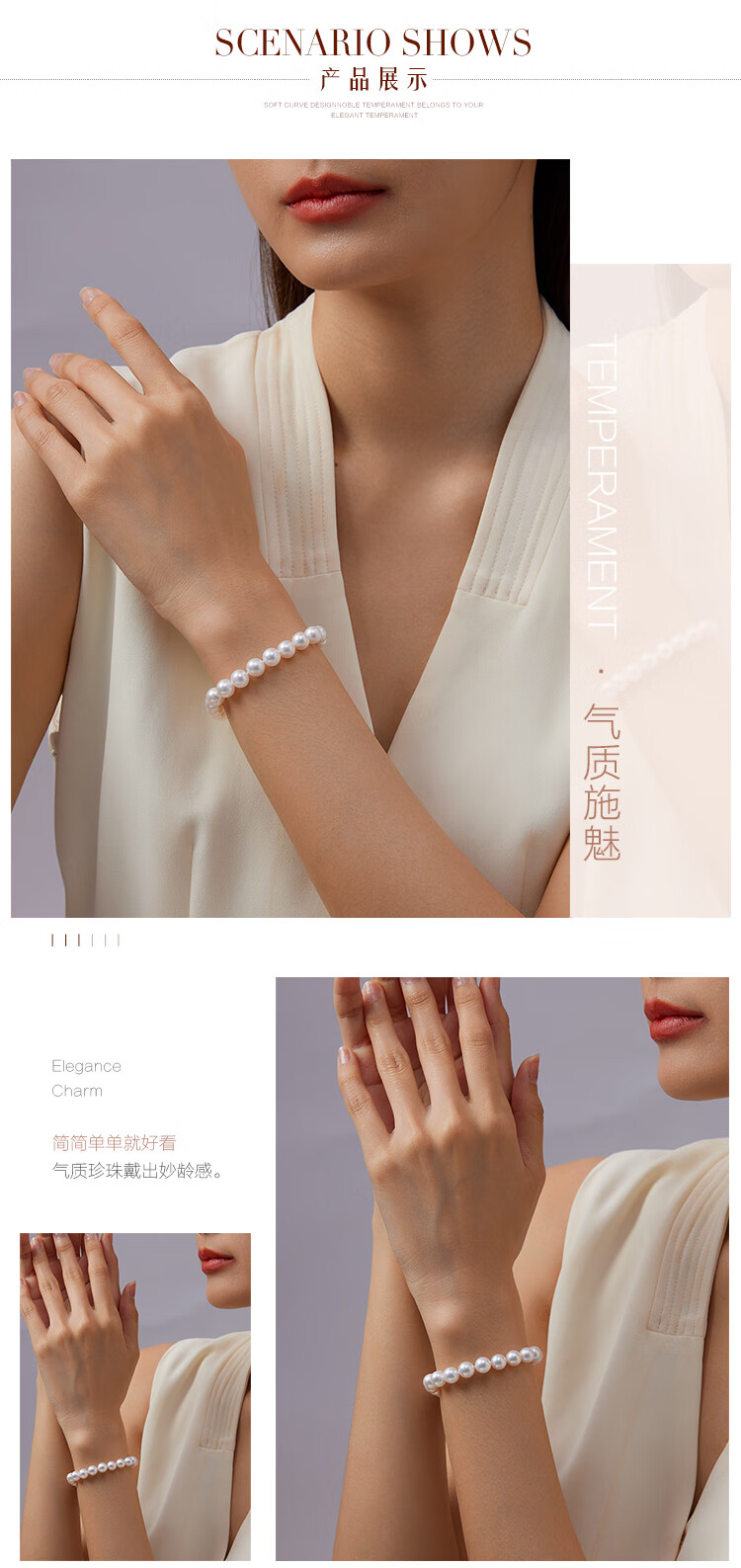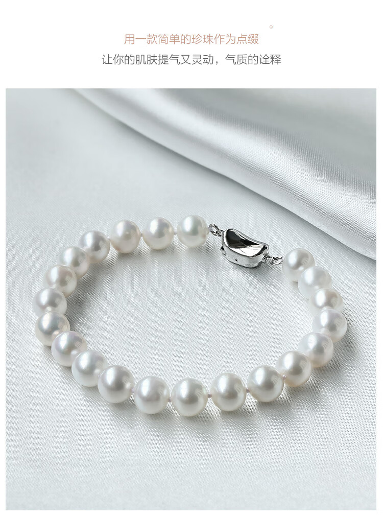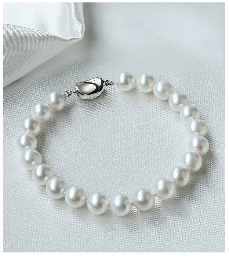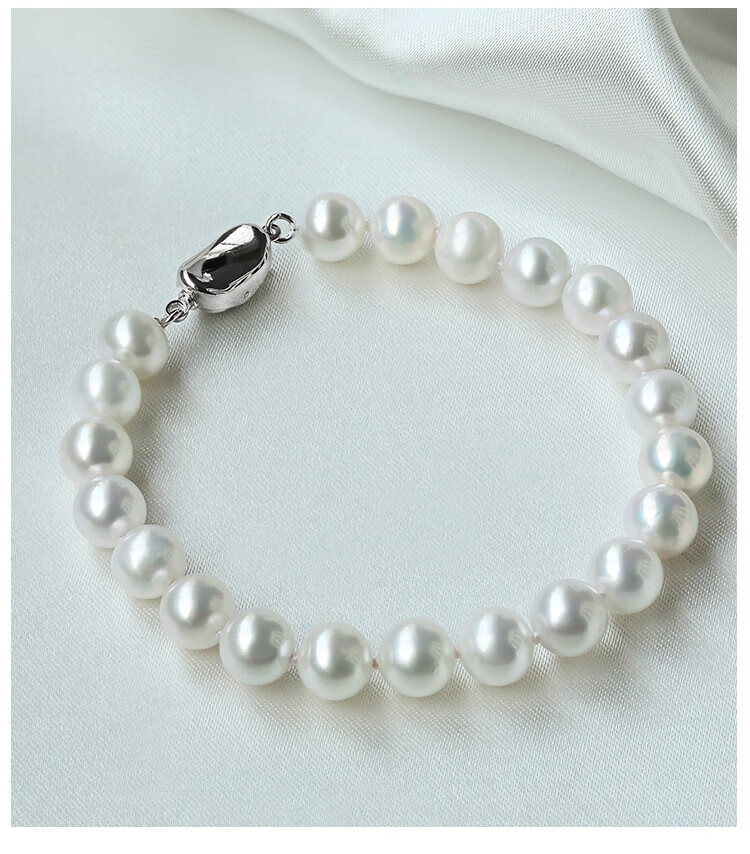 Queen of Pearls Fashionable and Elegant 7-8mm Near Round Freshwater Pearl Bracelet Pearl Bracelet Birthday Gift for Women