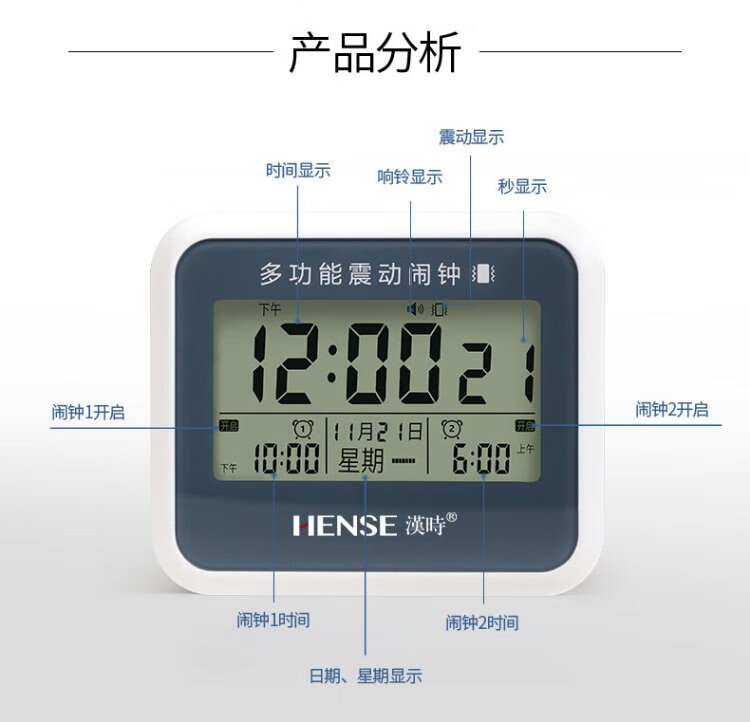 Hense multifunctional vibrating alarm clock student special wake-up artifact countdown timer clock alarm watch HA07