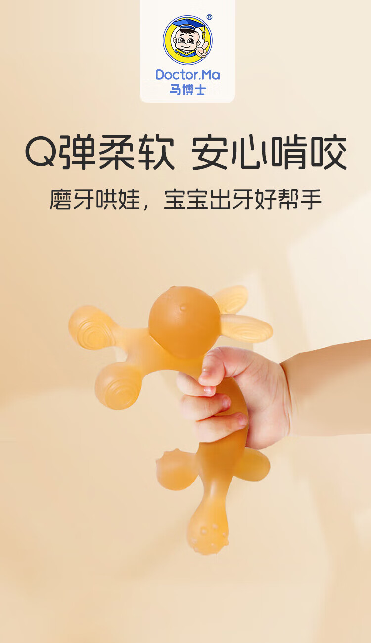 Dr. Ma baby teether to soothe little mushroom teether, baby teether toy, anti-eating hand teether, little rabbit