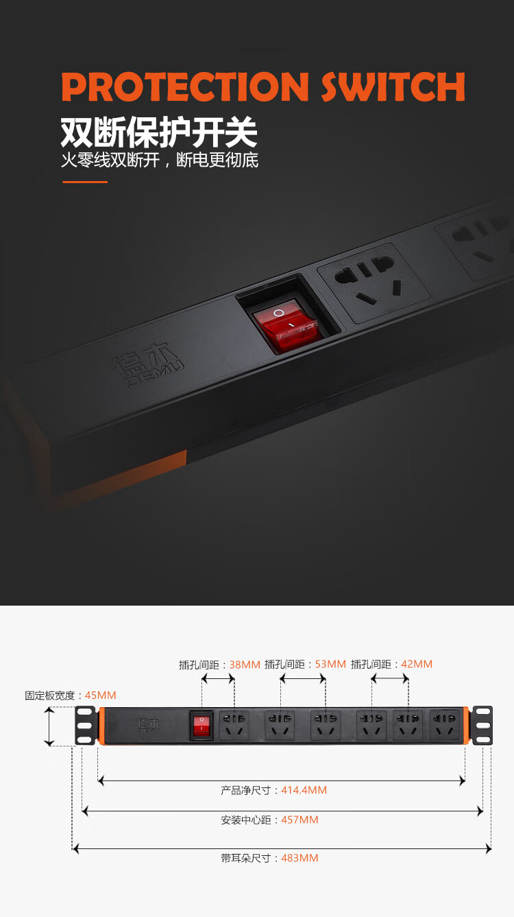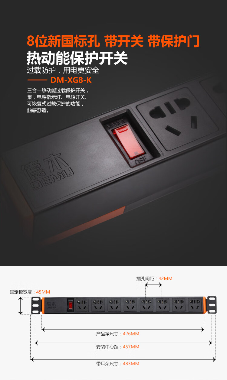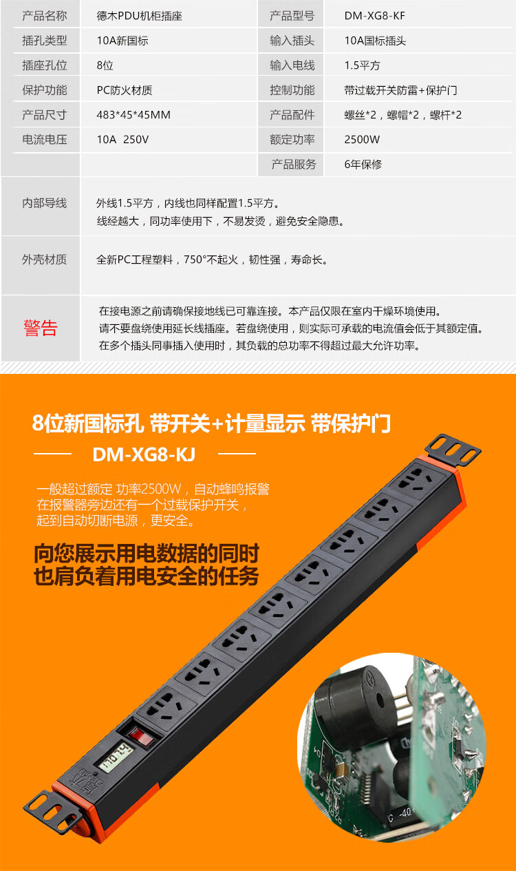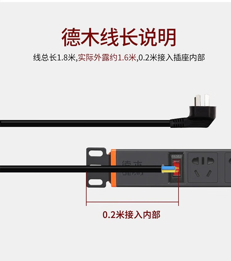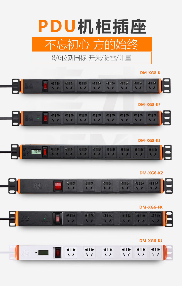 DEMU (DEMU) PDU cabinet socket switch lightning protection metering plug-in strip wiring board PC industrial power supply special socket 6-bit double break 1.5*1.8 meters Beijing warehouse delivery