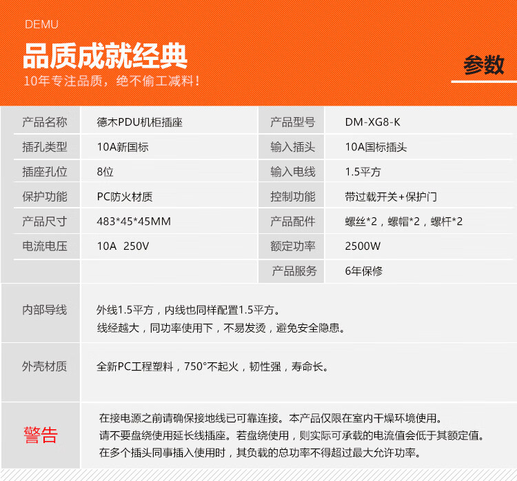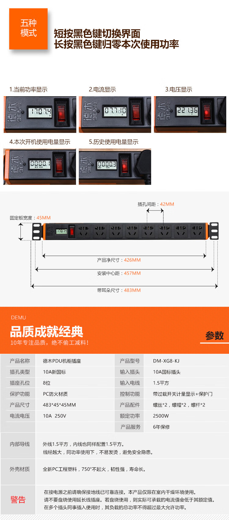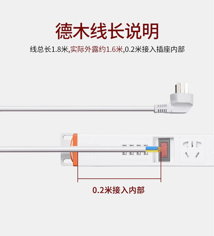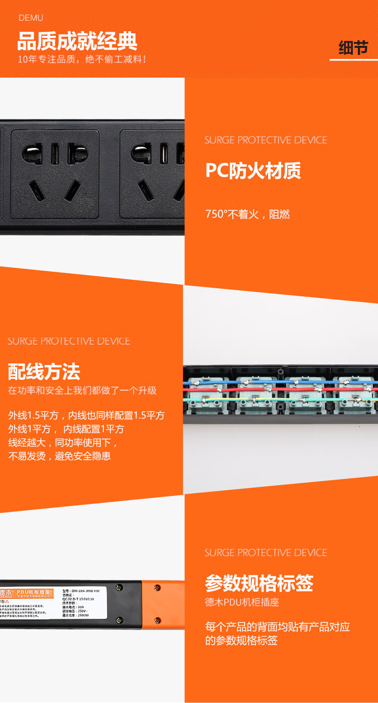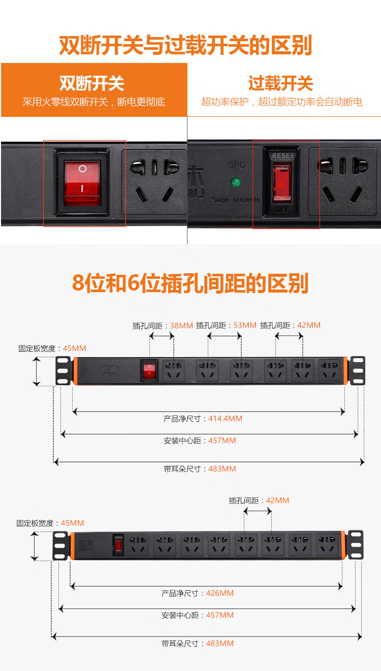 DEMU (DEMU) PDU cabinet socket switch lightning protection metering plug-in strip wiring board PC industrial power supply special socket 6-bit double break 1.5*1.8 meters Beijing warehouse delivery