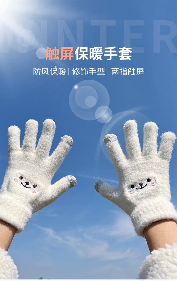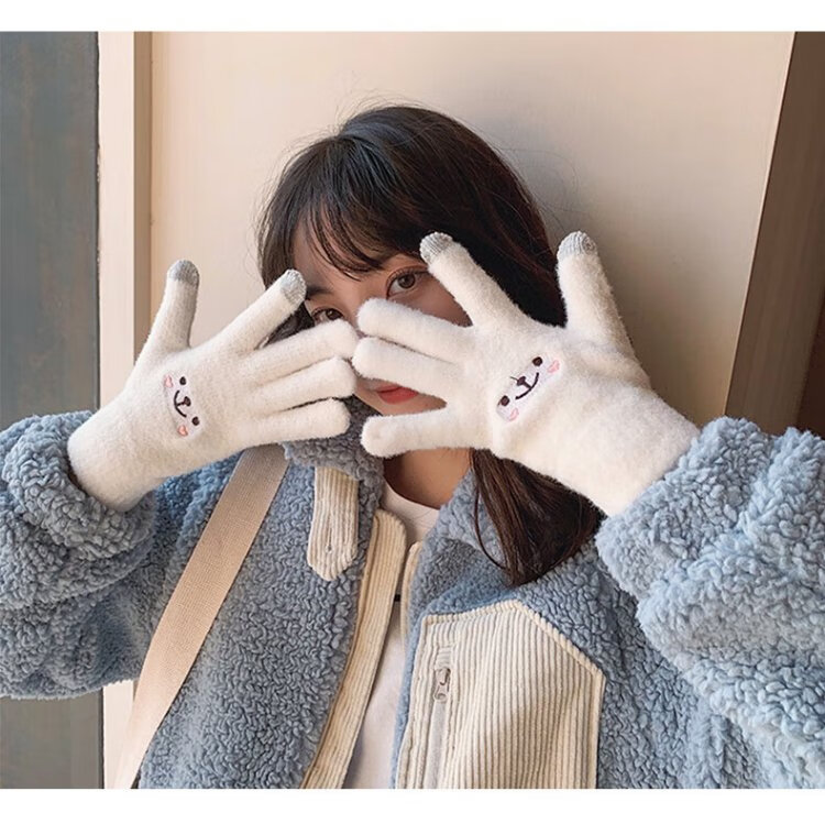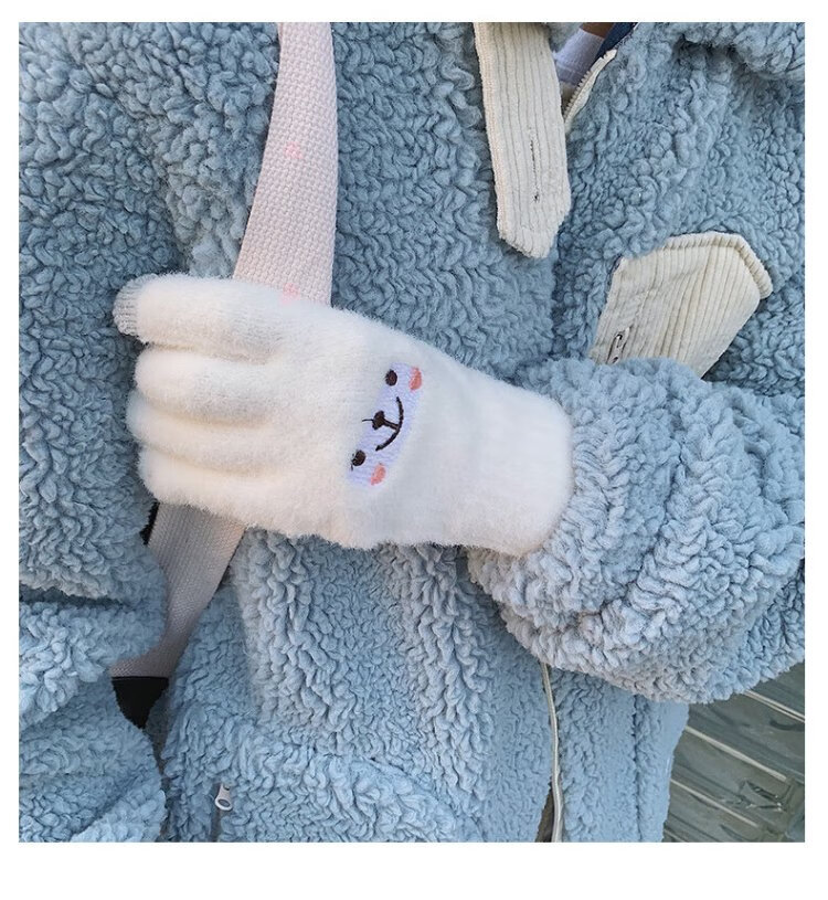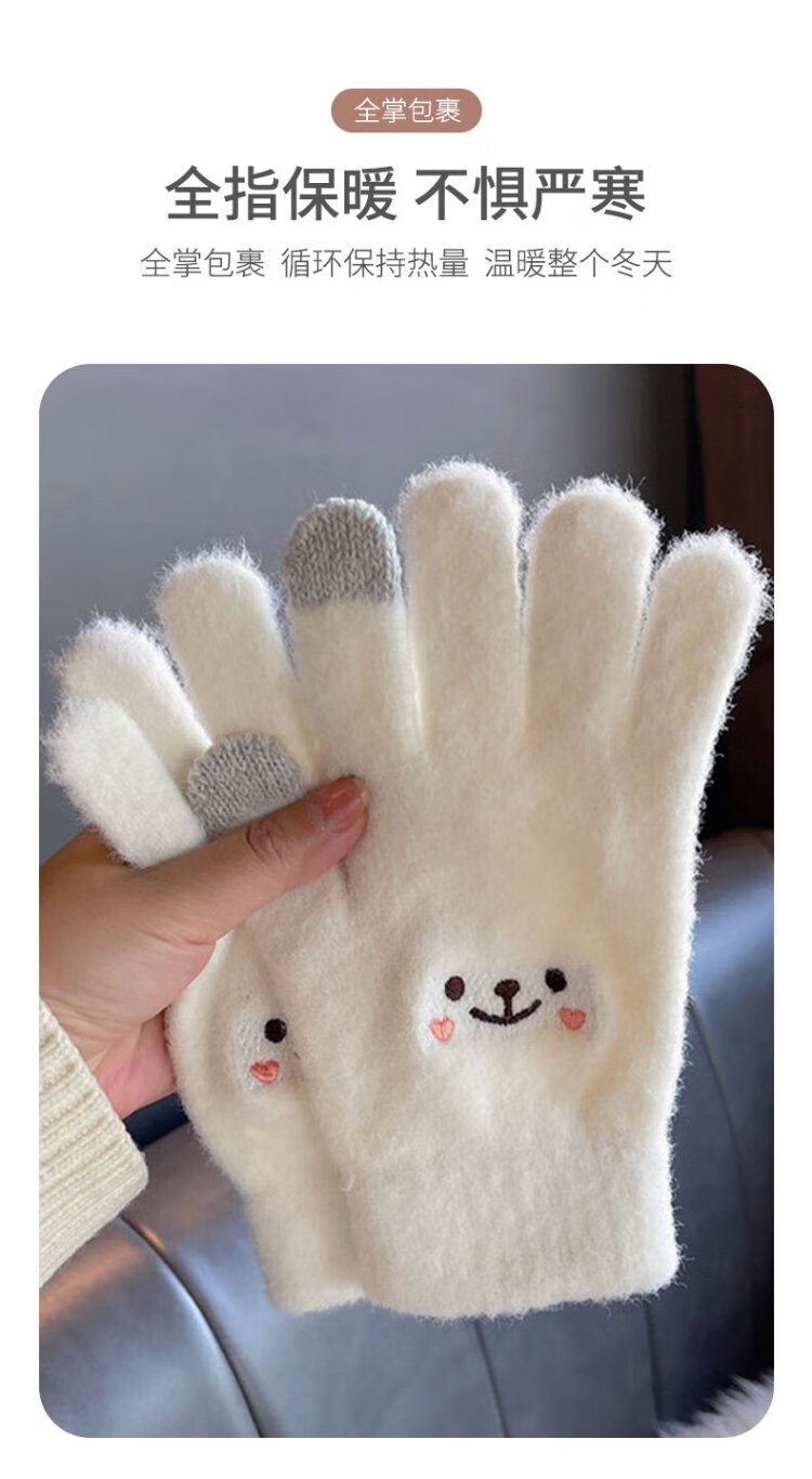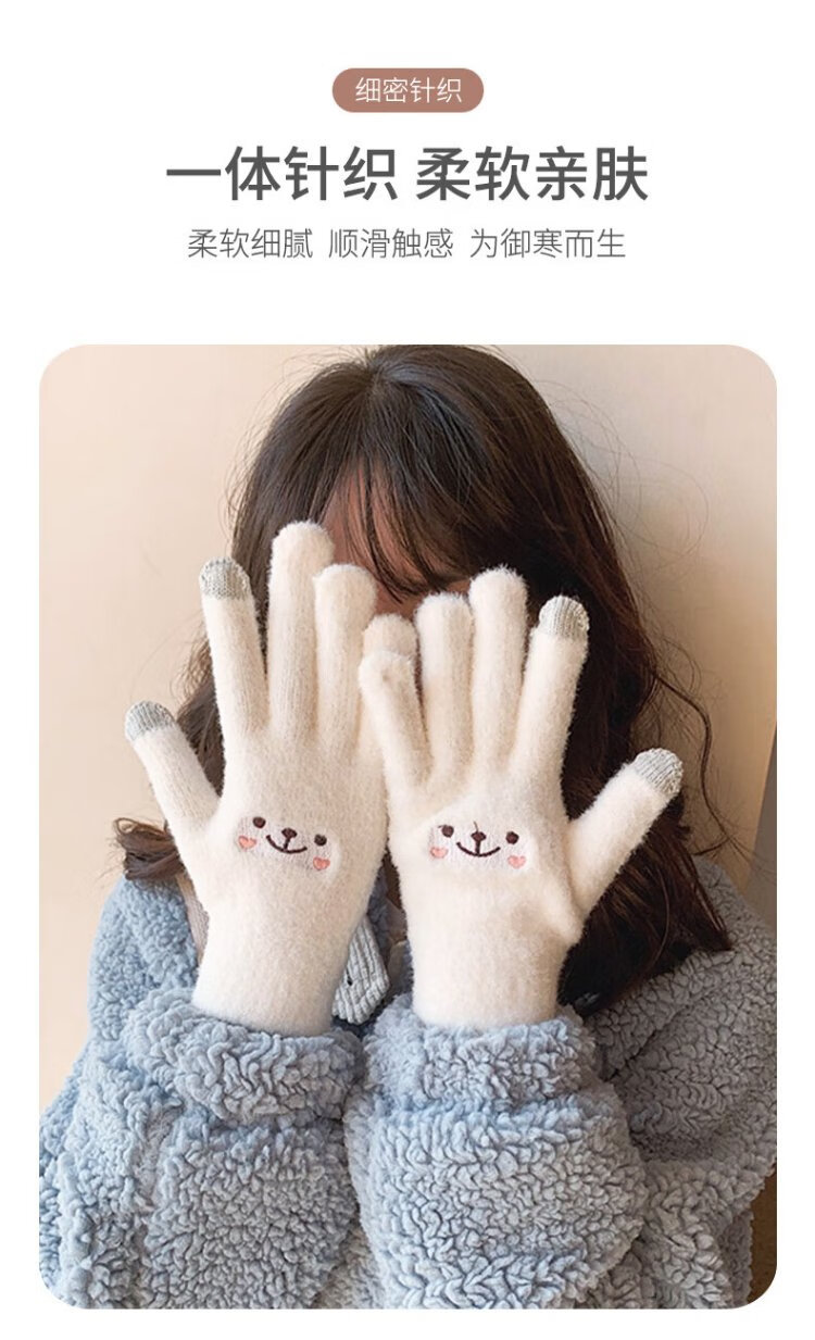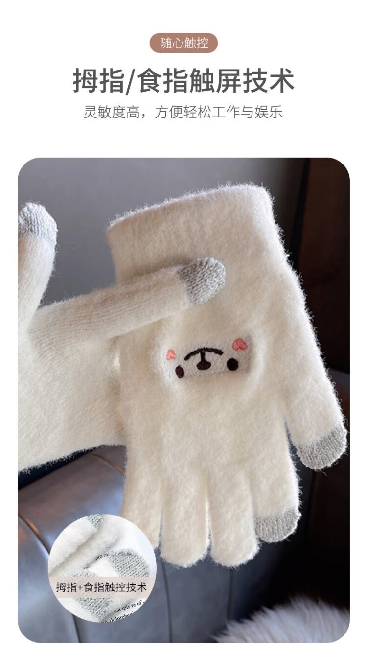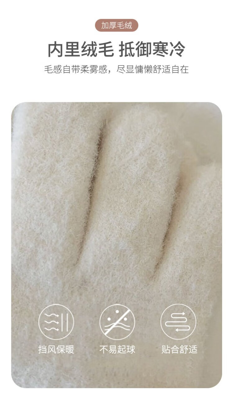 FitonTon Woolen Gloves Women's Autumn and Winter Windproof Gloves Plus Velvet Thickened Warm Women's Gloves Outdoor Cycling Gloves