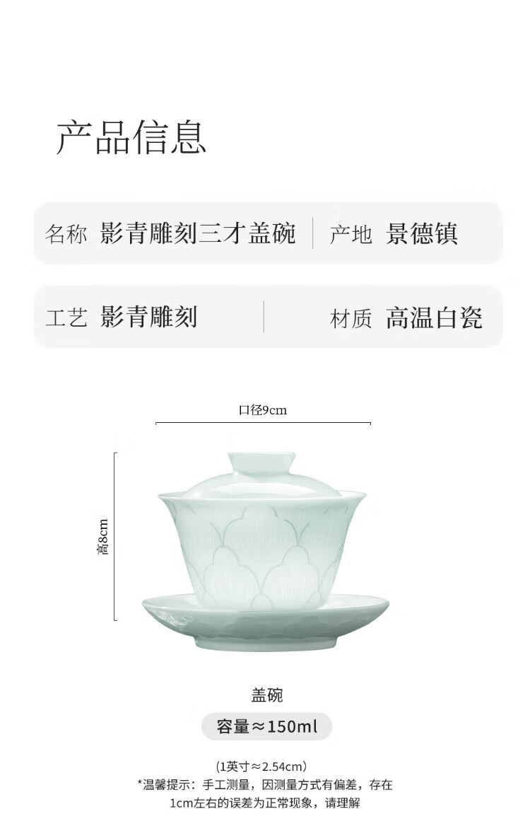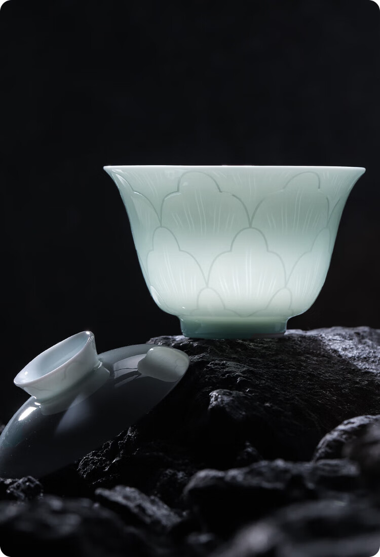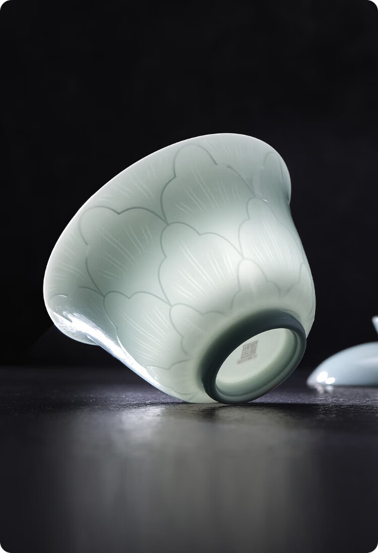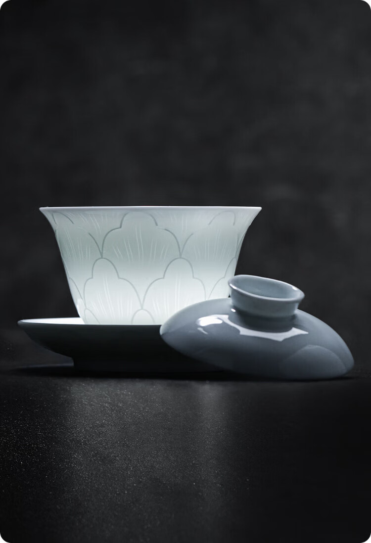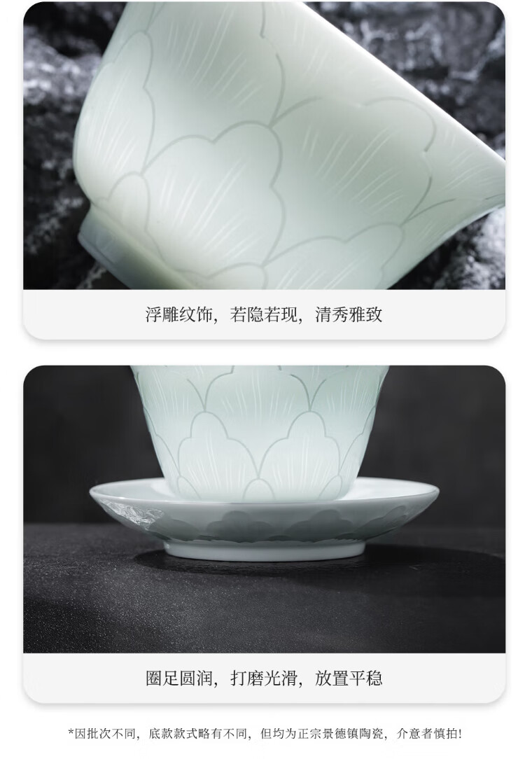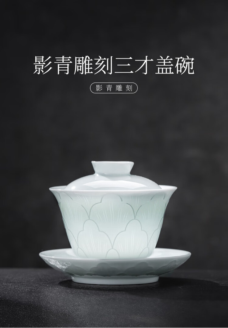 Jingdezhen (jdz) Ceramic Covered Bowl Yingqing Sculpture Household Sancai Covered Bowl Chinese Kung Fu Tea Set High-Looking Tea Bowl High-End Gift