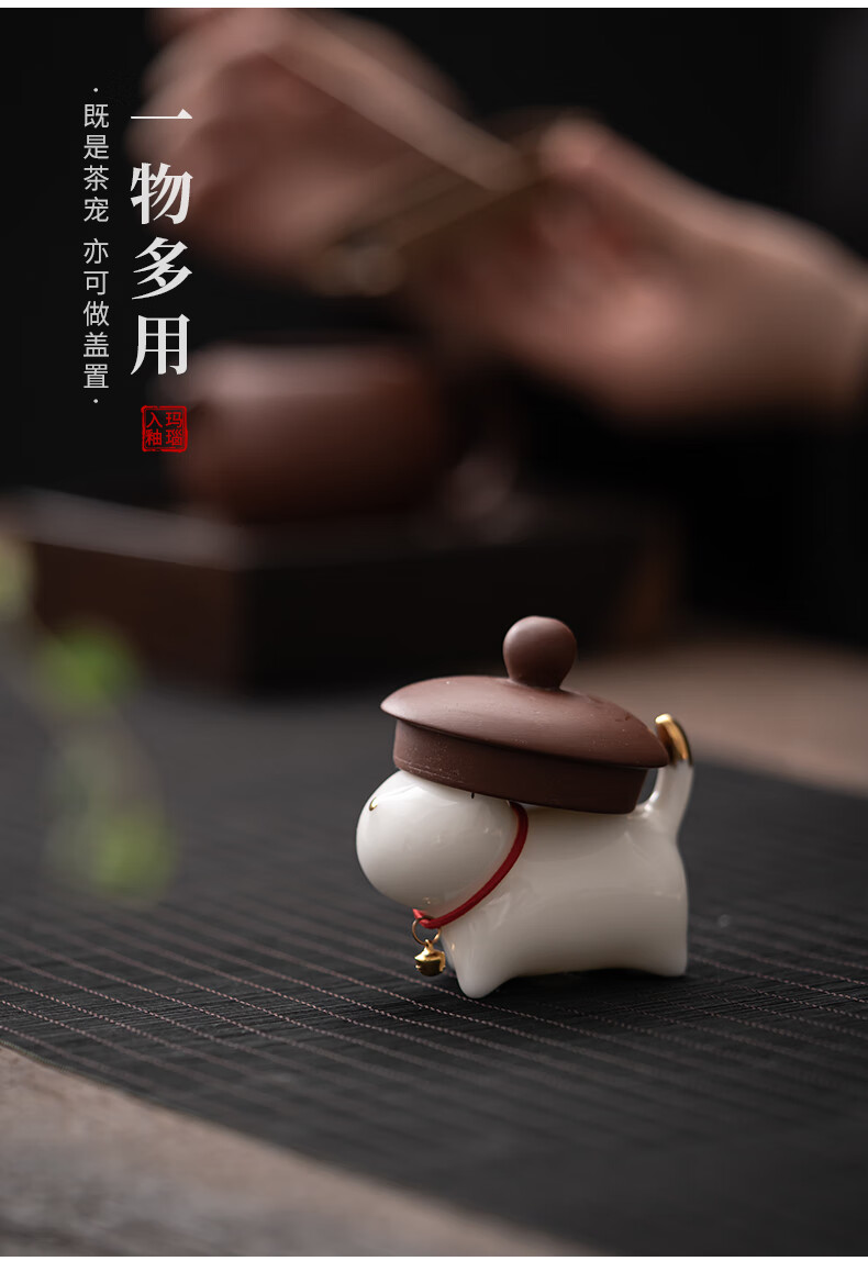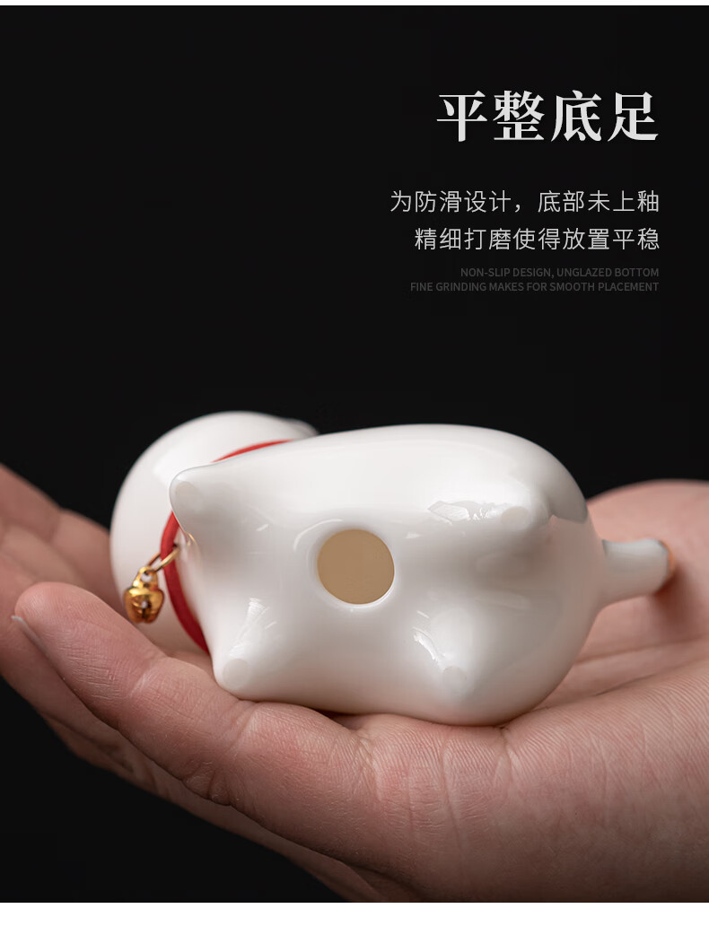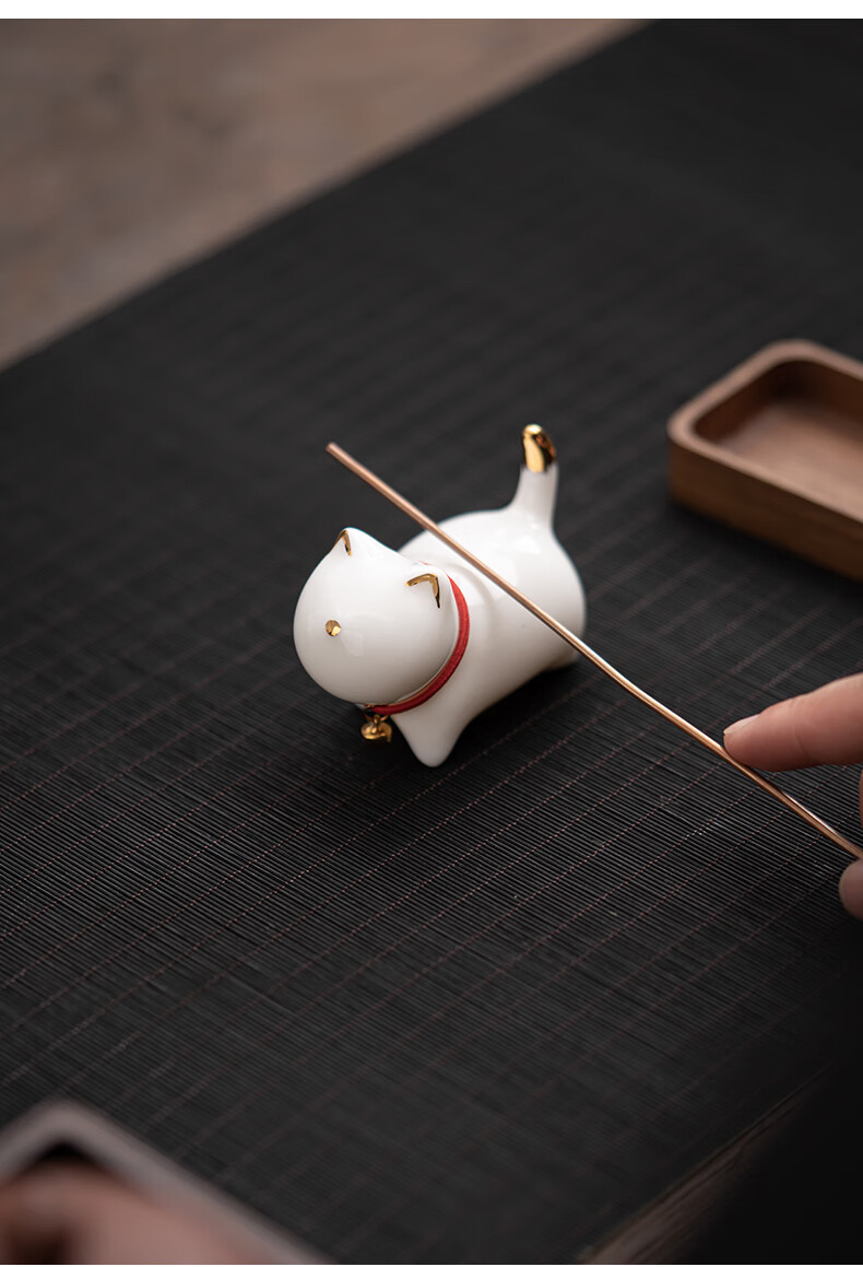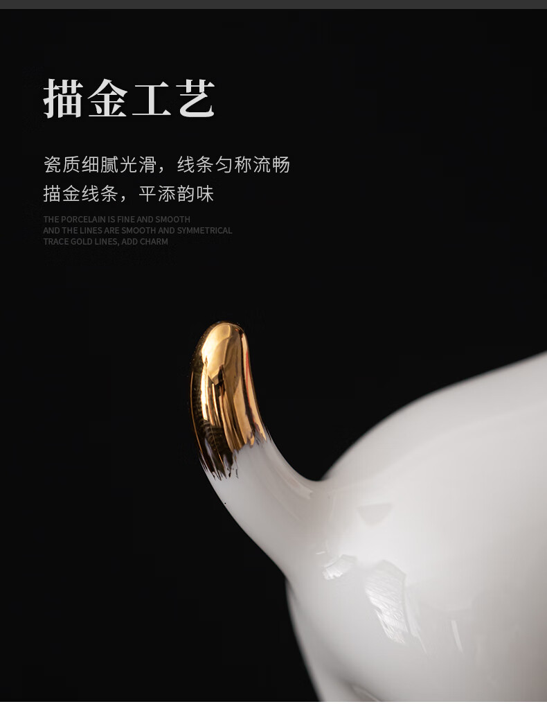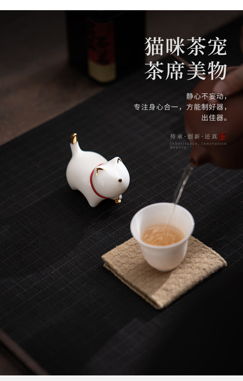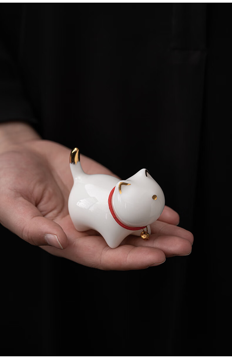 SUSHI CERAMICS mutton fat jade porcelain tea set accessories tea pet gold painted kitten J0876
