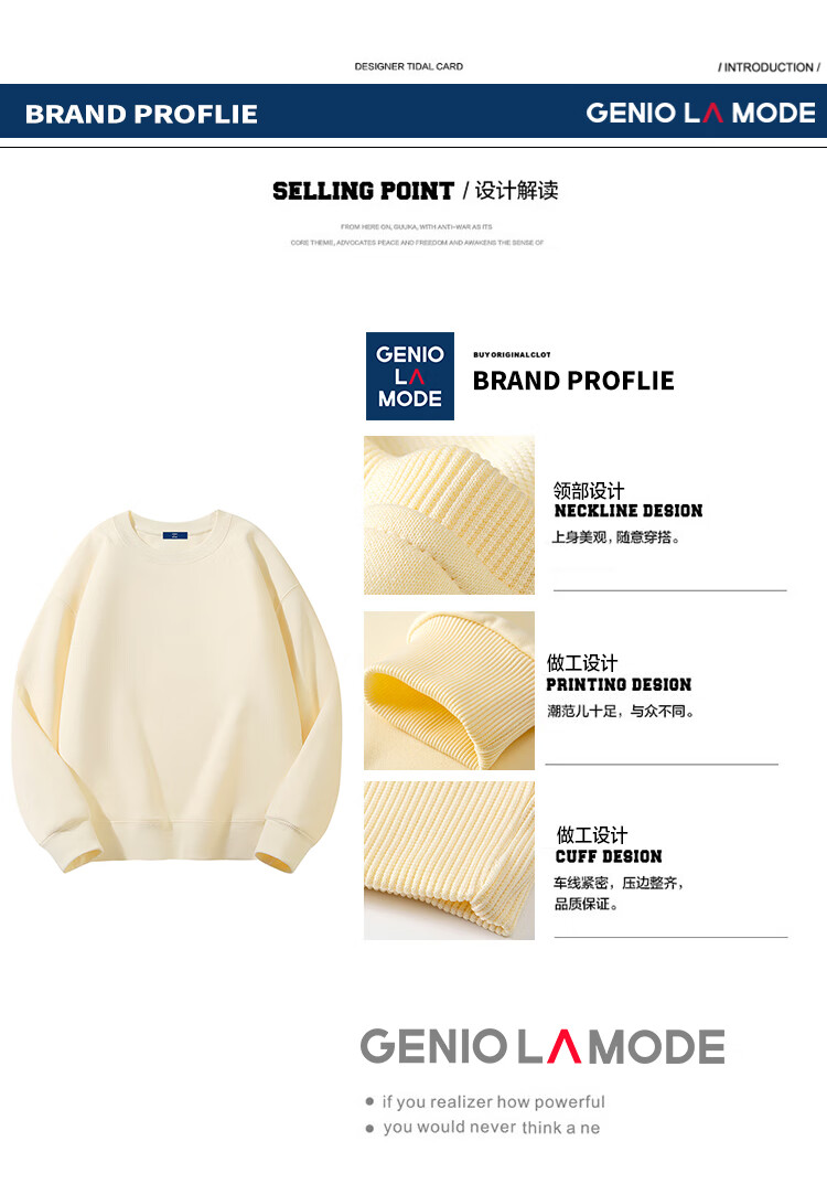 GENIOLAMODE sweatshirt men's loose solid color round neck pullover sweatshirt basic versatile long-sleeved top