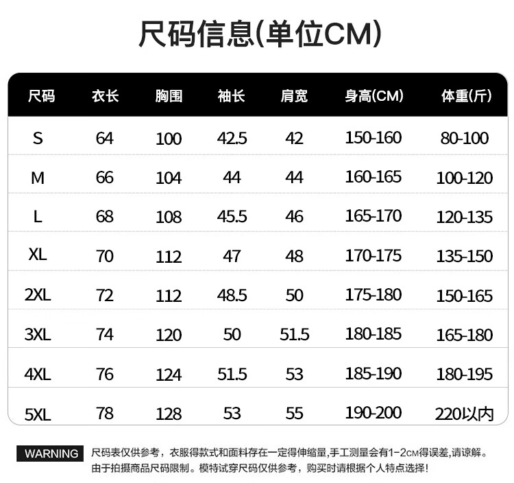 China (cm) 165 / 88-90 170 / 96-98 175 / 108-110 180 / 118-122 185 / 126-130