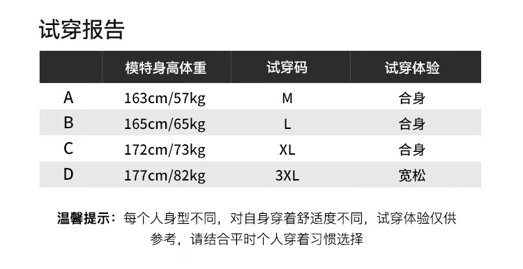 China (cm) 160-165/84-86 165-170 / 88-90 167-172 / 92-96 168-173 / 98-102 170-176 / 106-110