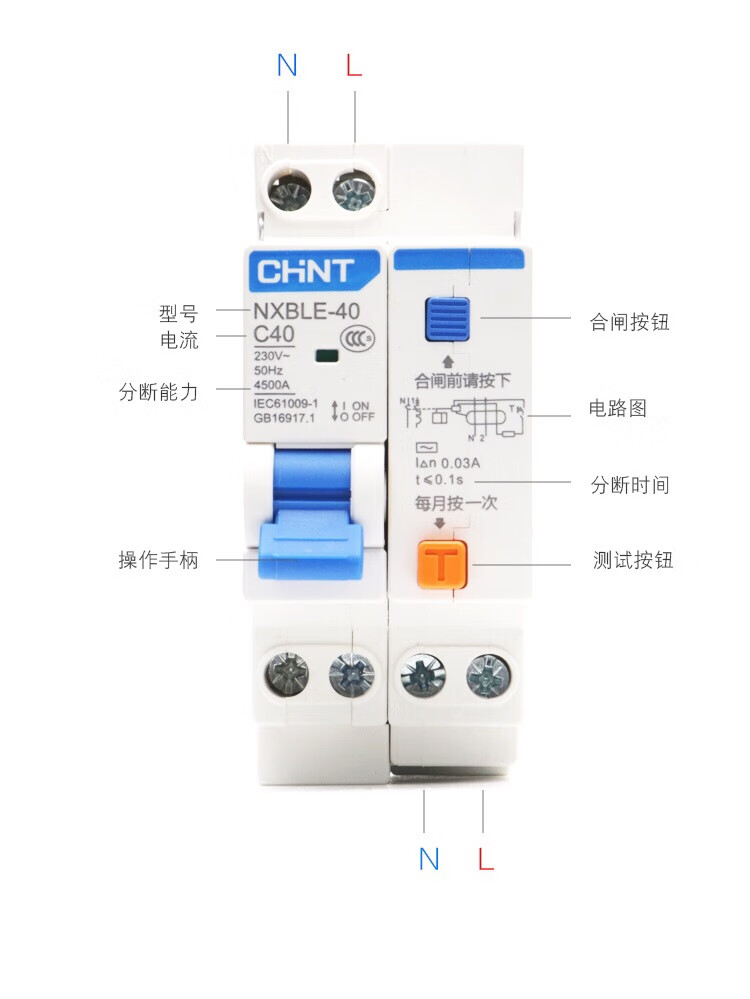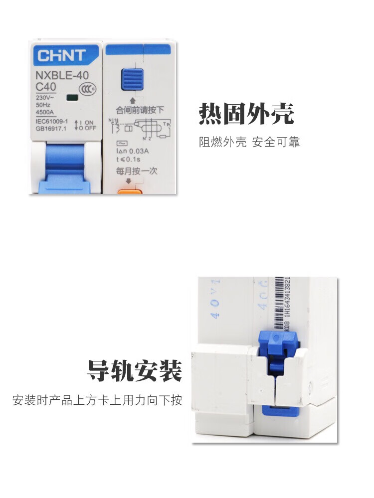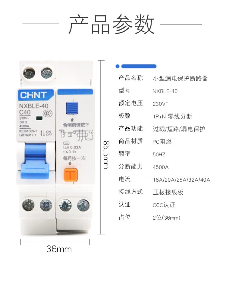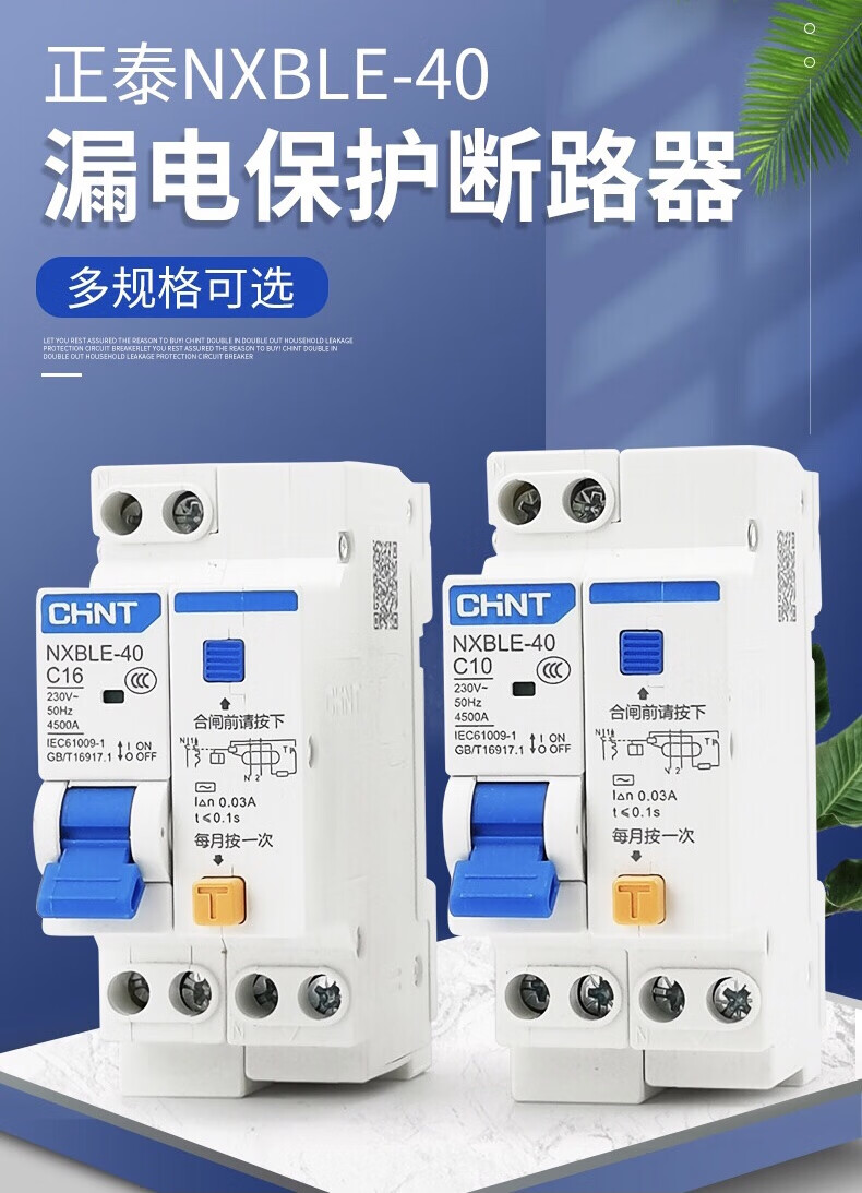 Chint (CHNT) NXBLE-40-1P+N-C16 leakage protector with air switch circuit breaker 1p+n air switch 220v double input double break 16A