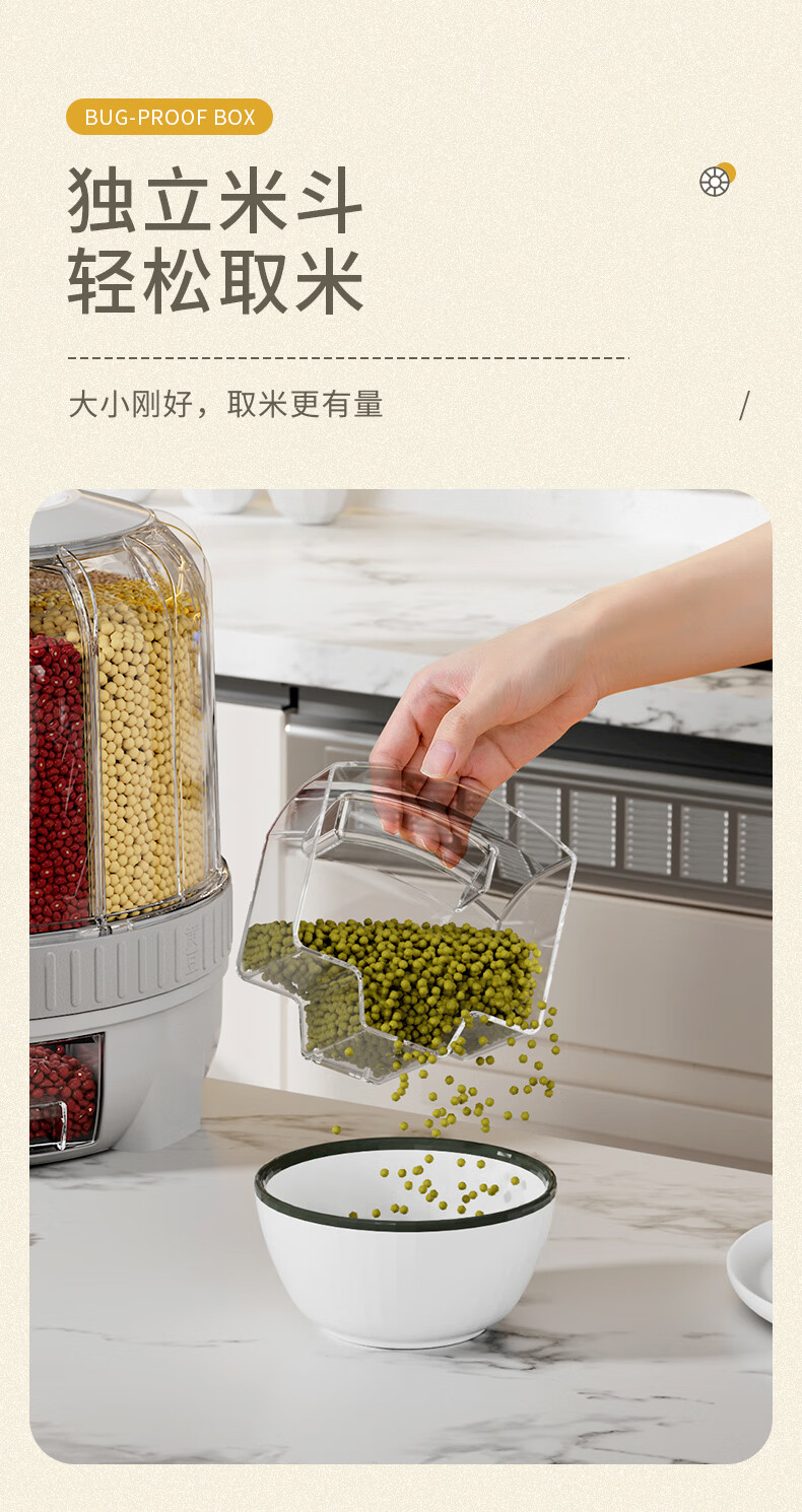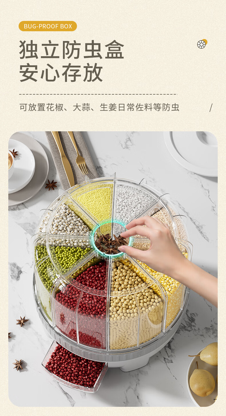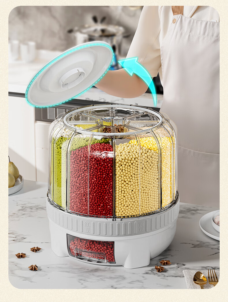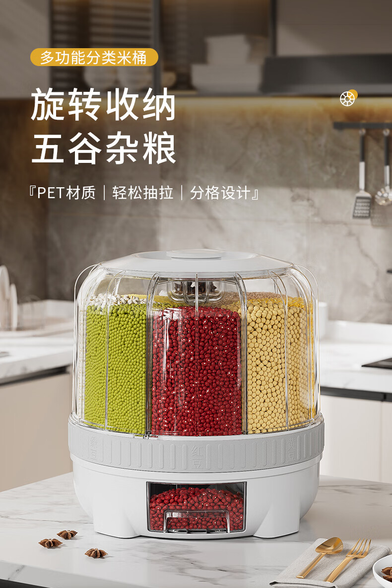 JEKO&JEKO grain storage box, rice bucket, rotating compartment, moisture-proof and insect-proof, sealed grain and bean storage tank, white