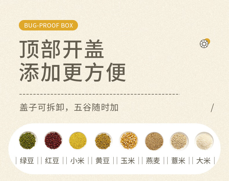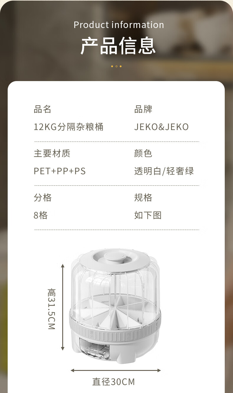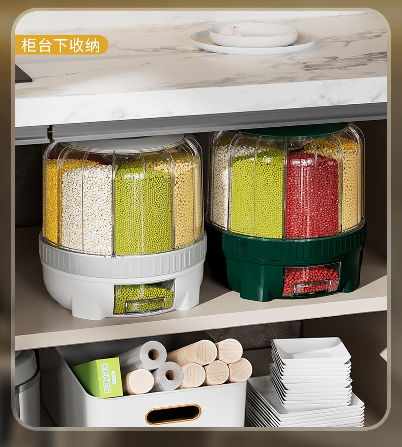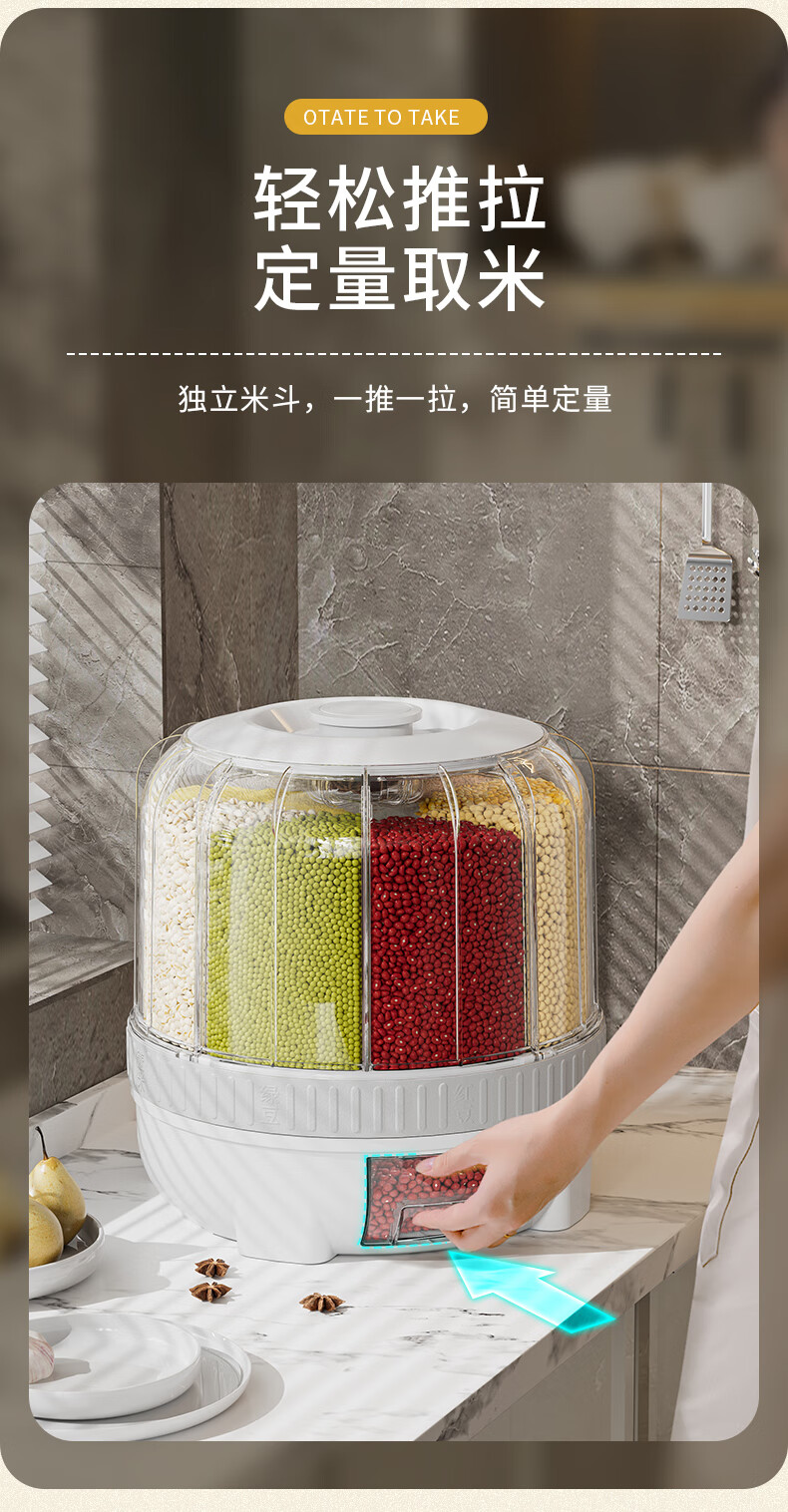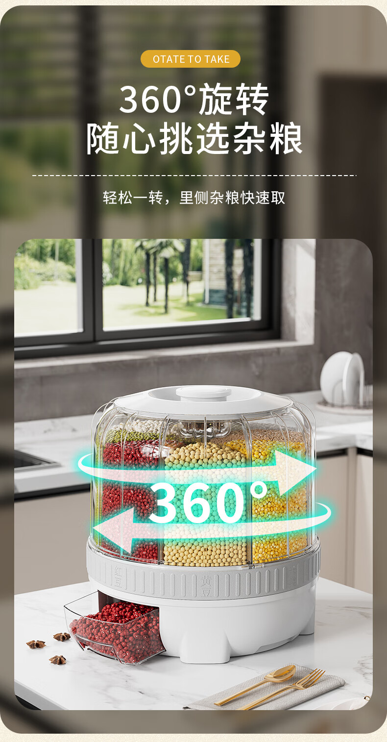JEKO&JEKO grain storage box, rice bucket, rotating compartment, moisture-proof and insect-proof, sealed grain and bean storage tank, white
