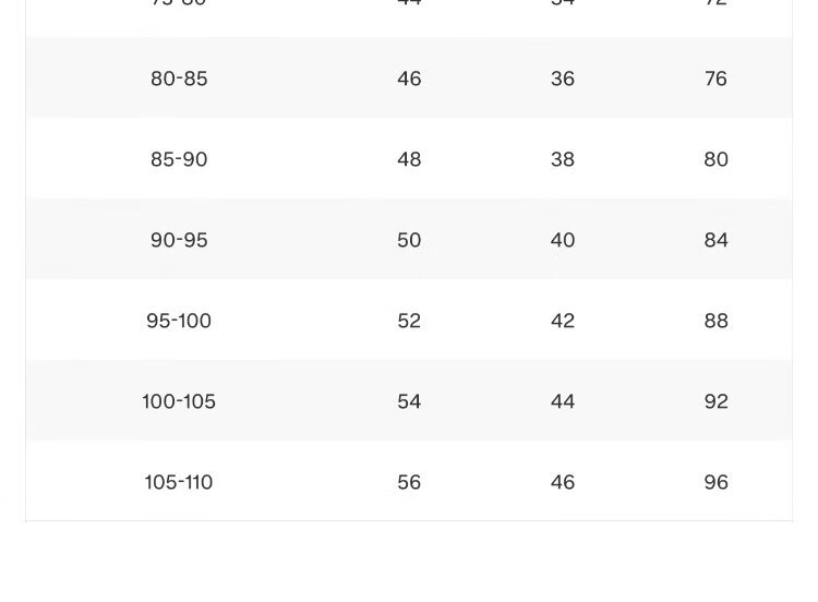 China(cm) 72-76 76-81 81-87 87-93 93-98