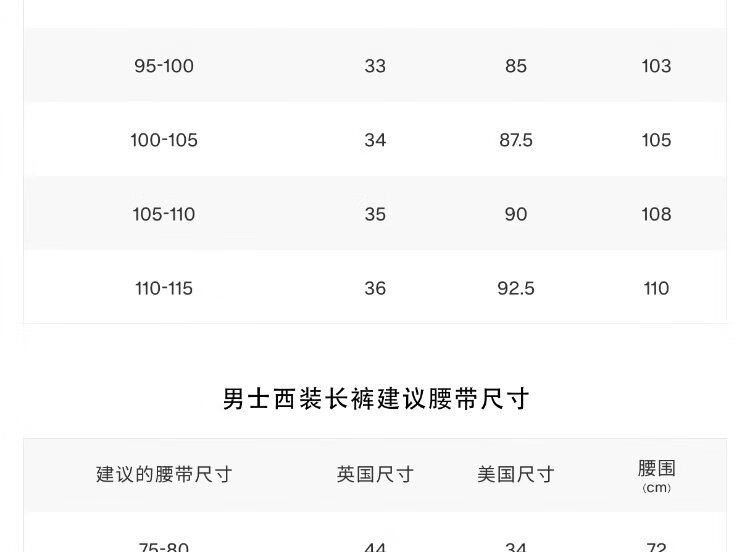 China (cm) 160-165/84-86 165-170 / 88-90 167-172 / 92-96 168-173 / 98-102 170-176 / 106-110