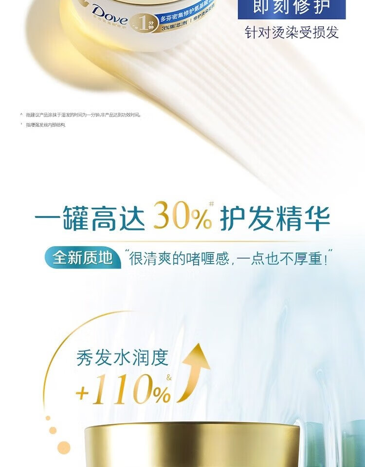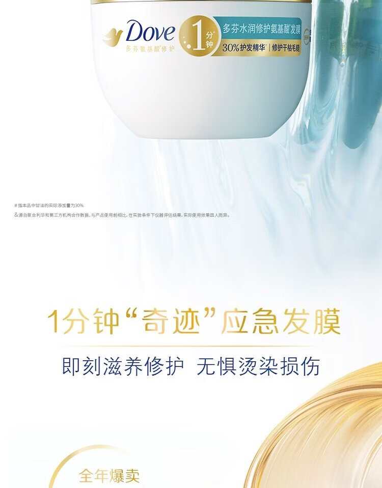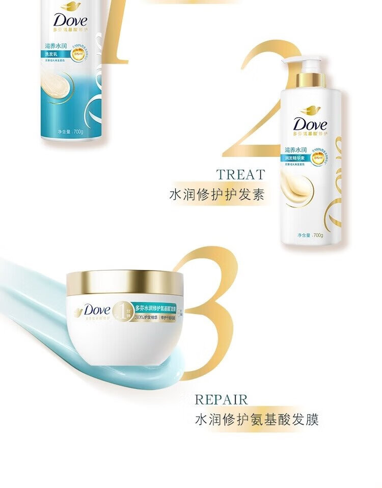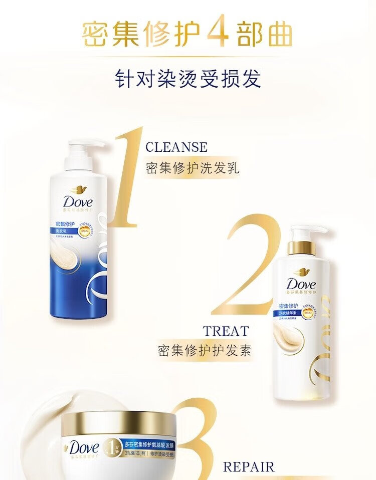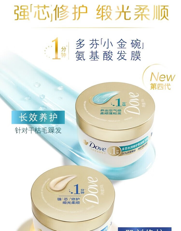 Dove Intensive Repair Amino Acid Little Golden Bowl Hair Mask 260gx2+50gx2 Conditioner Protein Nutritional Repair