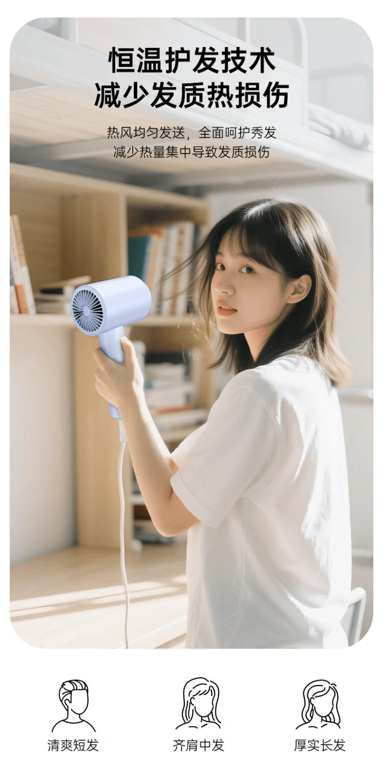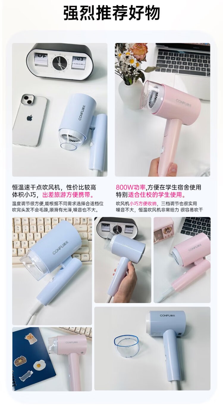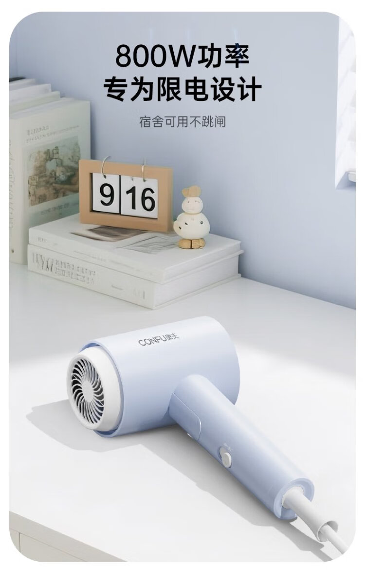 CONFU hair dryer for home use in student dormitories 800w low power quick drying small portable mini folding hair dryer KF-3152A Wuyu Blue