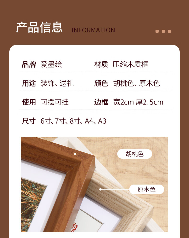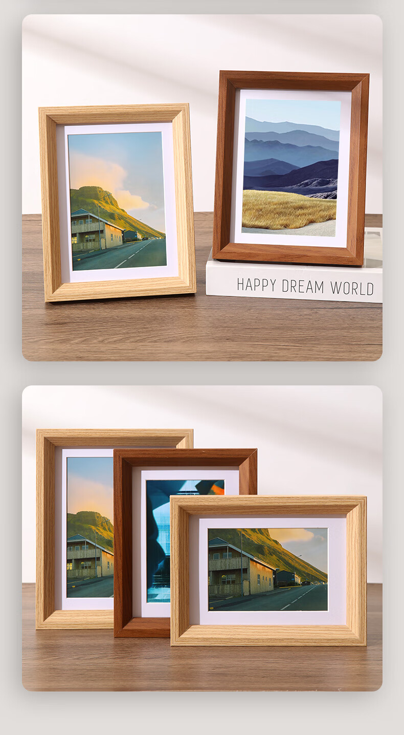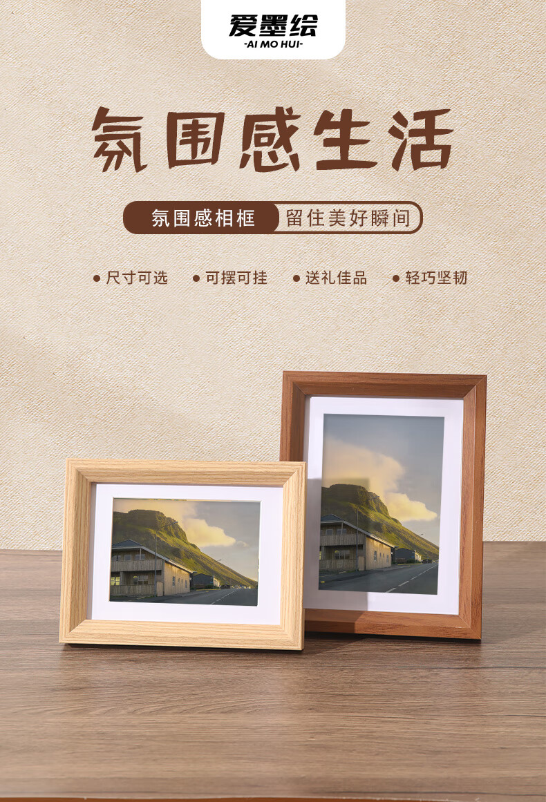 爱墨绘相框挂墙7寸北欧风木纹画框照片墙结婚礼物婚纱照儿童照片框摆台
