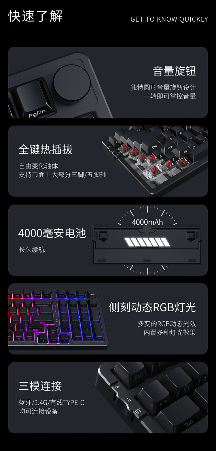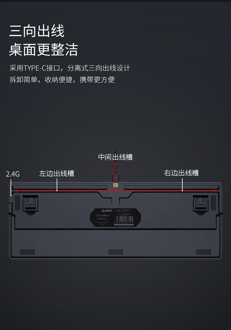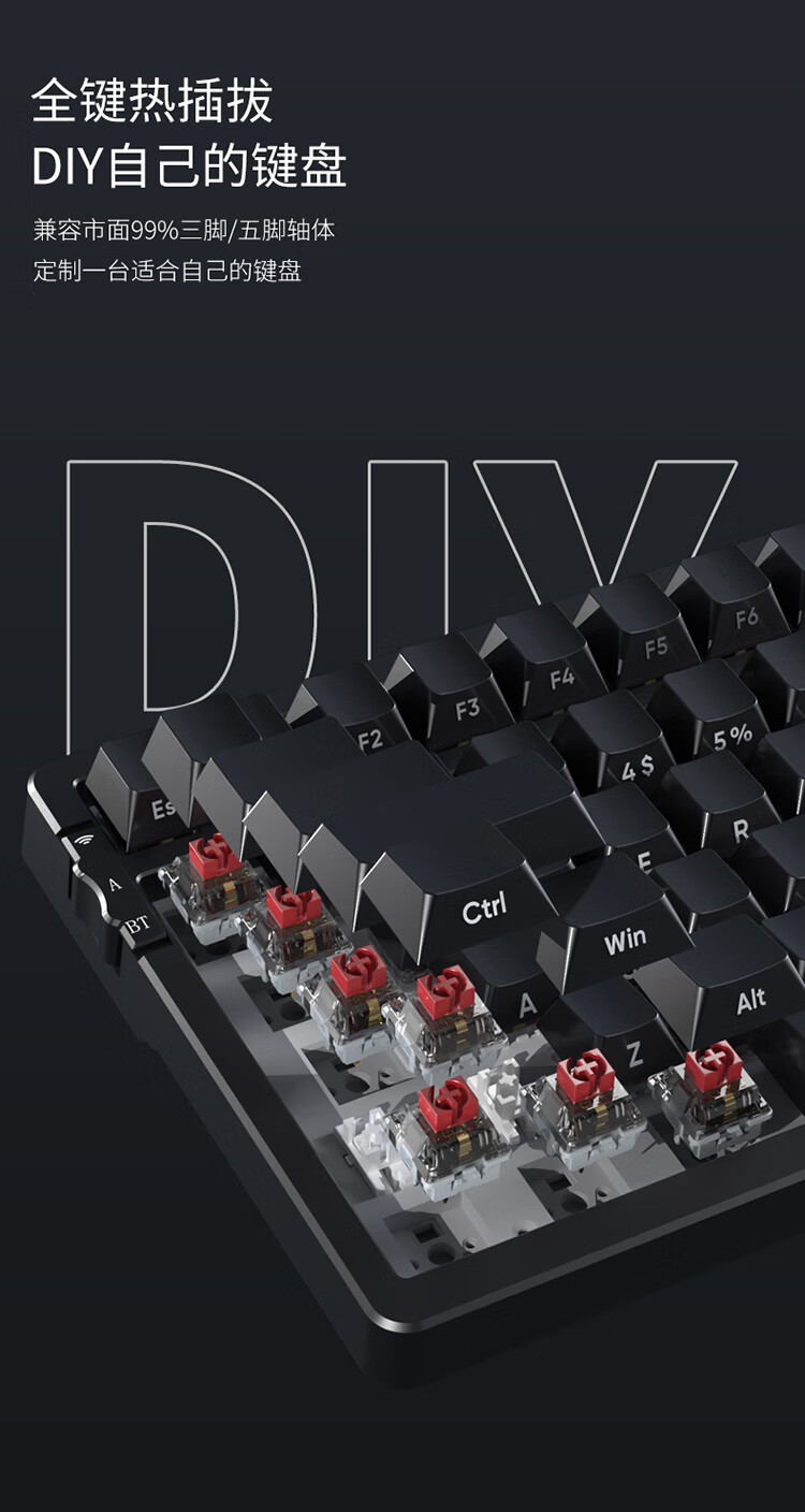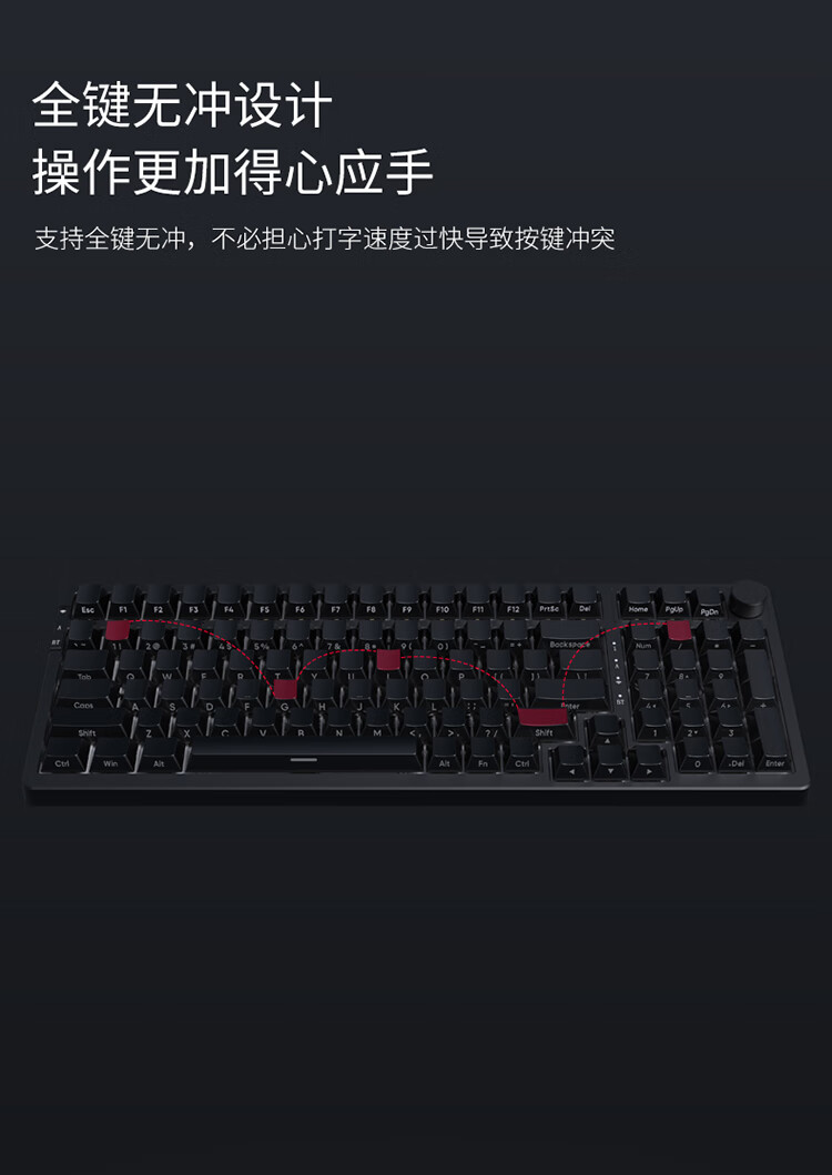 AJAZZ AK992 side-engraved mechanical keyboard Gasket three-mode hot-swappable 2.4G/wired/Bluetooth PBT original RGB computer e-sports game factory red axis