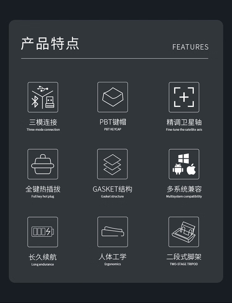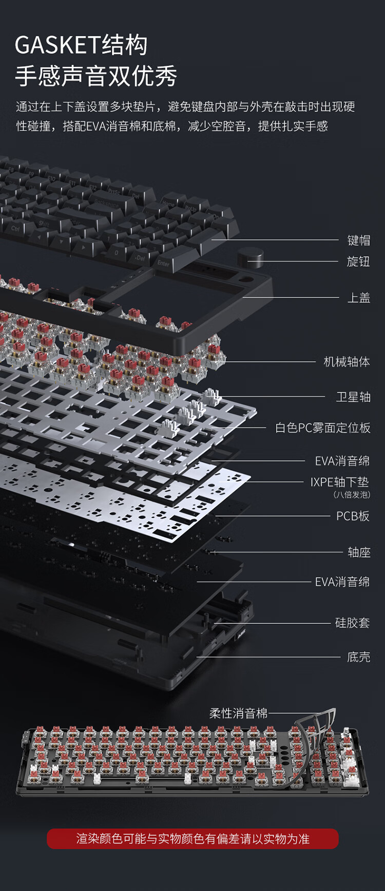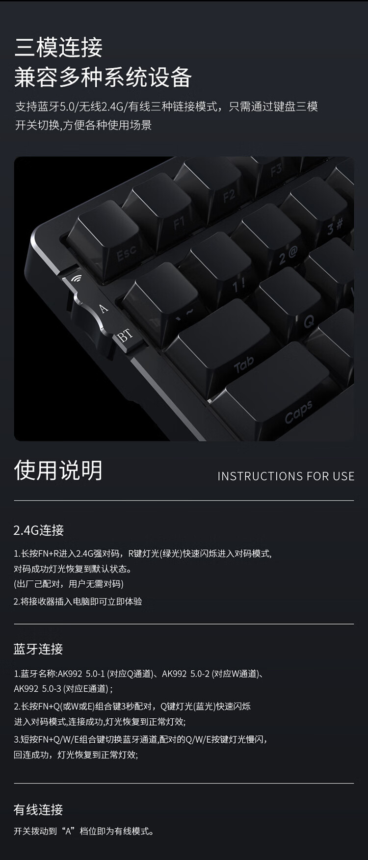 AJAZZ AK992 side-engraved mechanical keyboard Gasket three-mode hot-swappable 2.4G/wired/Bluetooth PBT original RGB computer e-sports game factory red axis