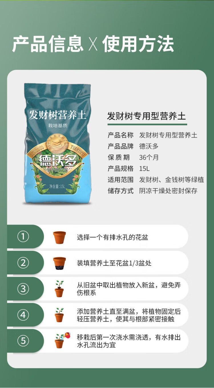Devoduo money tree special nutrient soil 15L gardening green plant potted organic vegetable and flower soil particle planting soil