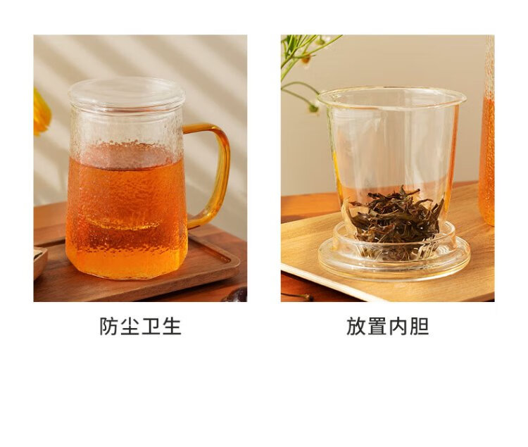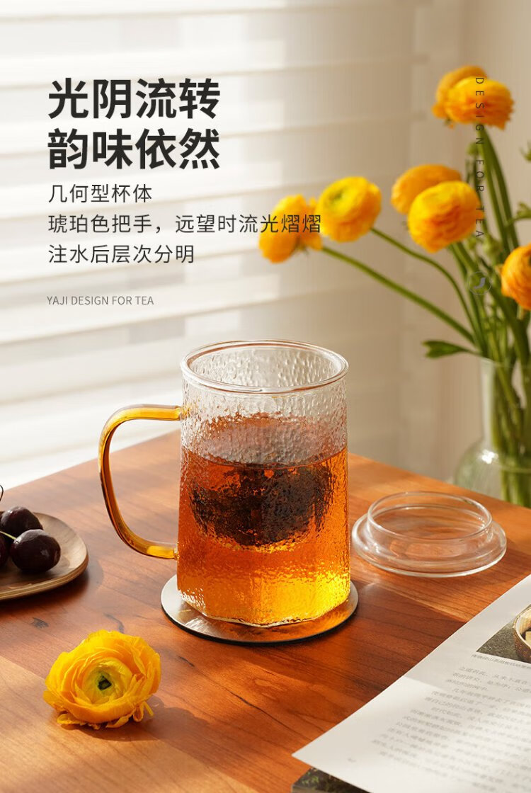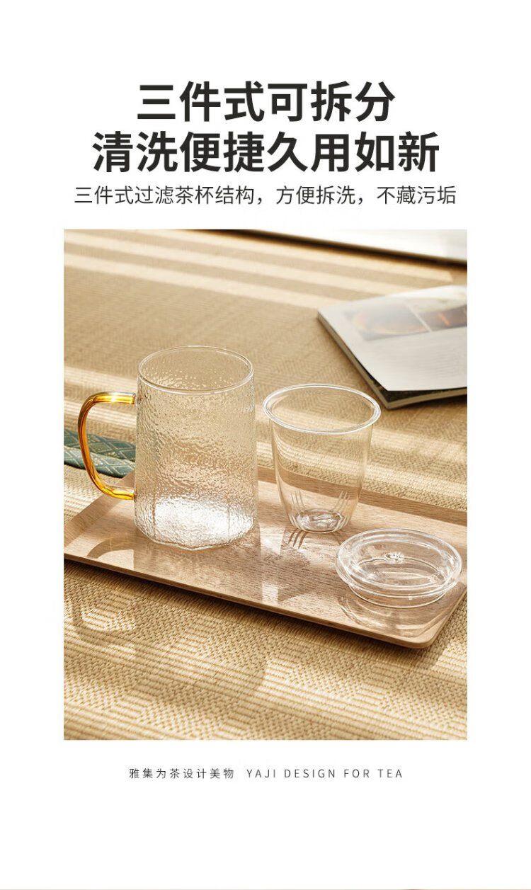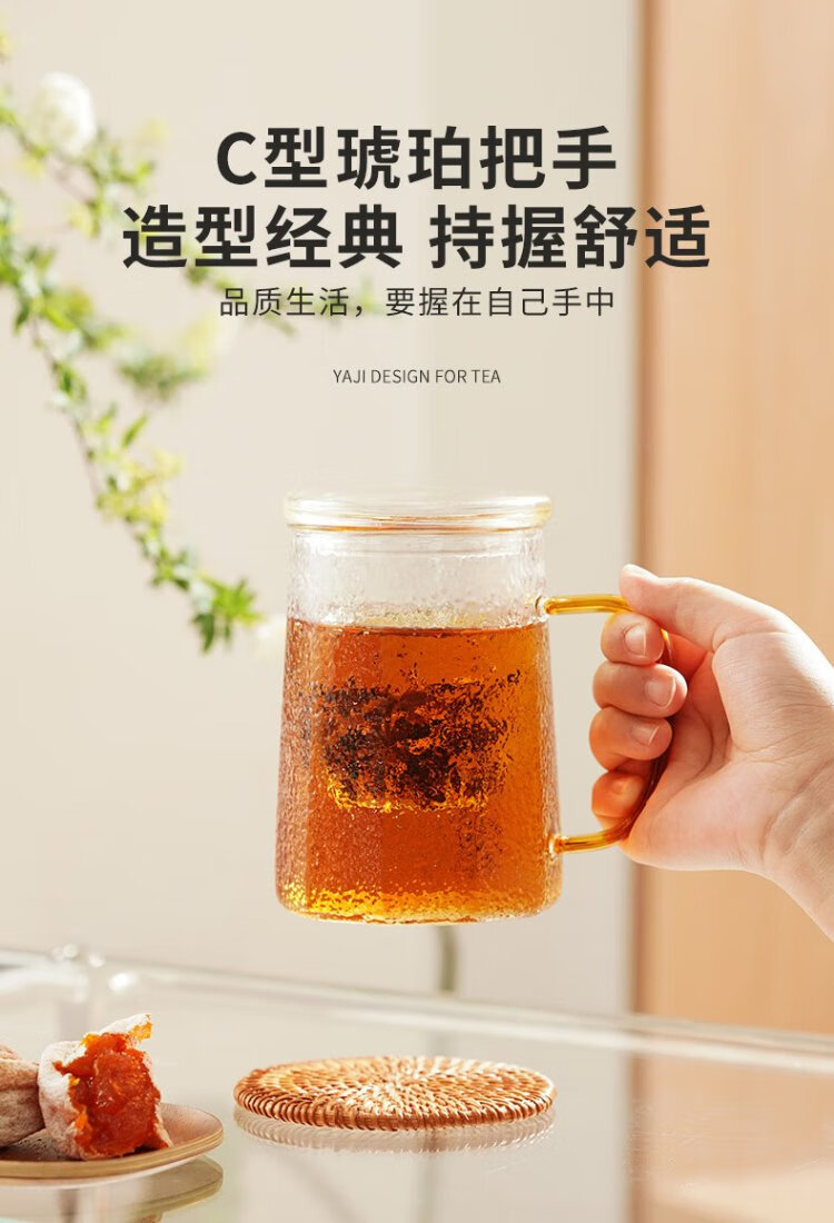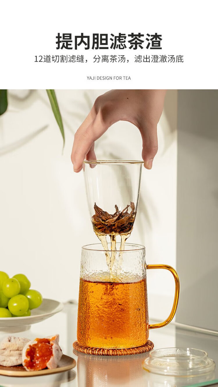 Yaji Zhuming glass tea cup tea water separation glass cup with lid and glass liner office household heat-resistant tea cup
