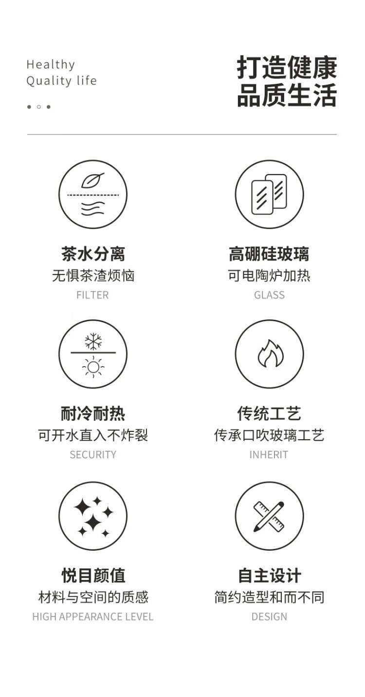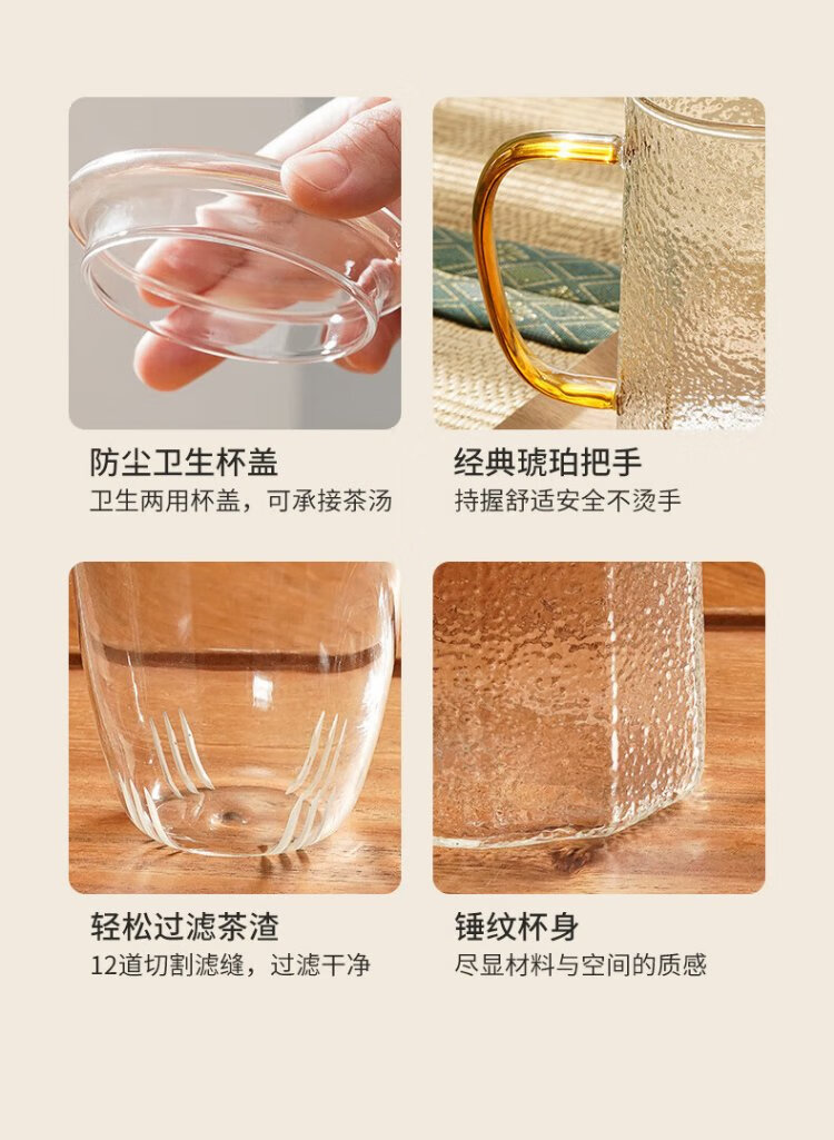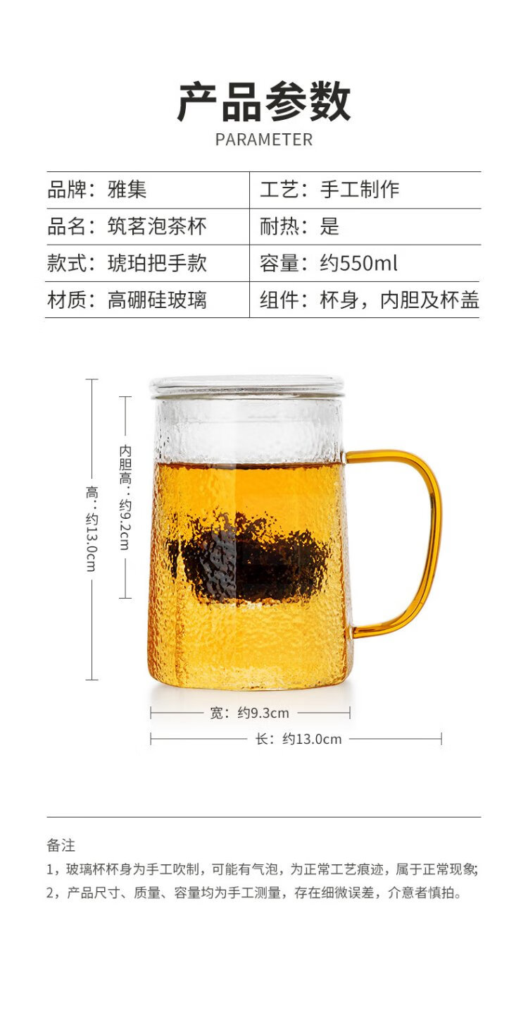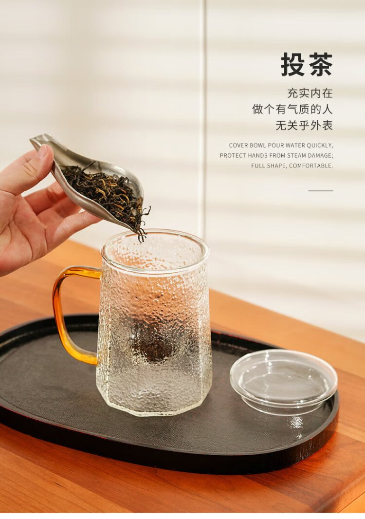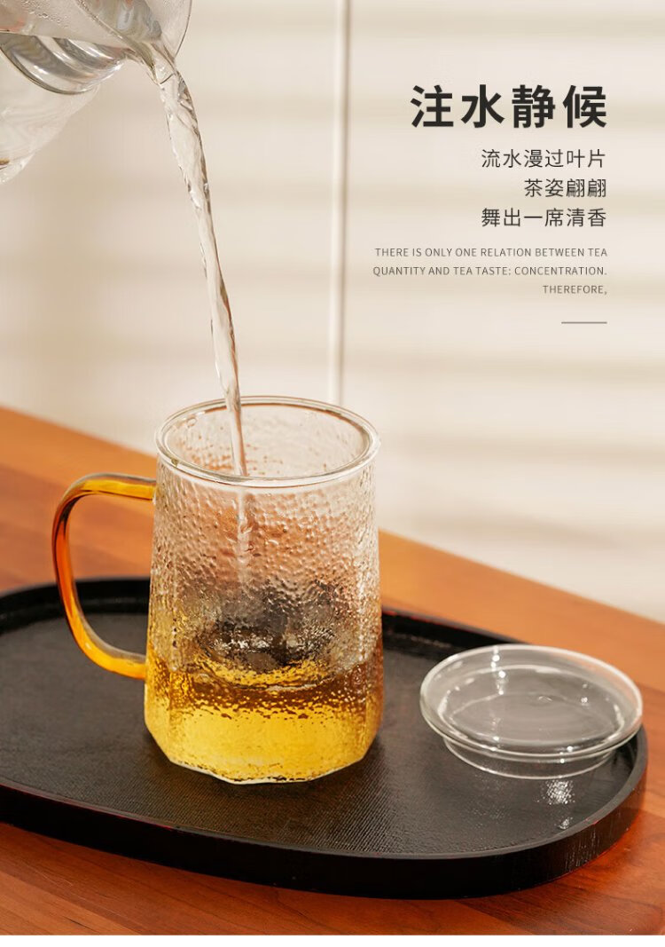 Yaji Zhuming glass tea cup tea water separation glass cup with lid and glass liner office household heat-resistant tea cup