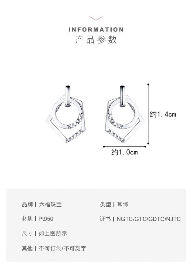 Lukfook Jewelry Platinum 950 geometric platinum earrings, earrings, earrings for women, price approx. 2.43 grams