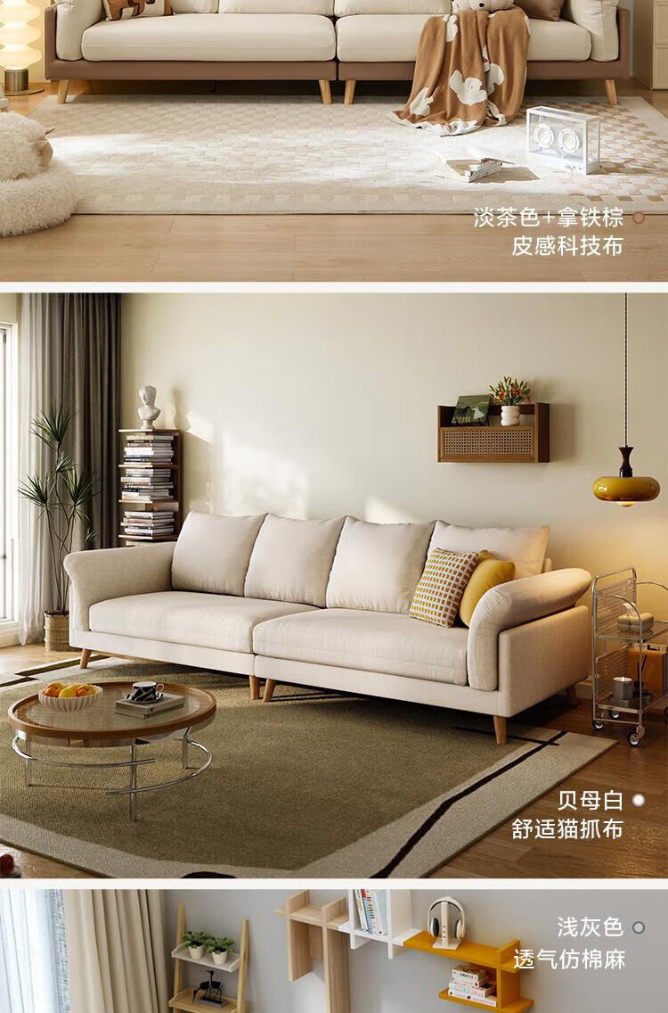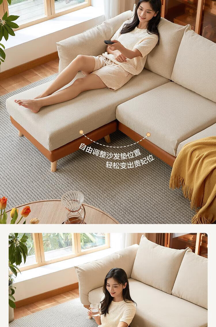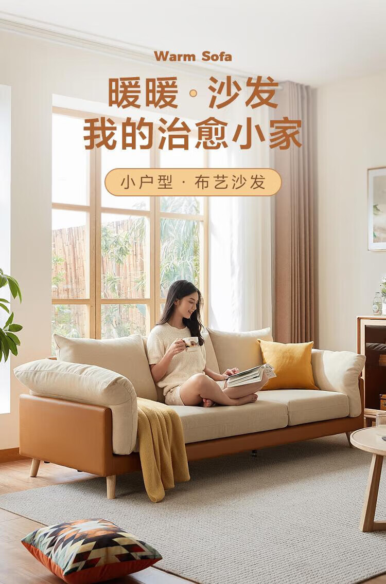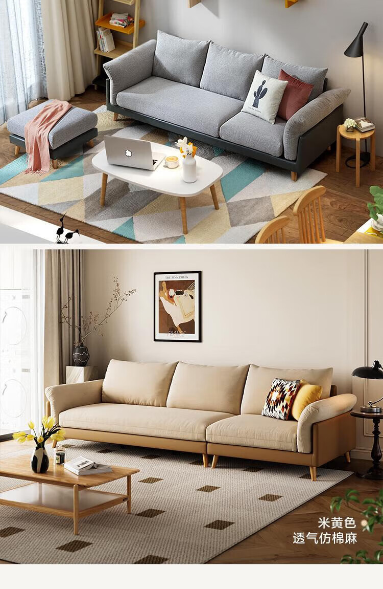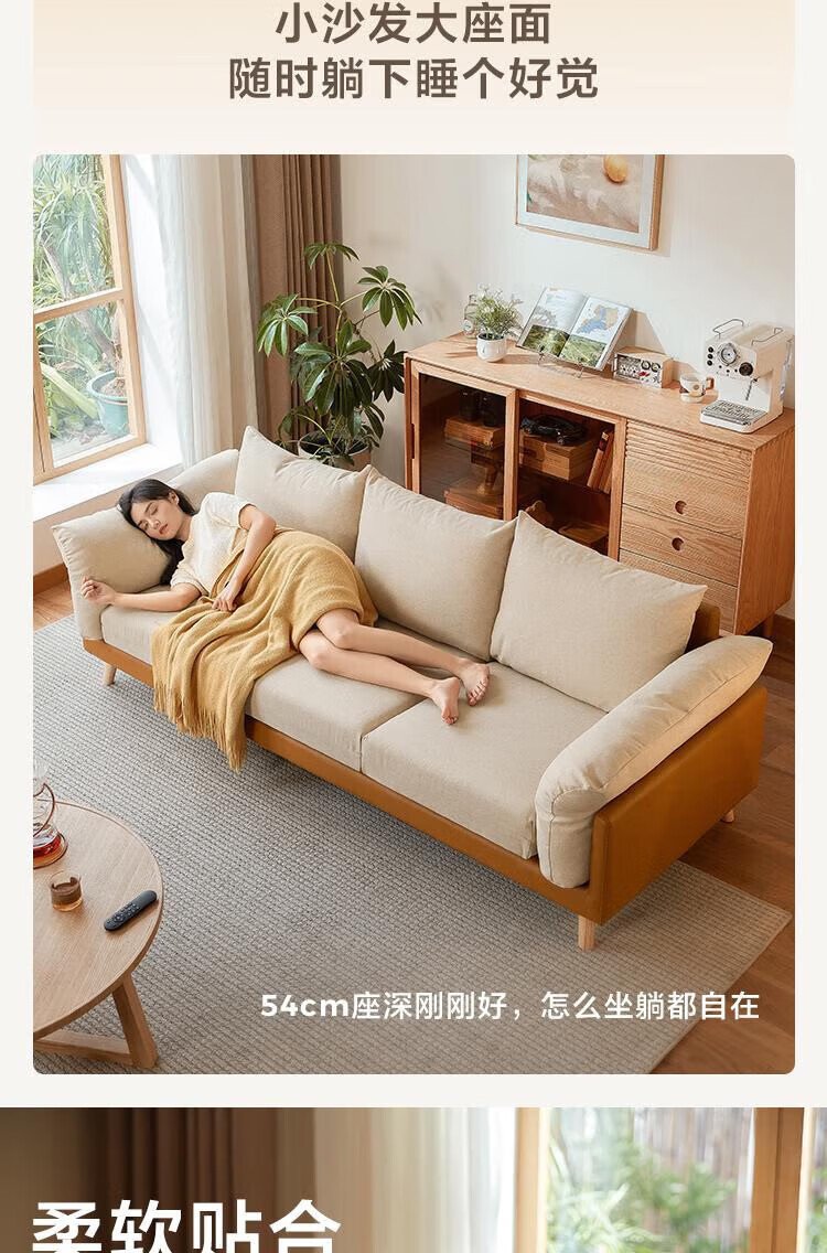 Lin's Home Sofa Living Room 2025 New Simple Log Style Solid Wood Leg Fabric Small Apartment Straight Row Sofa Home S023