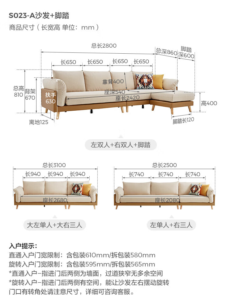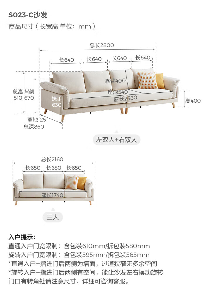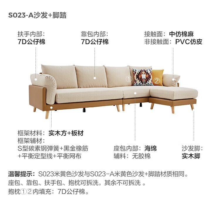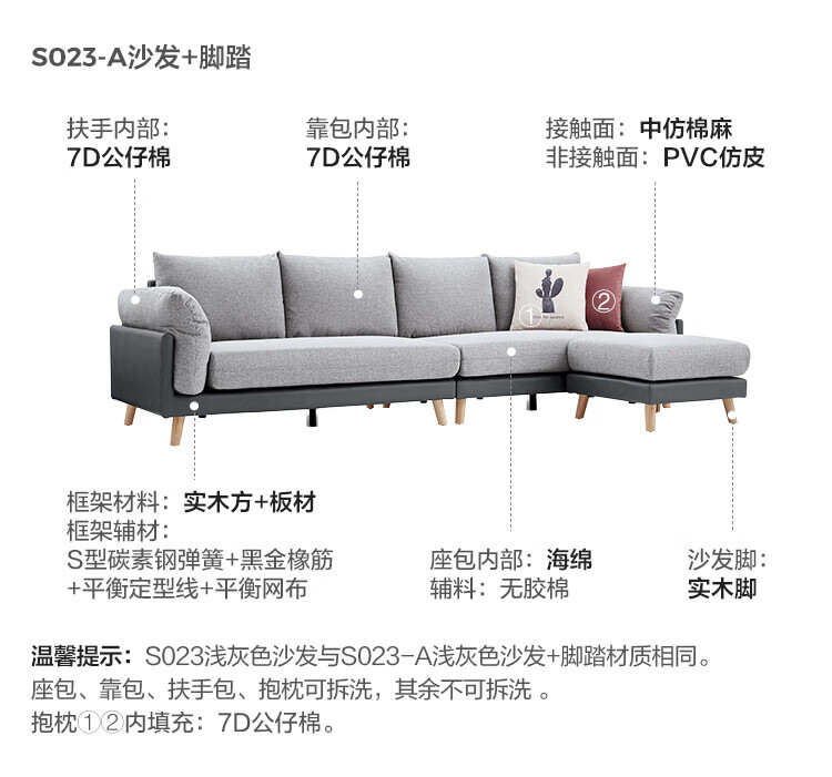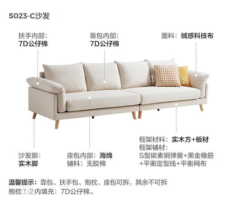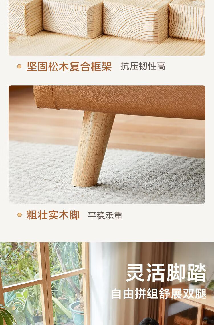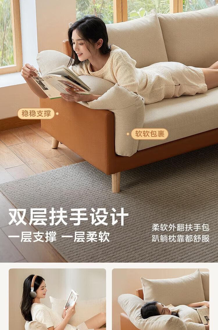 Lin's Home Sofa Living Room 2025 New Simple Log Style Solid Wood Leg Fabric Small Apartment Straight Row Sofa Home S023