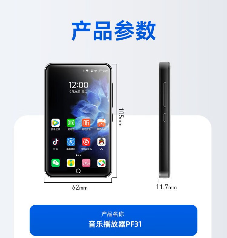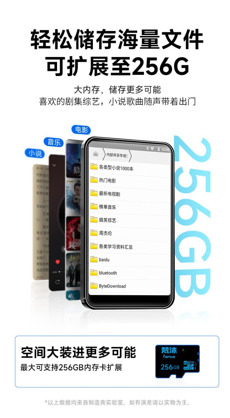 Fanmu PF31 mp3/mp4 player WiFi Internet access 4G storage MP5 lossless music player Android 10 Bluetooth external video e-book 4.0 inches