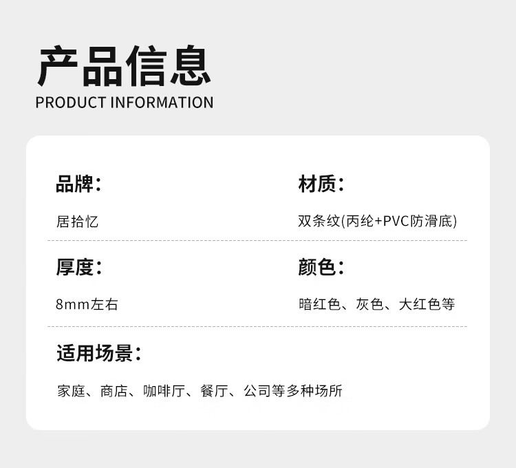 Jushiyi double-striped anti-slip floor mat, thickened wear-resistant and absorbent carpet, stair cuttable corridor elevator anti-slip carpet, double-striped gray 80*120cm