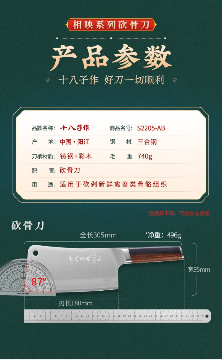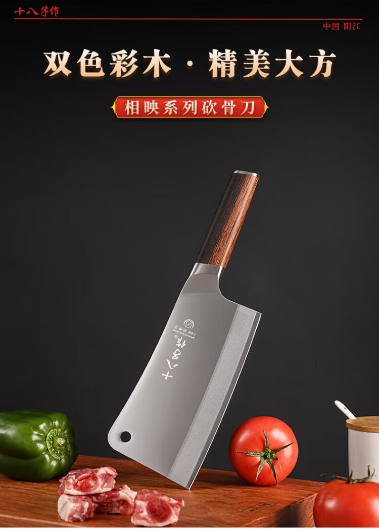 Shibazi made composite steel household knives with colorful wooden handles, matching bone chopping knife S2205-A, exquisite gift box