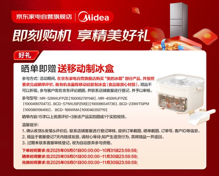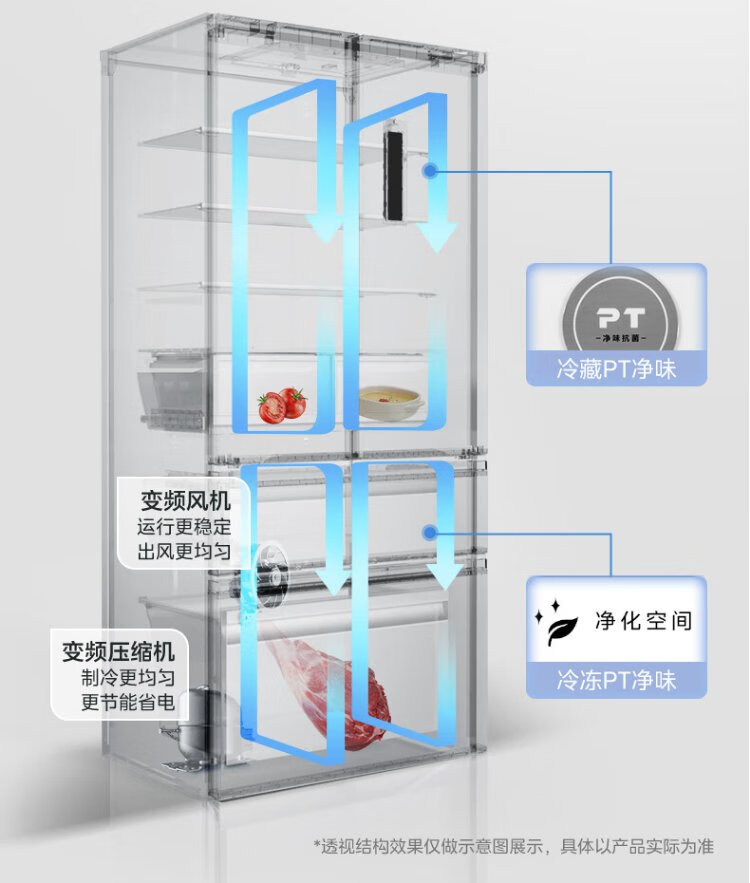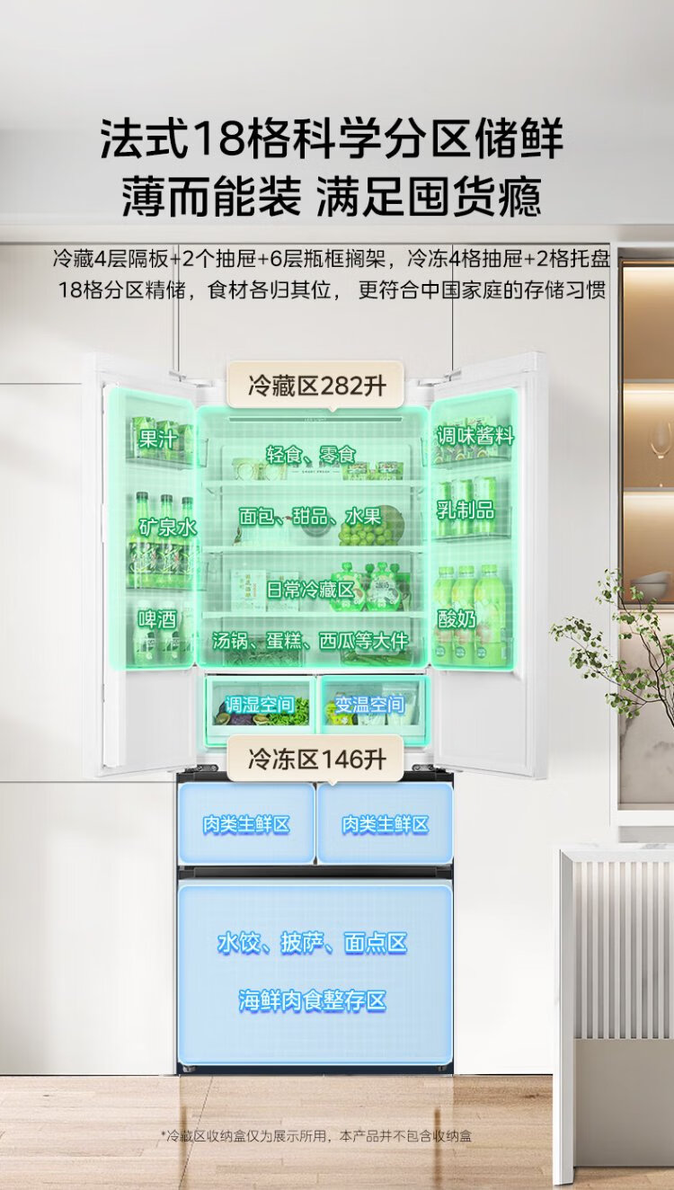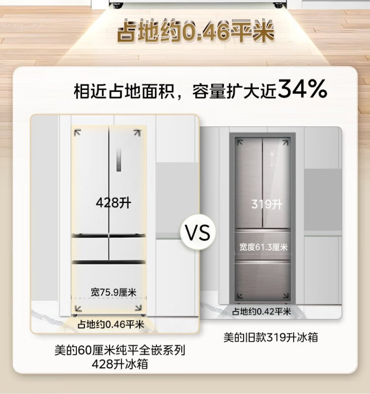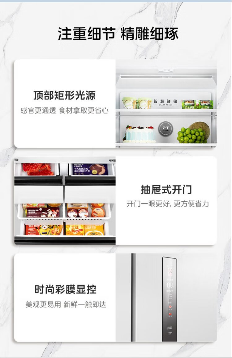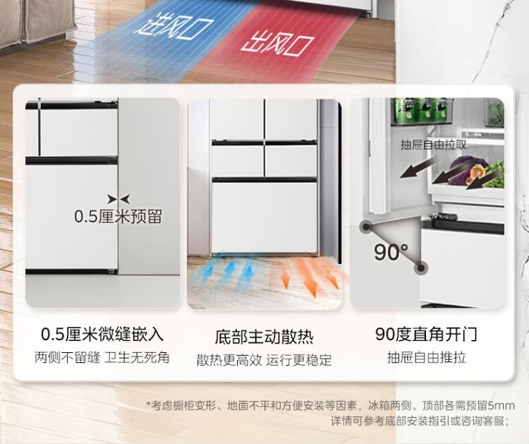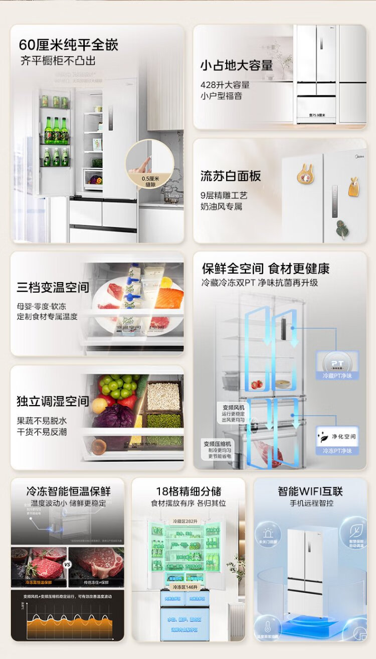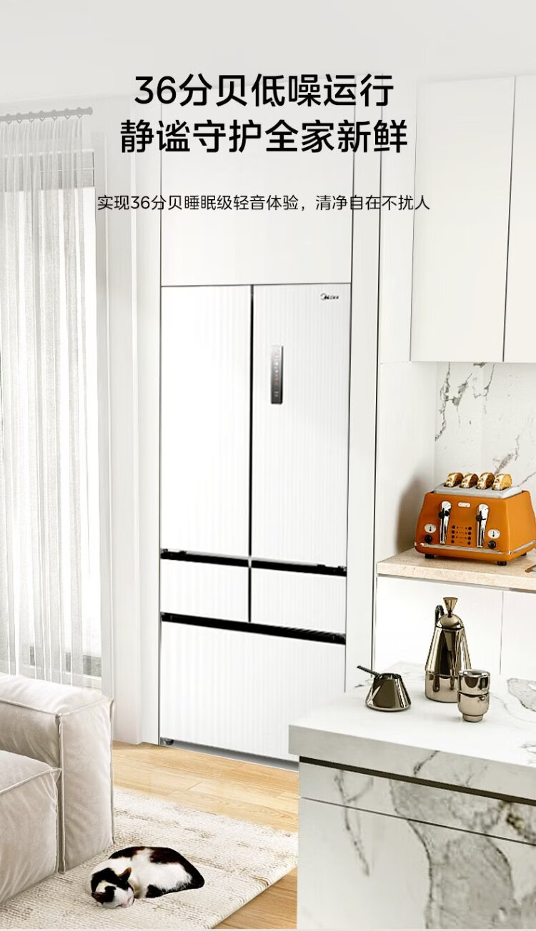 Midea 428L French five-door multi-door ultra-thin zero-embedded flat-screen fully embedded household refrigerator first-class energy efficiency frost-free frequency conversion three-speed variable temperature intelligent WIFI interconnection MR-450WUFPZE
