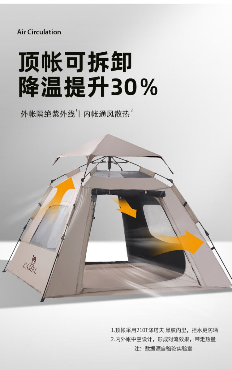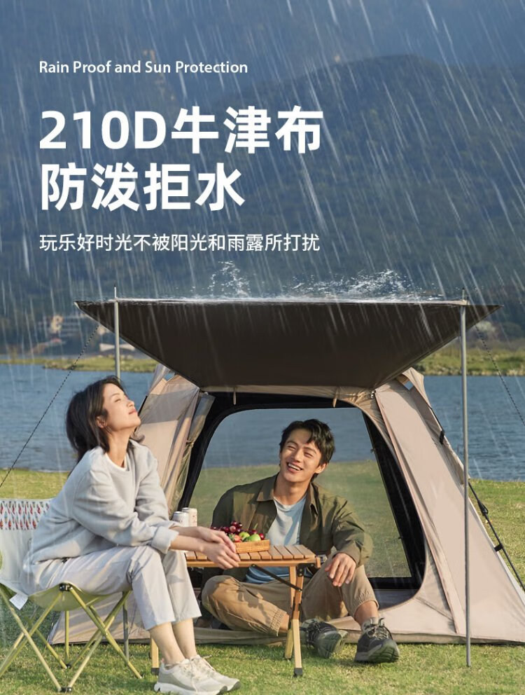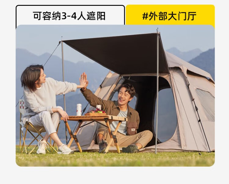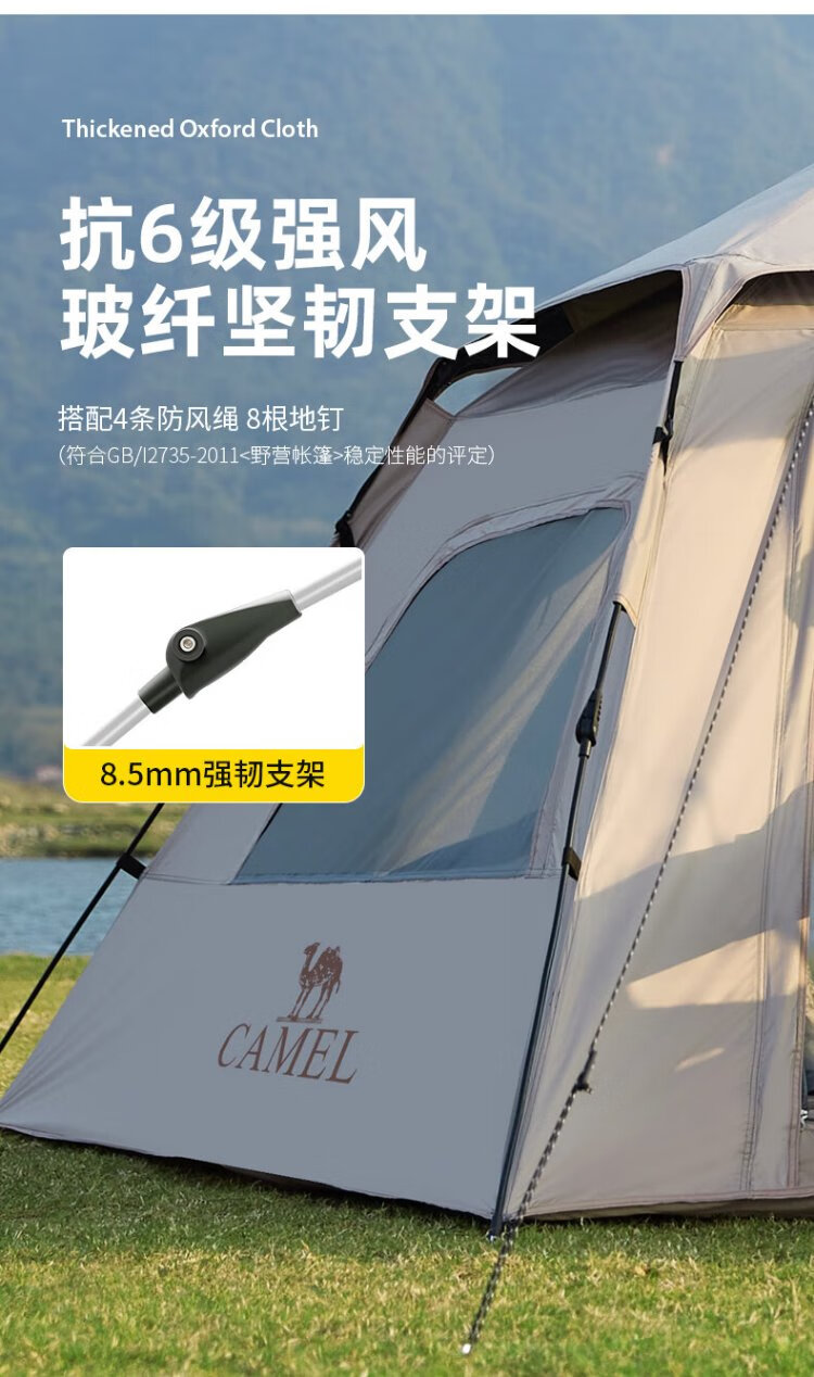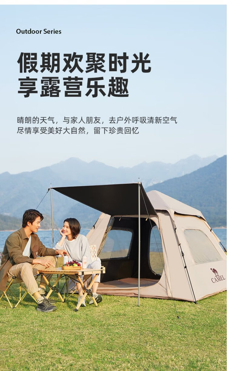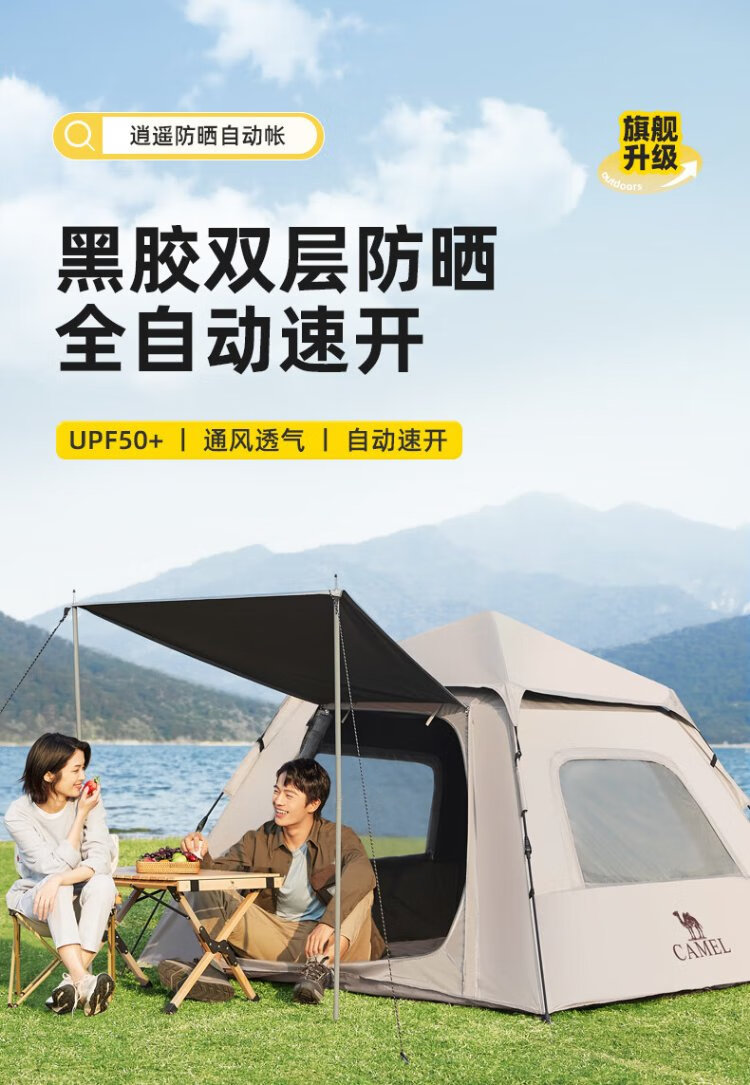 Camel (CAMEL) tent outdoor portable folding fully automatic camping vinyl rainproof and sunproof picnic tent A027-2 quicksand gold