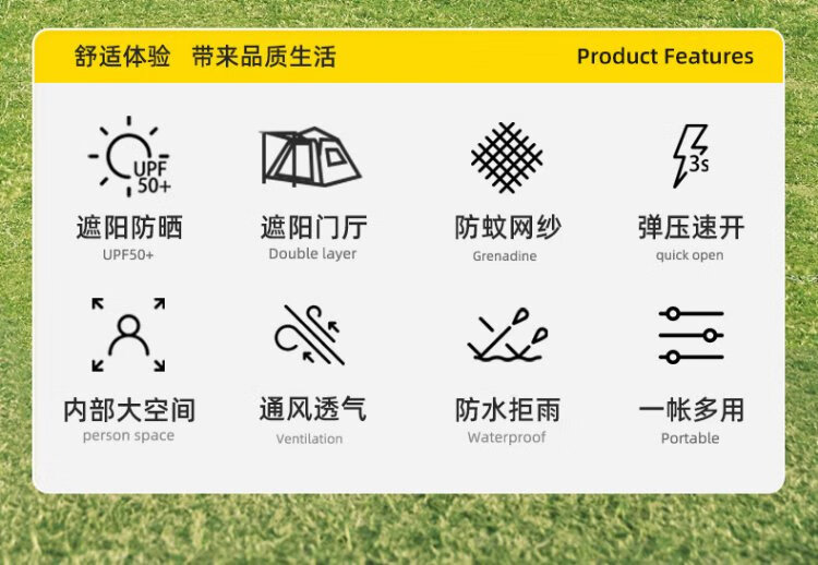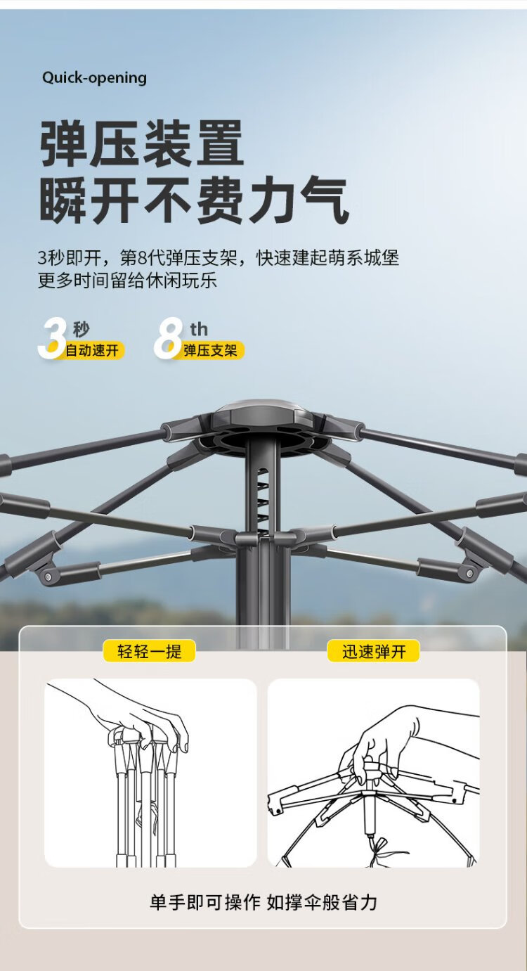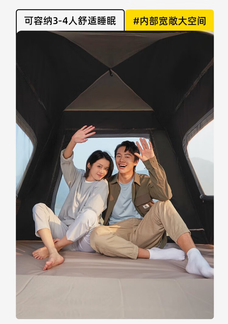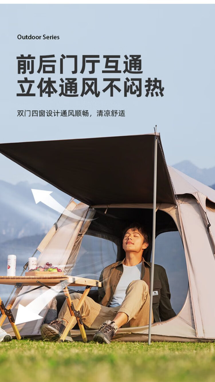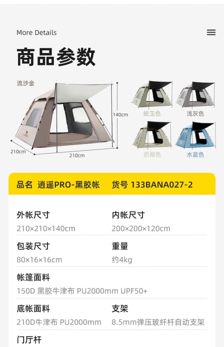 Camel (CAMEL) tent outdoor portable folding fully automatic camping vinyl rainproof and sunproof picnic tent A027-2 quicksand gold