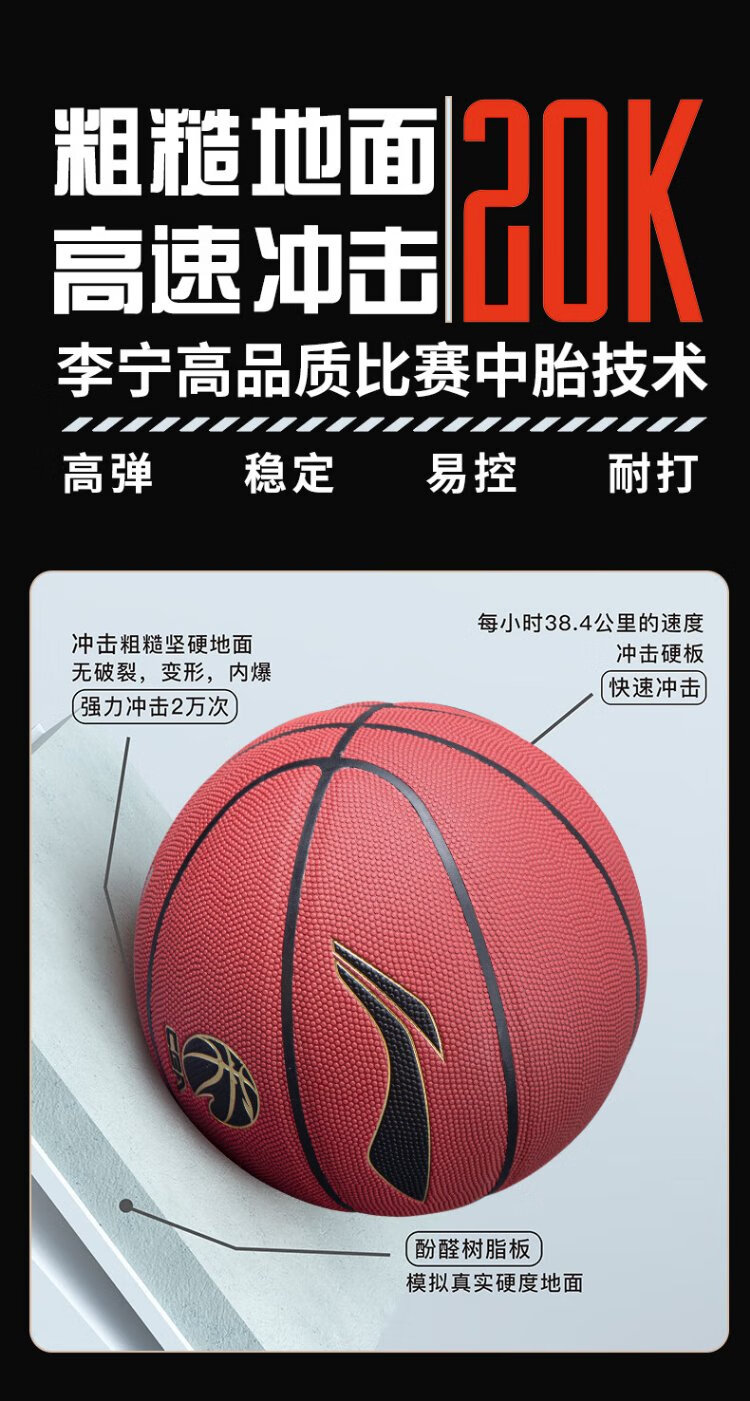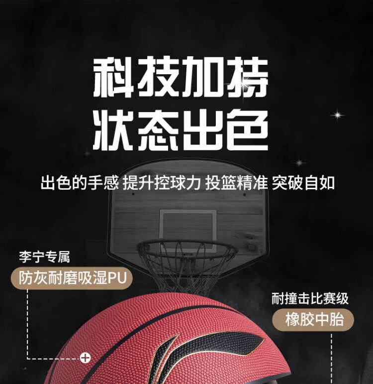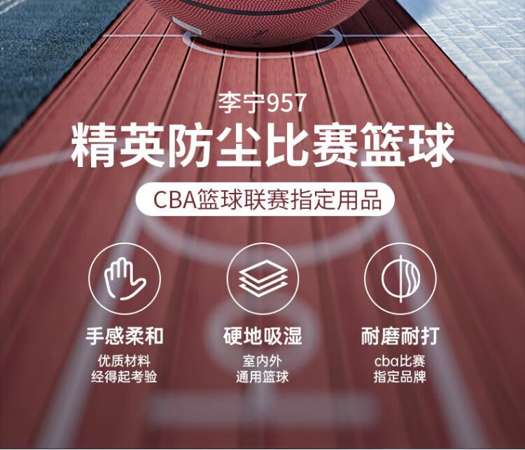 Li Ning basketball 957 dust-proof, wear-resistant and non-slip outdoor cement floor No. 7 adult student professional event competition training gift