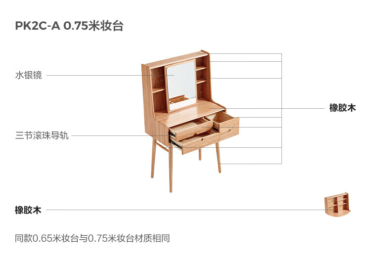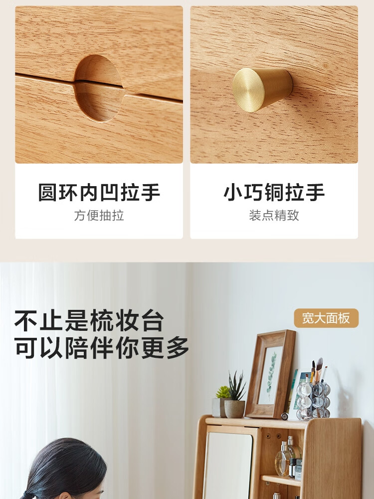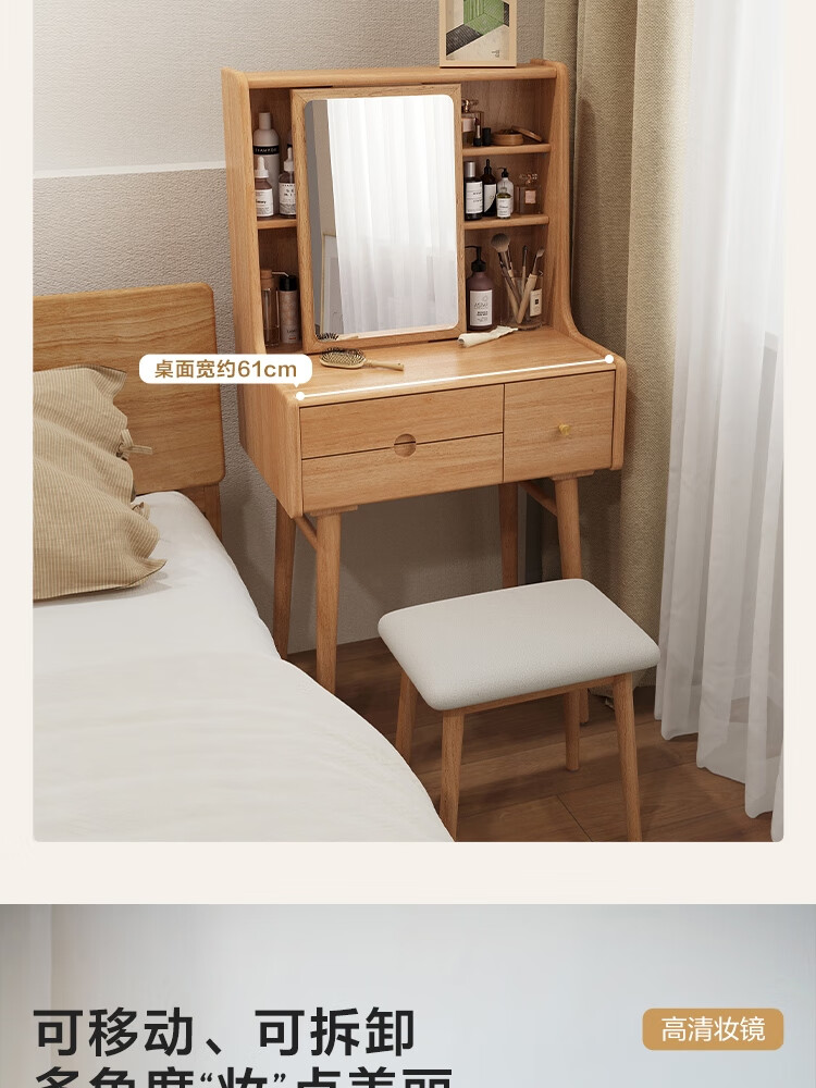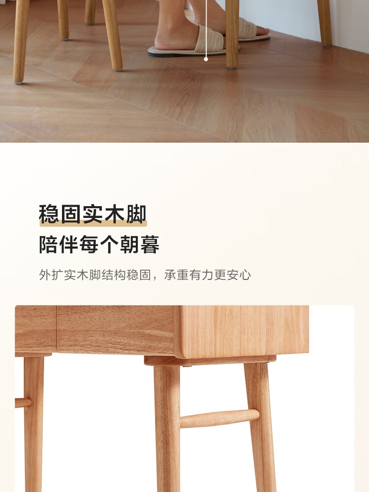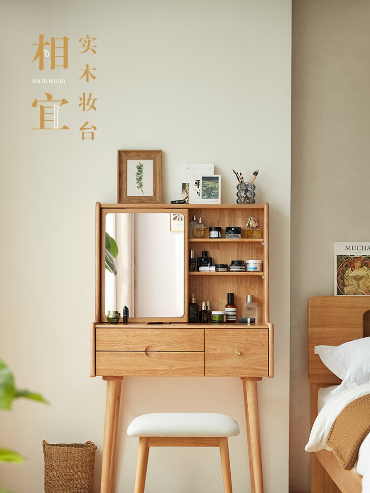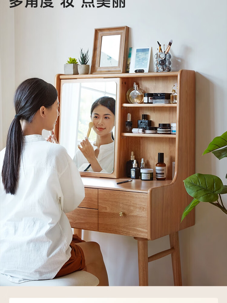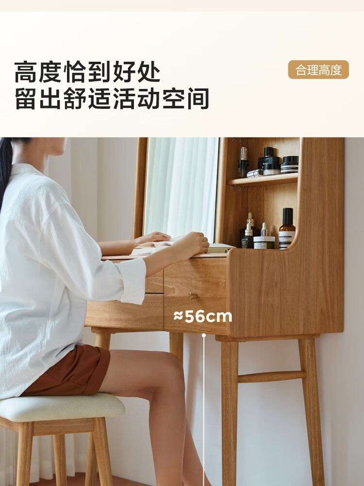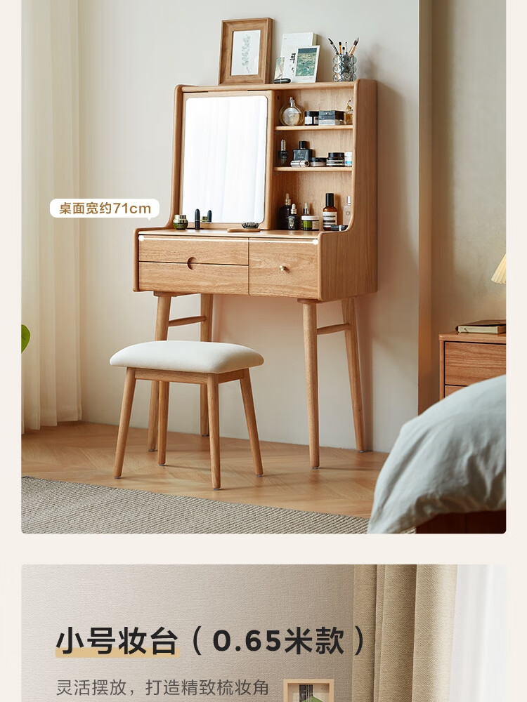 Lin's Home Nordic solid wood dressing table bedroom simple log style small apartment PK2C 0.65 meter dressing table + PK1H makeup stool