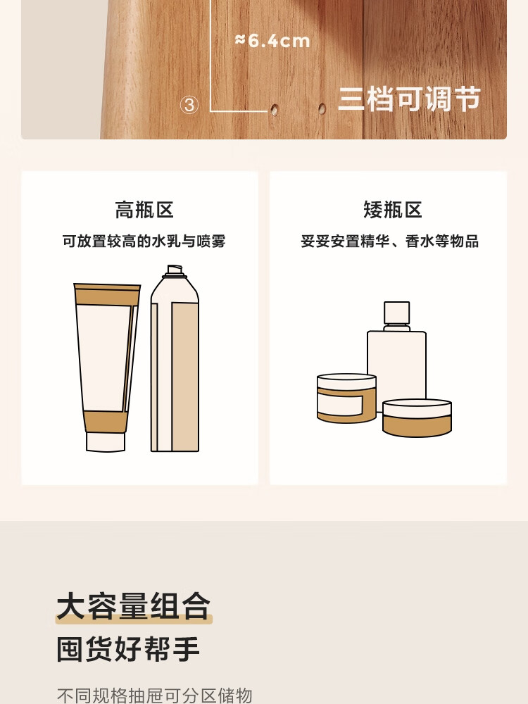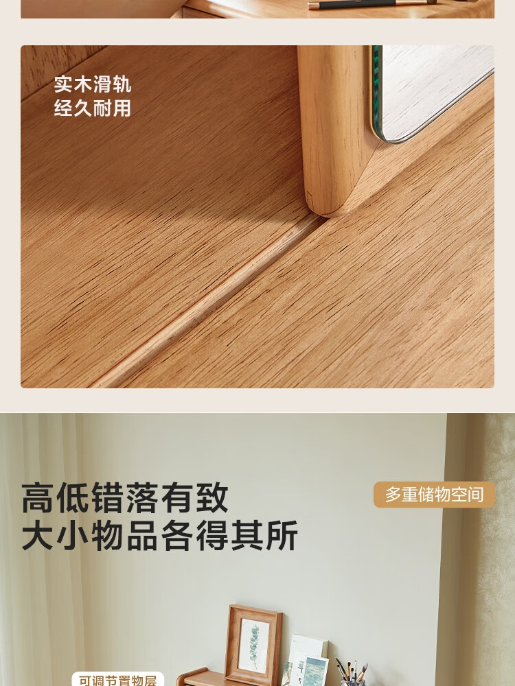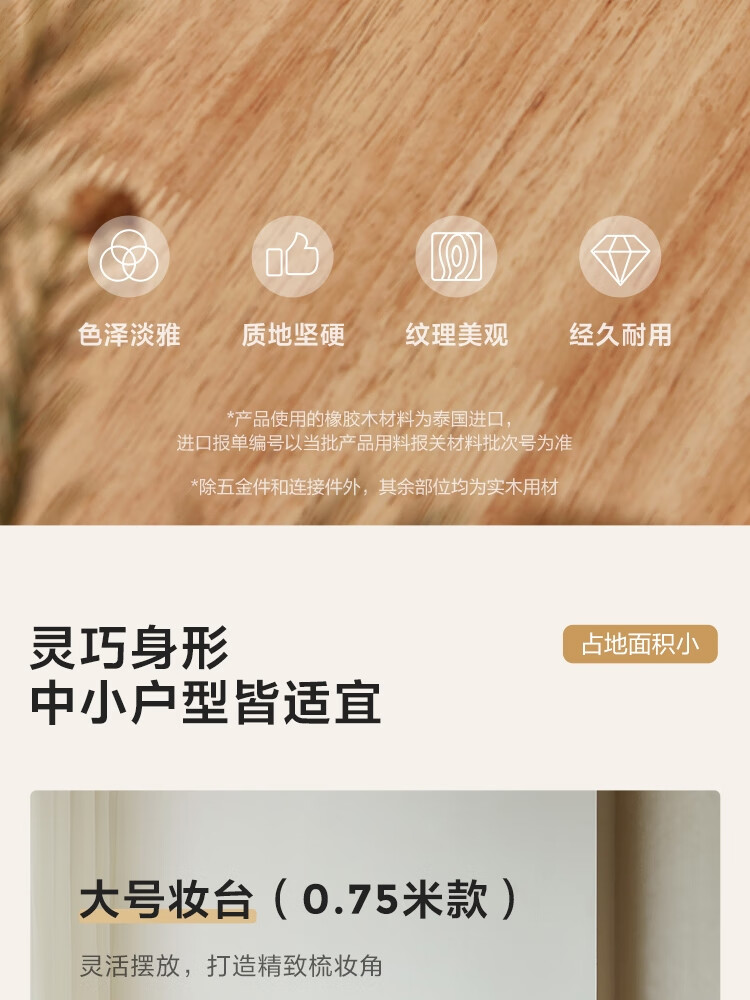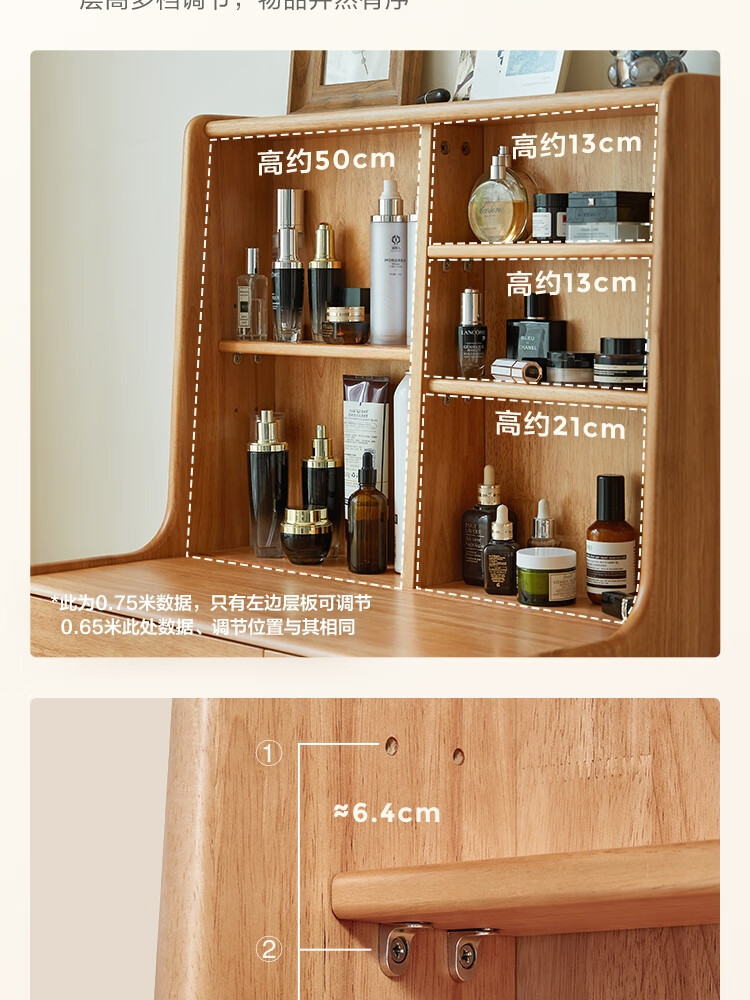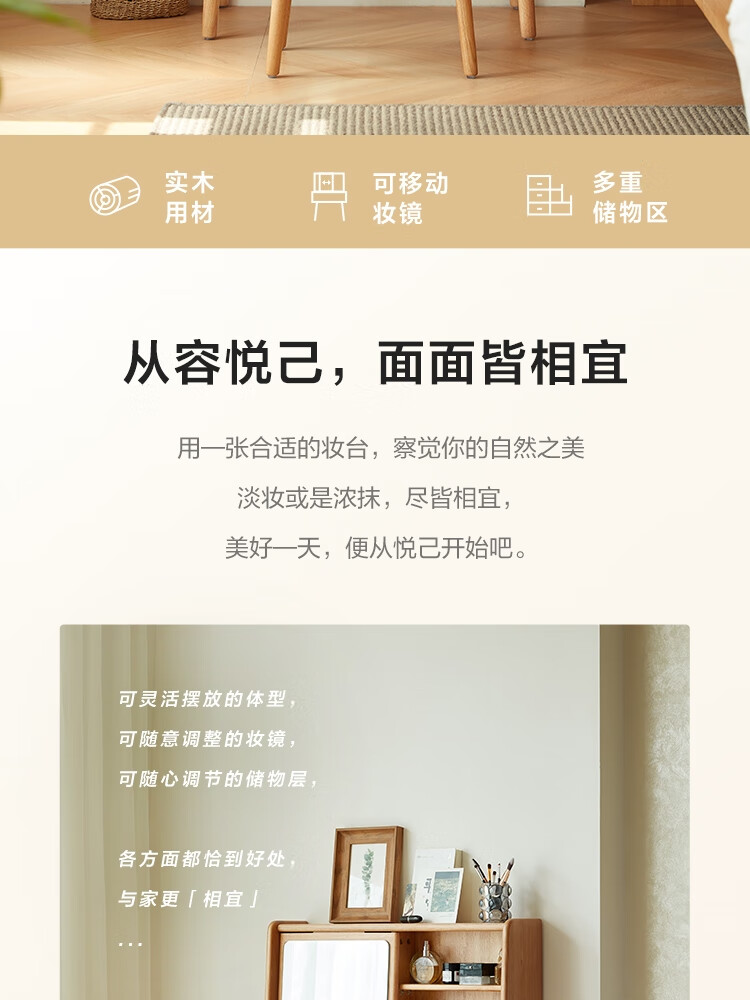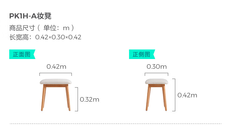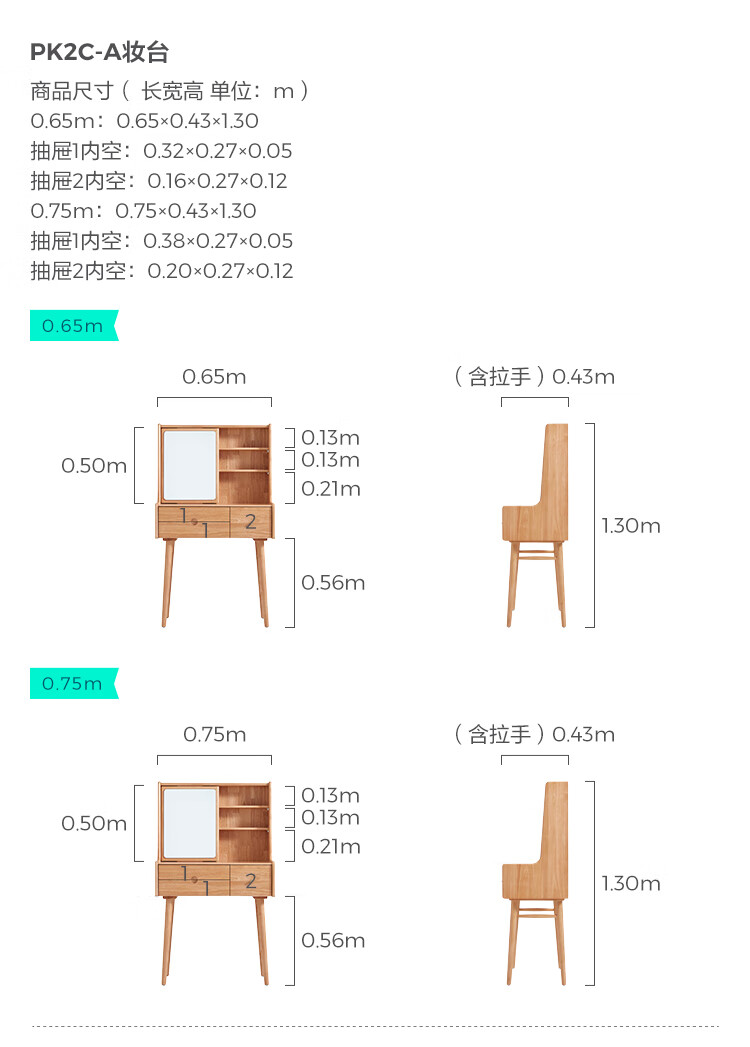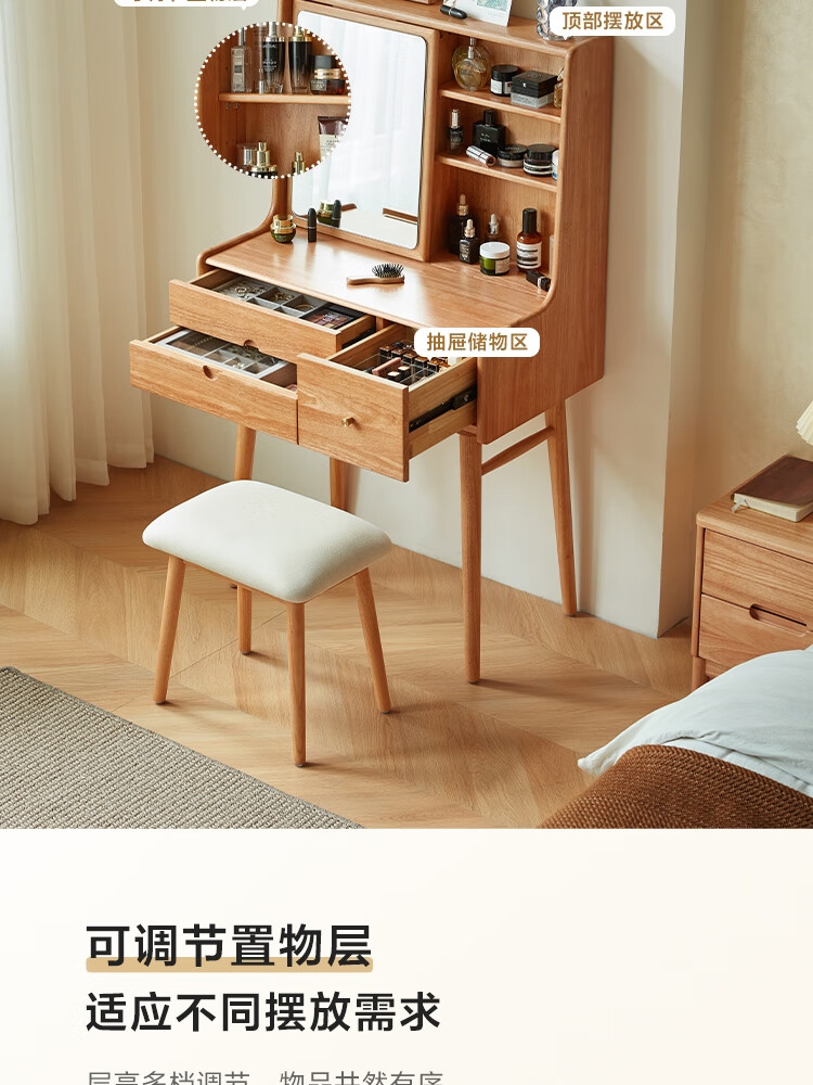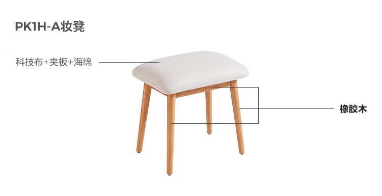 Lin's Home Nordic solid wood dressing table bedroom simple log style small apartment PK2C 0.65 meter dressing table + PK1H makeup stool