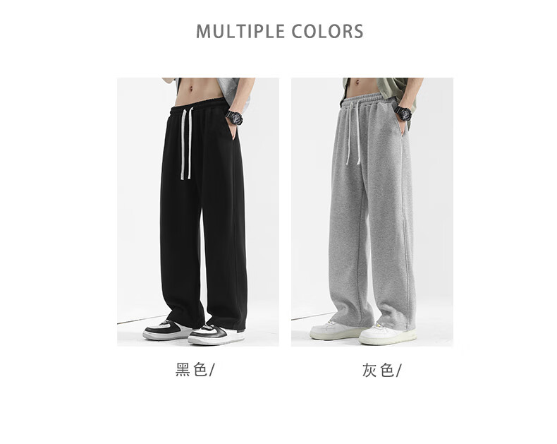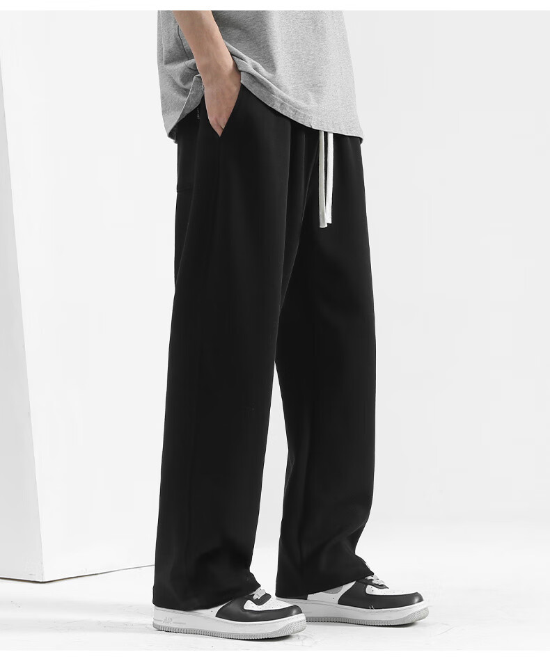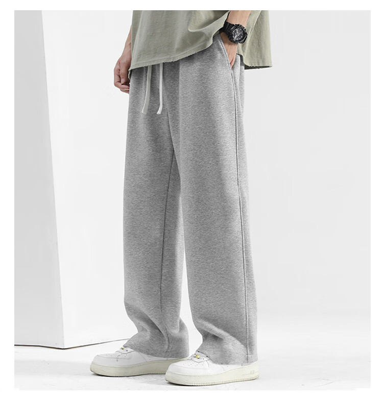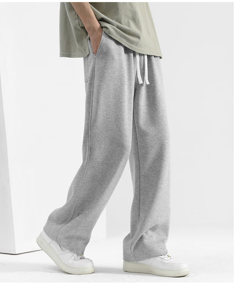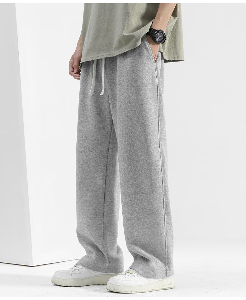 Cotton casual pants for men, Hong Kong style trendy versatile sports pants, loose lace-up wide-leg pants for couples, gray L