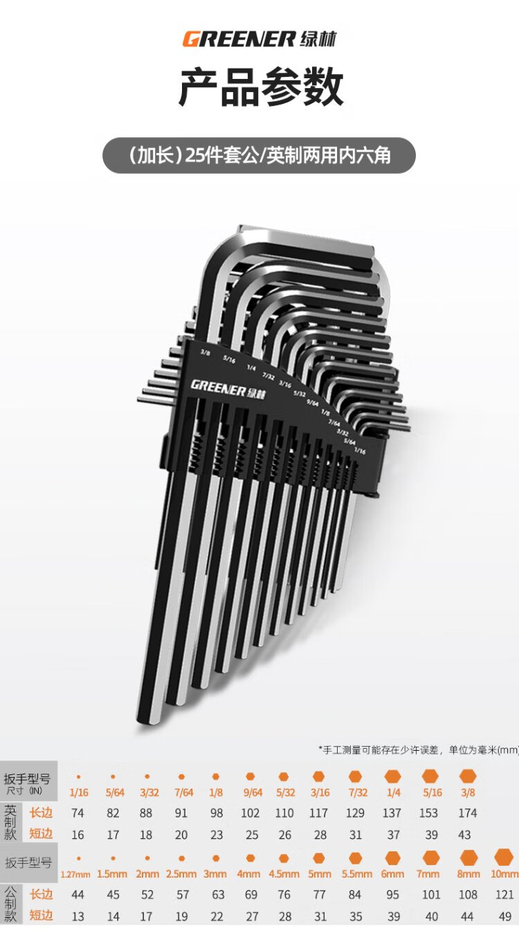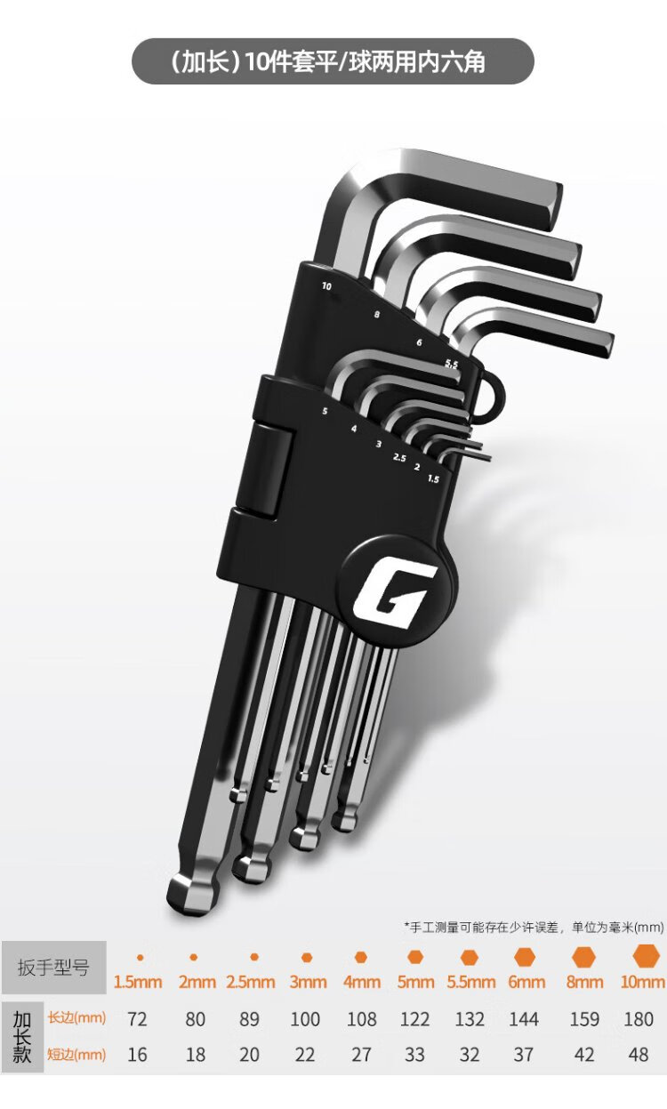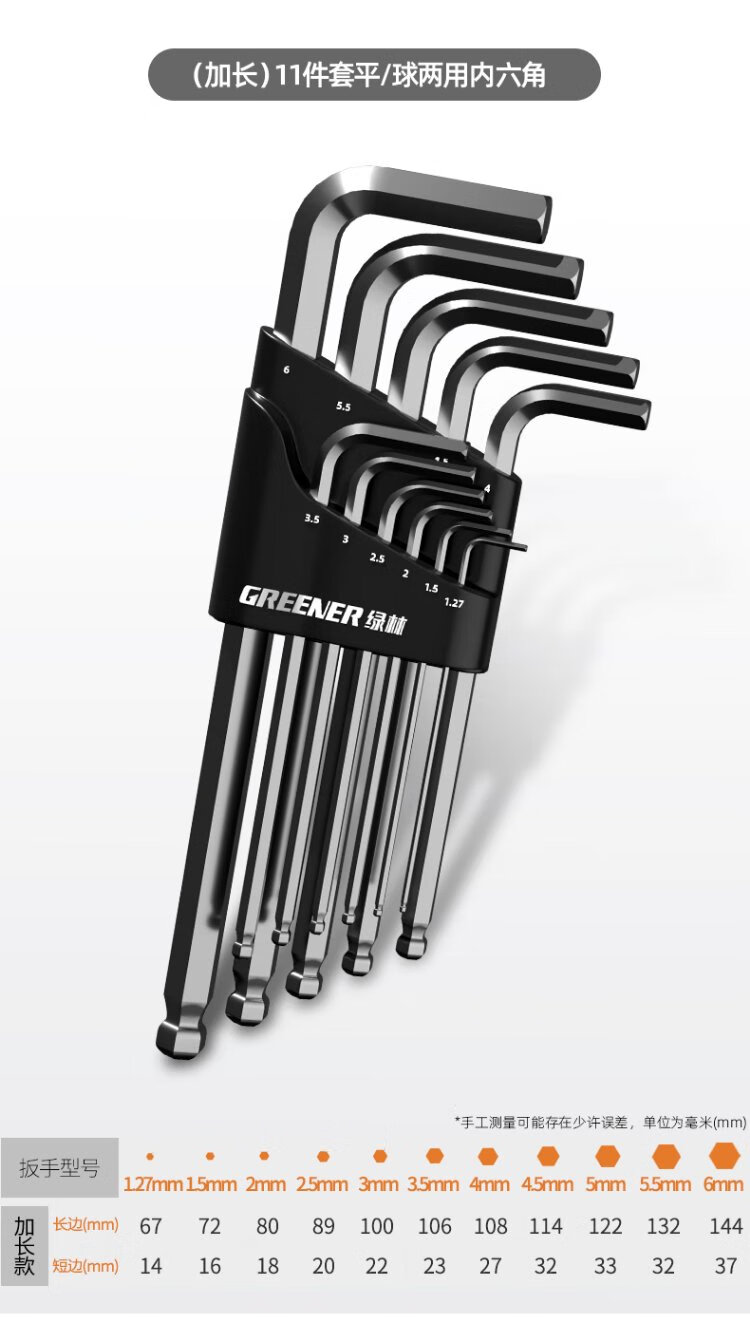 GREENER Hexagonal wrench household universal tool set hexagonal screwdriver flat ball dual-purpose hexagonal 11-piece set