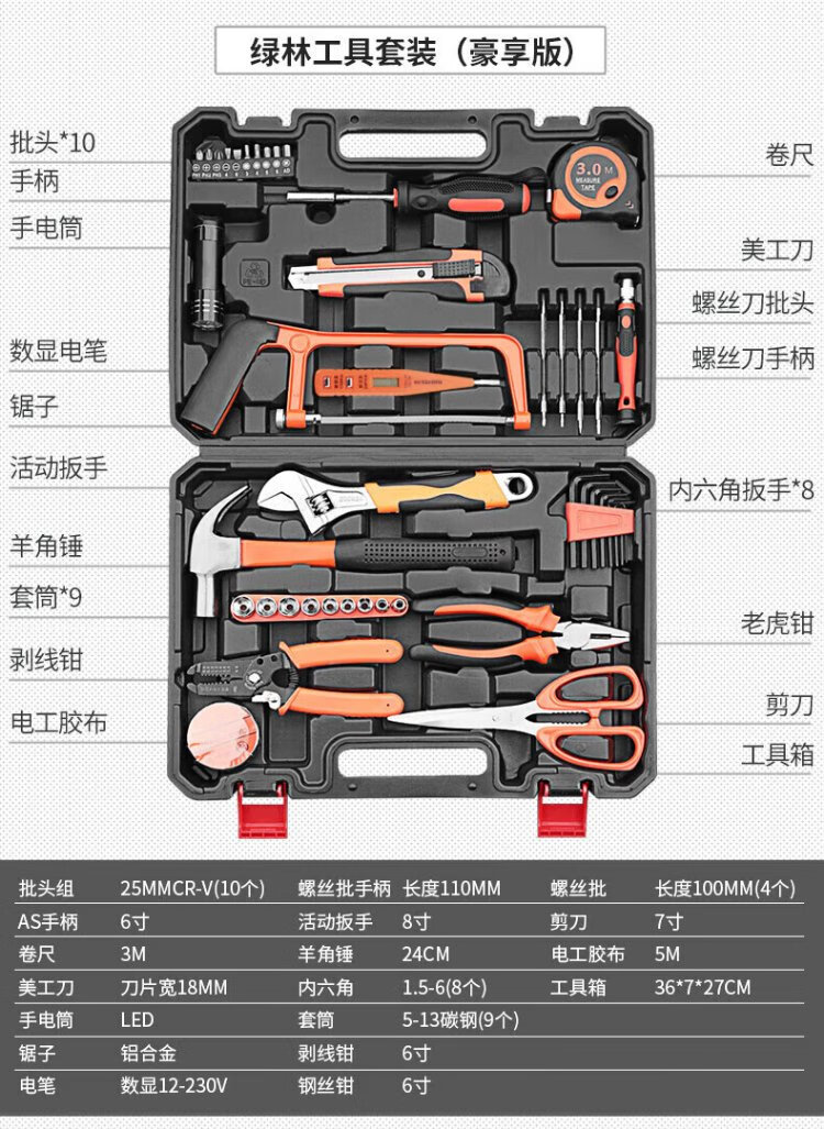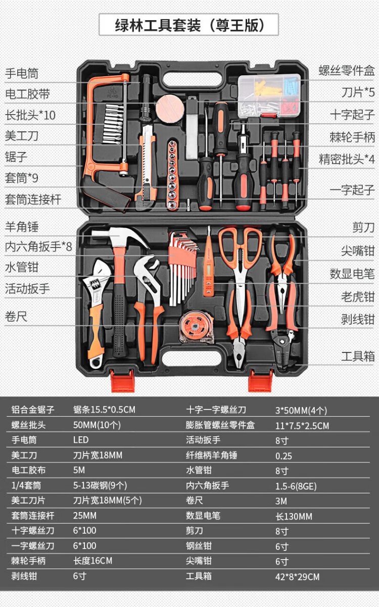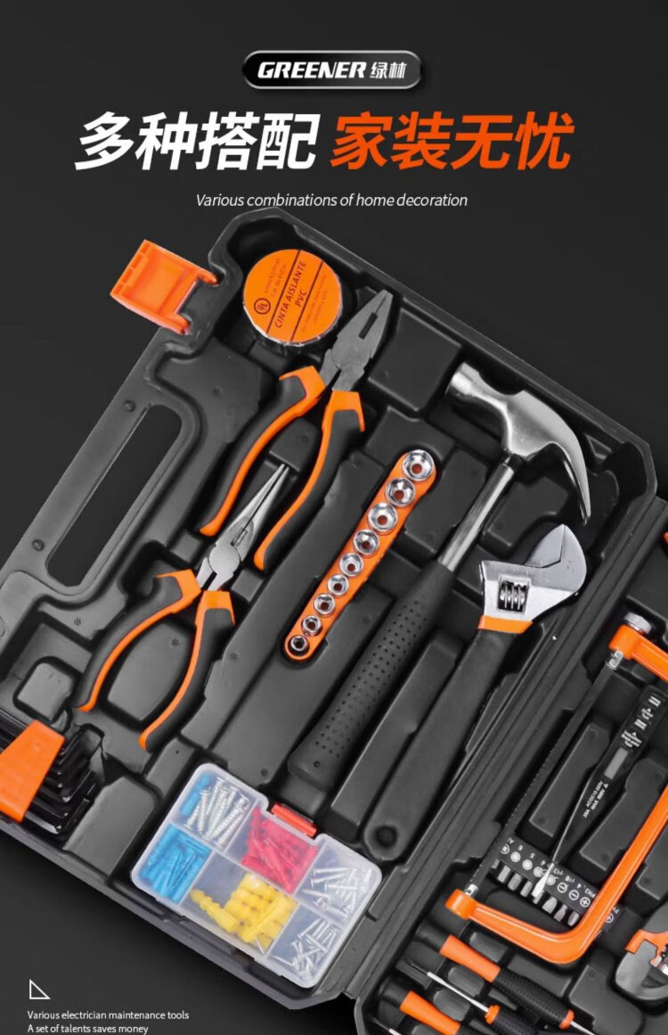 GREENER household tool box set hardware tool multi-functional electrician woodworking telecommunications maintenance (Zunwang version) set