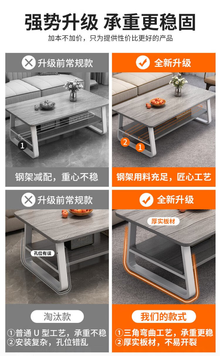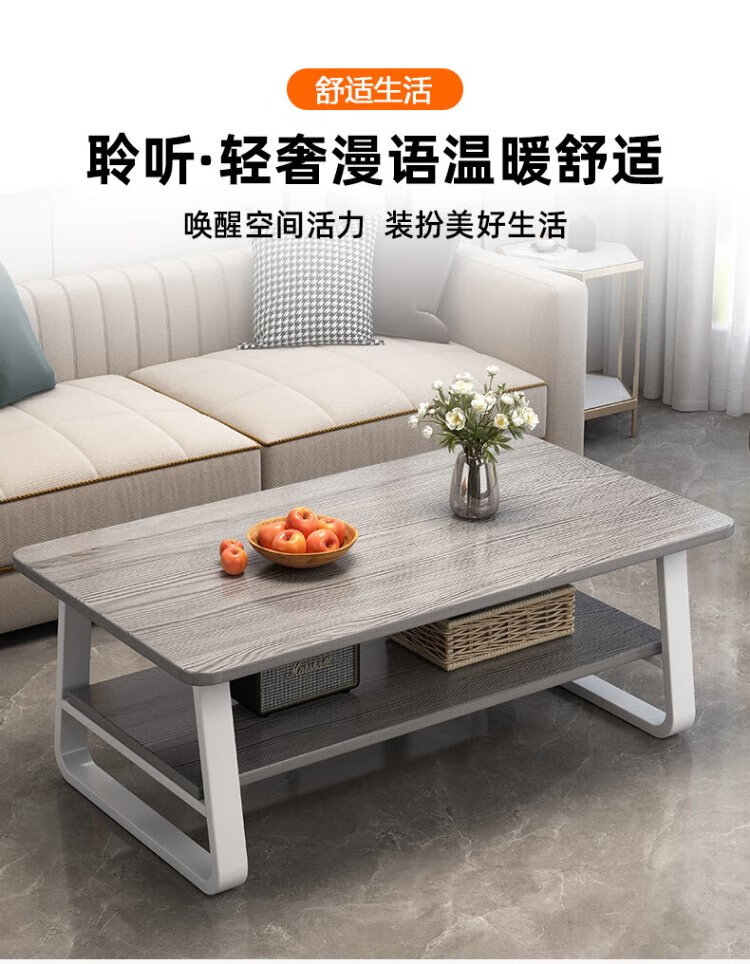 Shanshan wood art coffee table living room household double-layer light luxury coffee table small apartment modern simple small tea table multi-functional sofa side table
