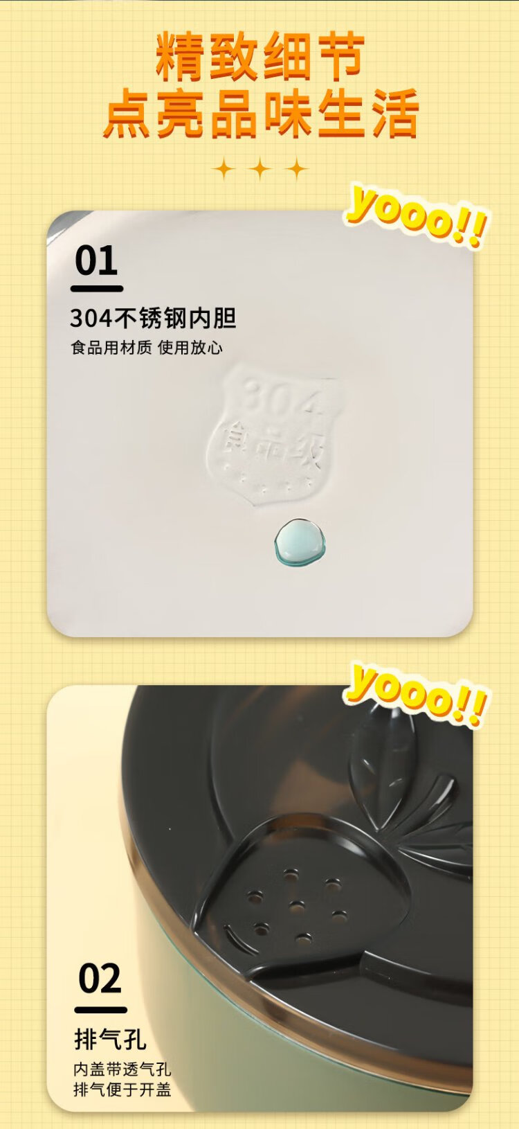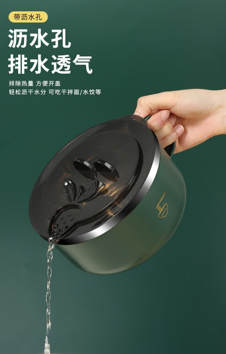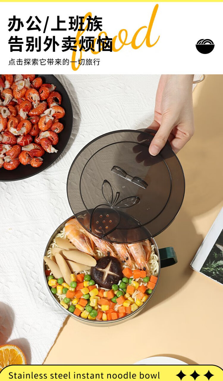 Baijie 304 stainless steel instant noodle bowl lunch box with lid, sealed and anti-scalding, student lunch box, office worker rice bowl, dark green 1300ml