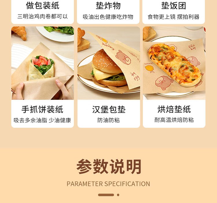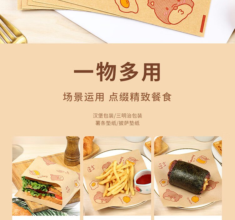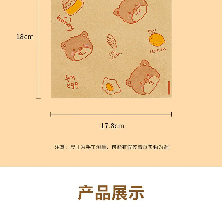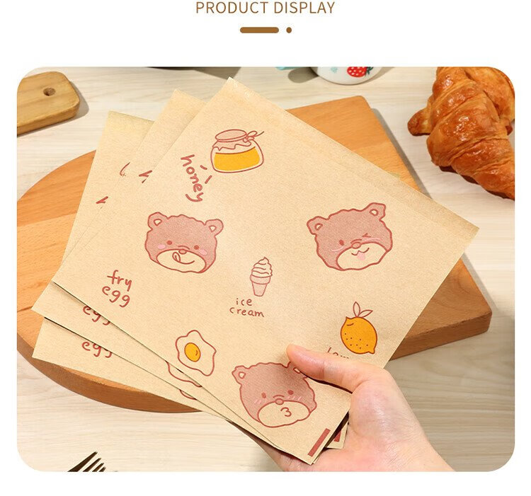 Badger sandwich wrapping paper, hamburger paper, mochi hand cake paper, rice ball wrapping paper, cartoon laminated paper, 100 sheets