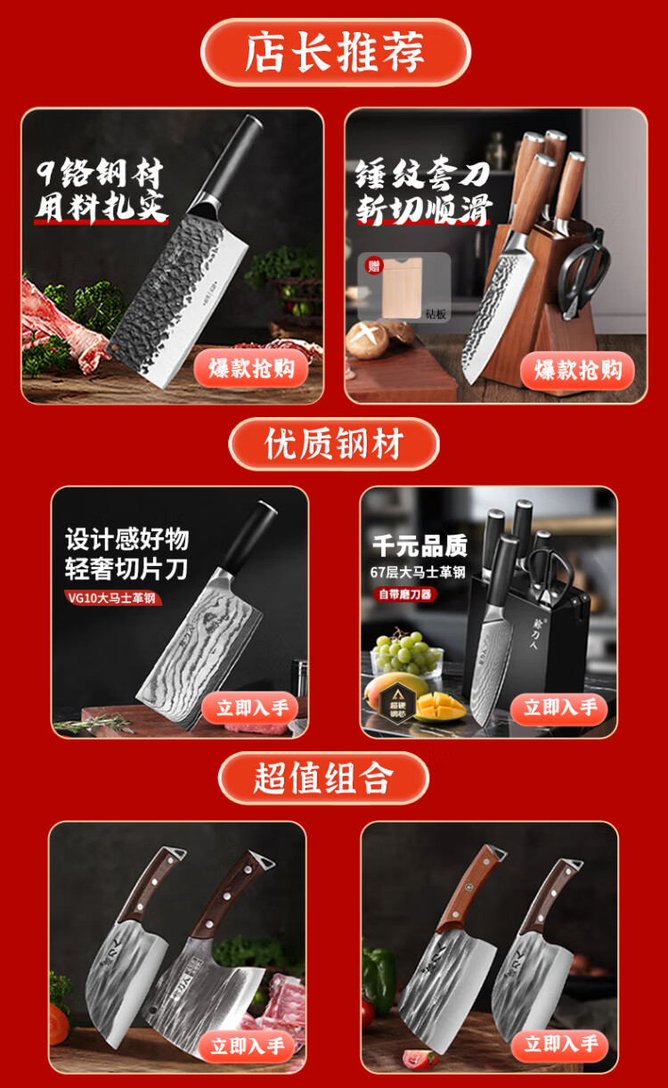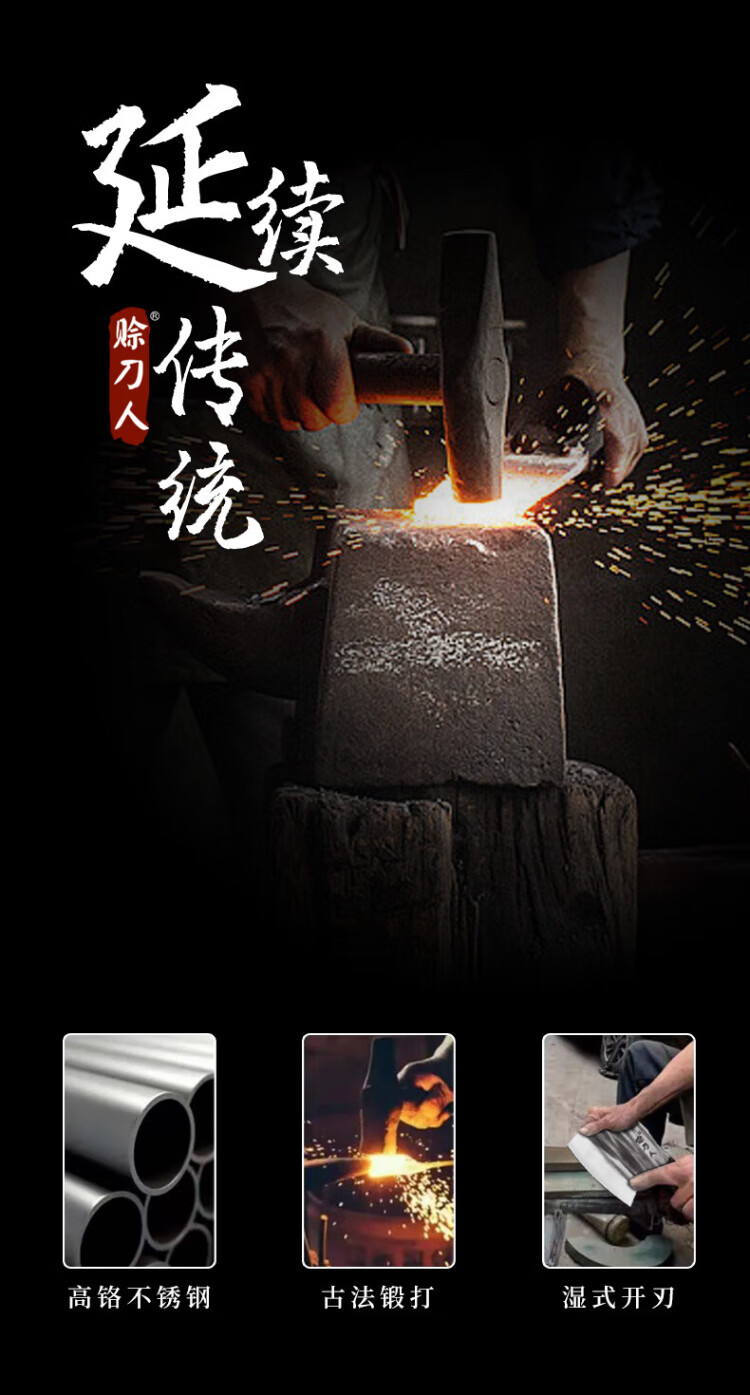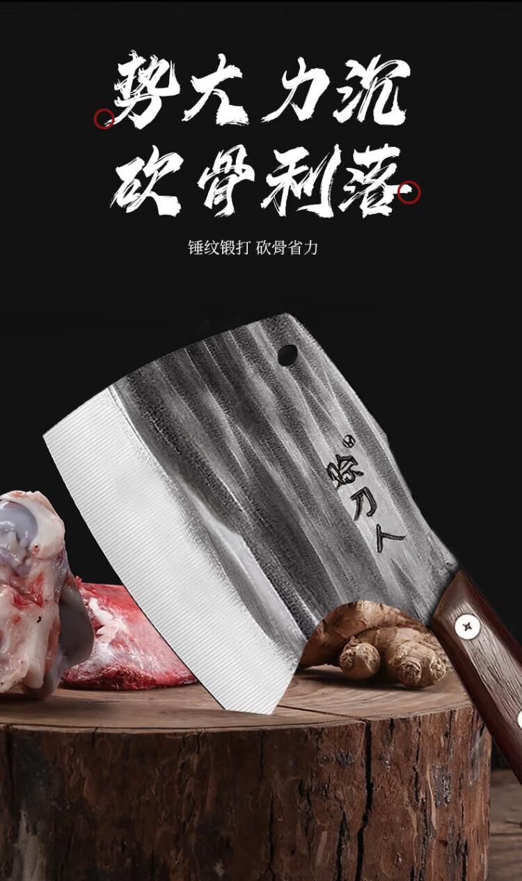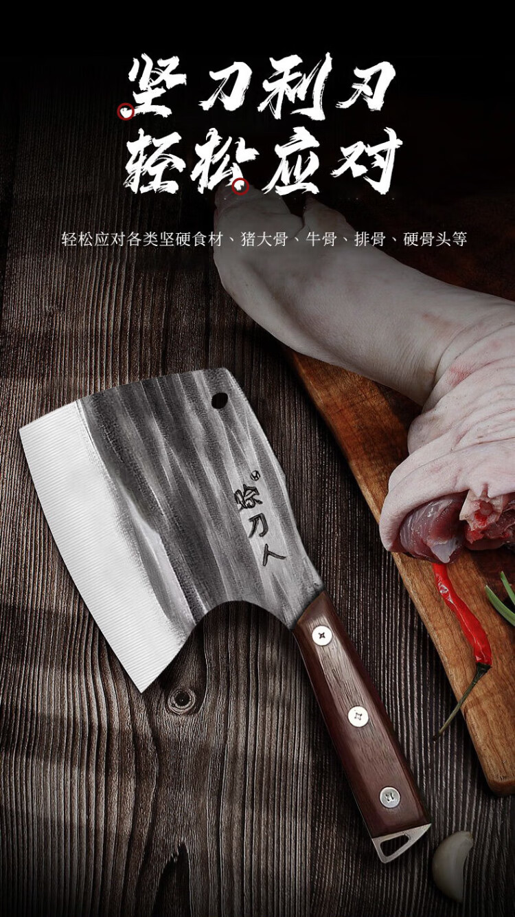 Credit Knife Man Douyin Same Style Kitchen Knife Kitchen Knife Stainless Steel Sharp Household Ancient Forged Kitchen Diamond Bone Chopping Ax
