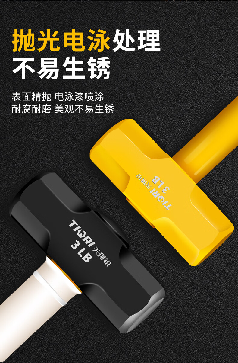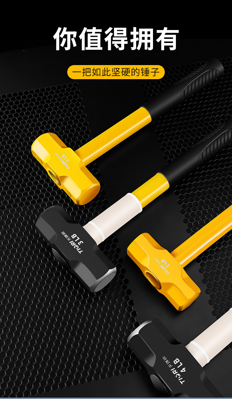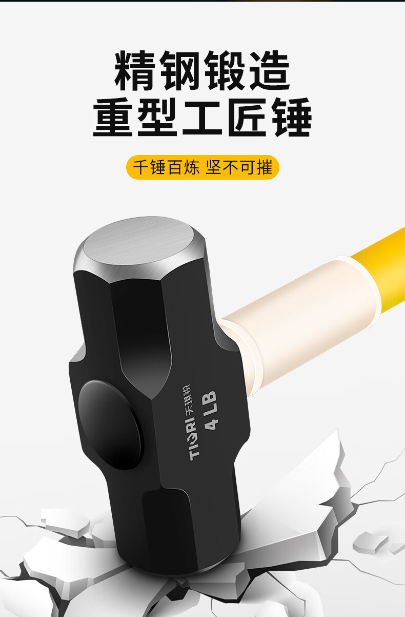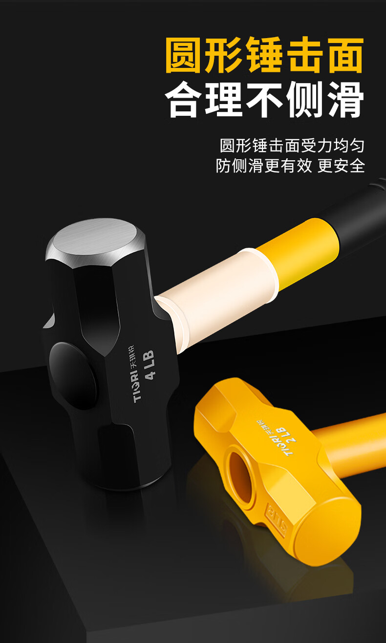 Tianqirui octagonal hammer construction site hammer solid wall smashing heavy-duty hand hammer demolition wall shock-proof handle large hammer 2 pounds