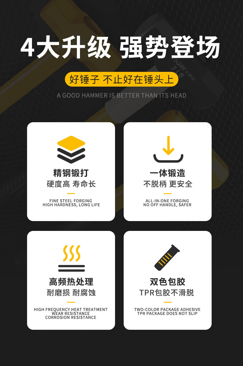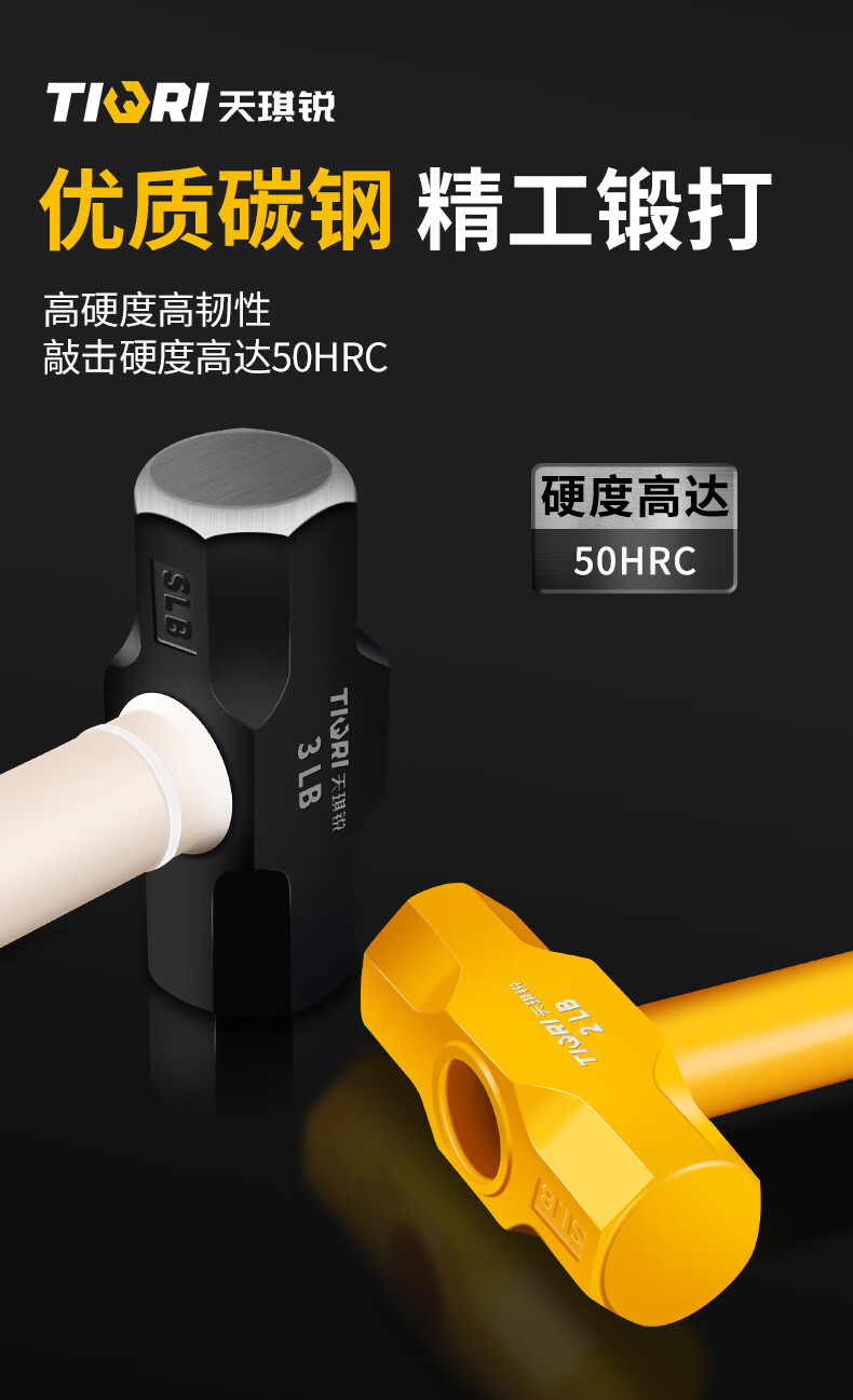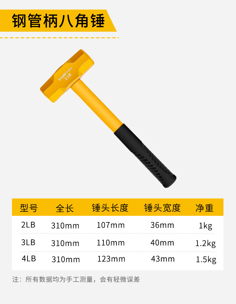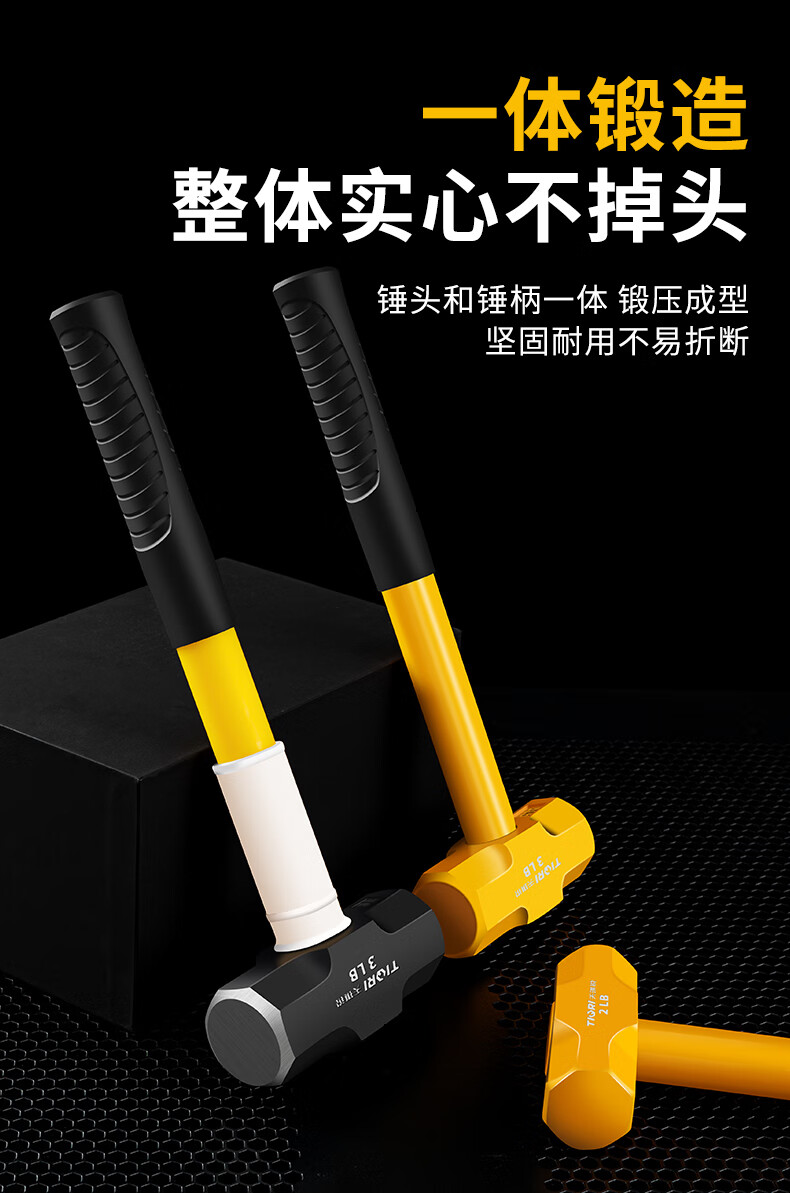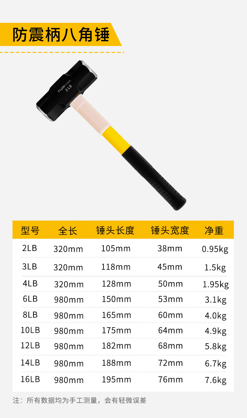 Tianqirui octagonal hammer construction site hammer solid wall smashing heavy-duty hand hammer demolition wall shock-proof handle large hammer 2 pounds