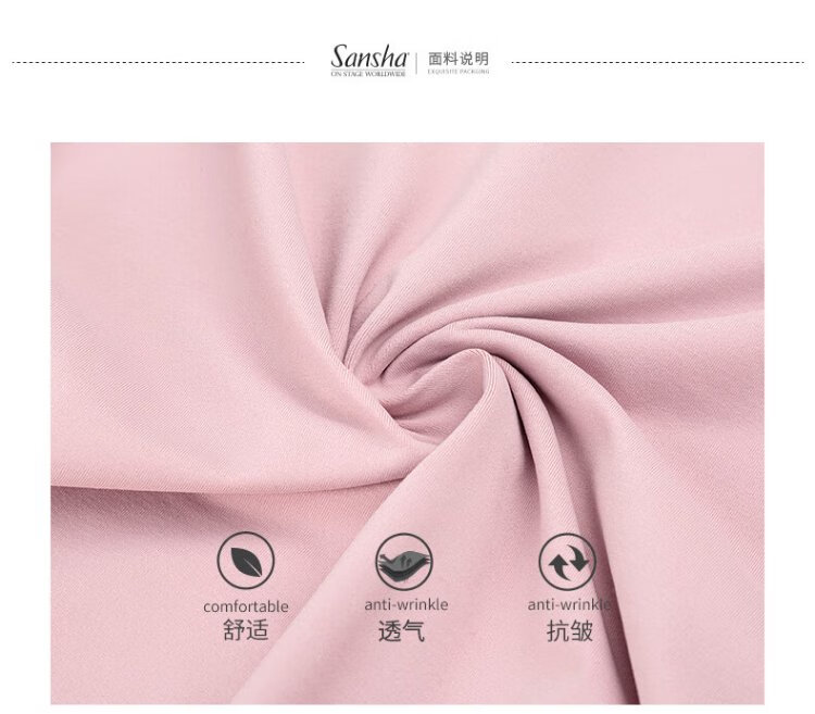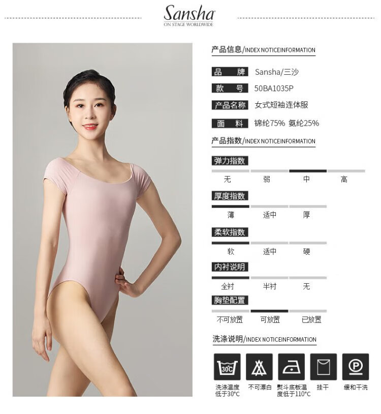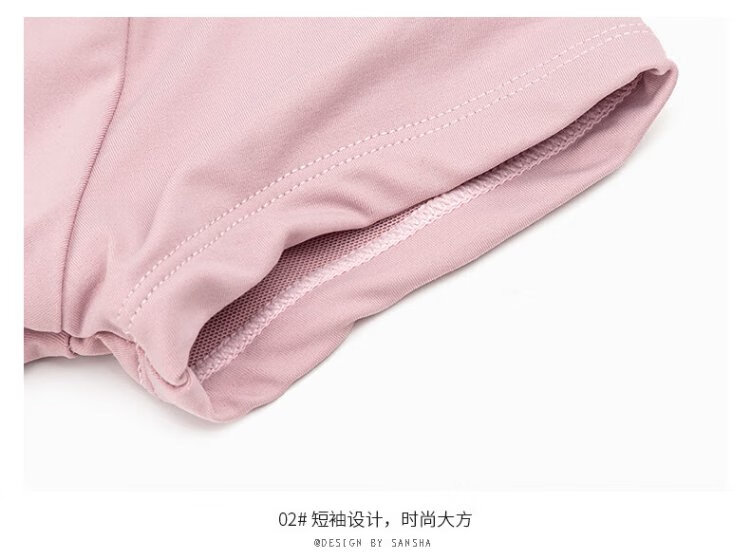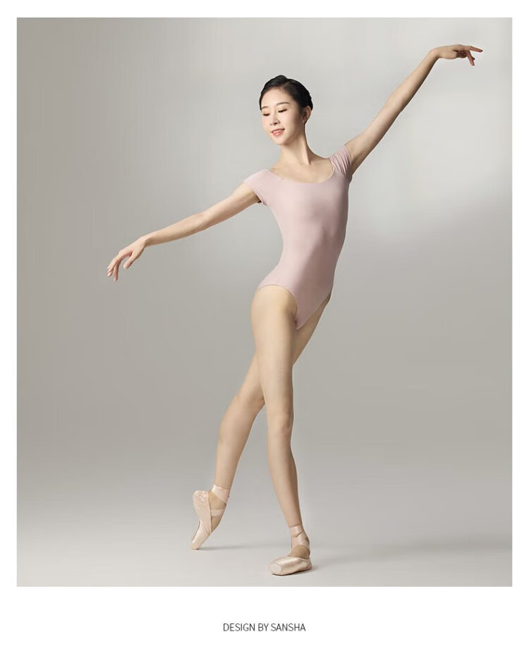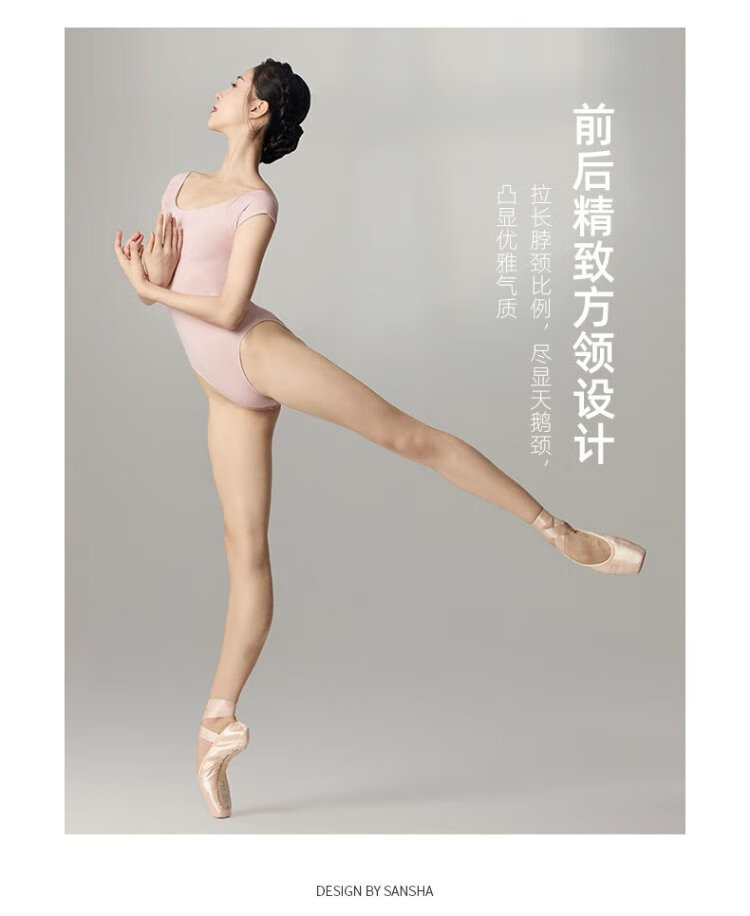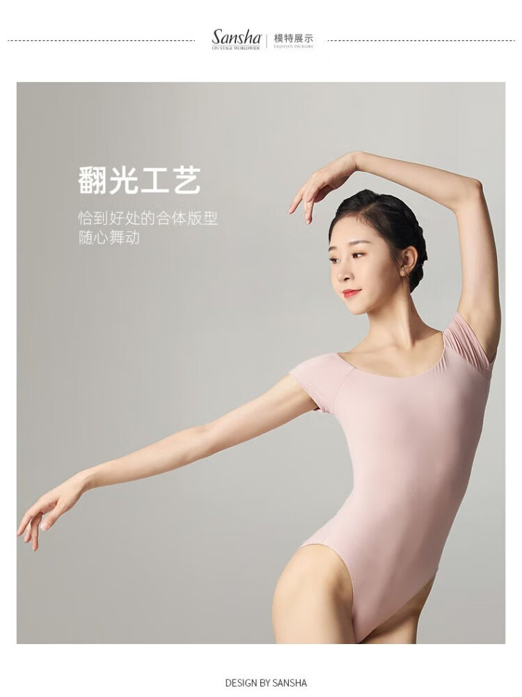 Sansha ballet clothing for women, dance practice clothing, high elastic short-sleeved one-piece collar, pink L