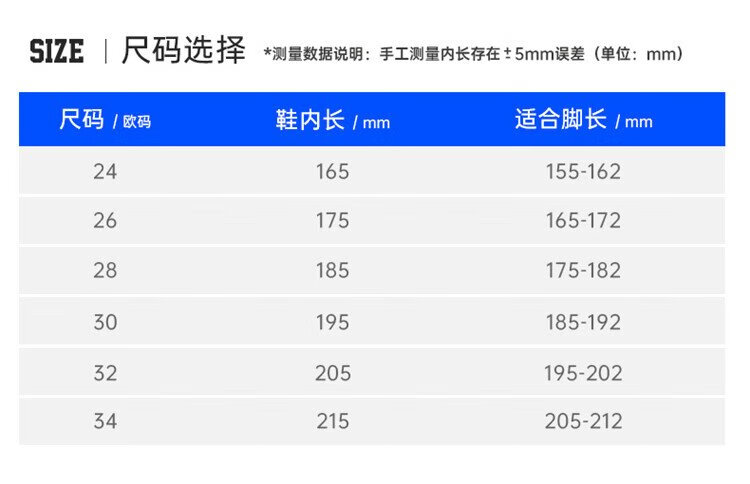 China (cm) 36 - 37 38 - 39 40 - 42 43 - 44 45 - 47