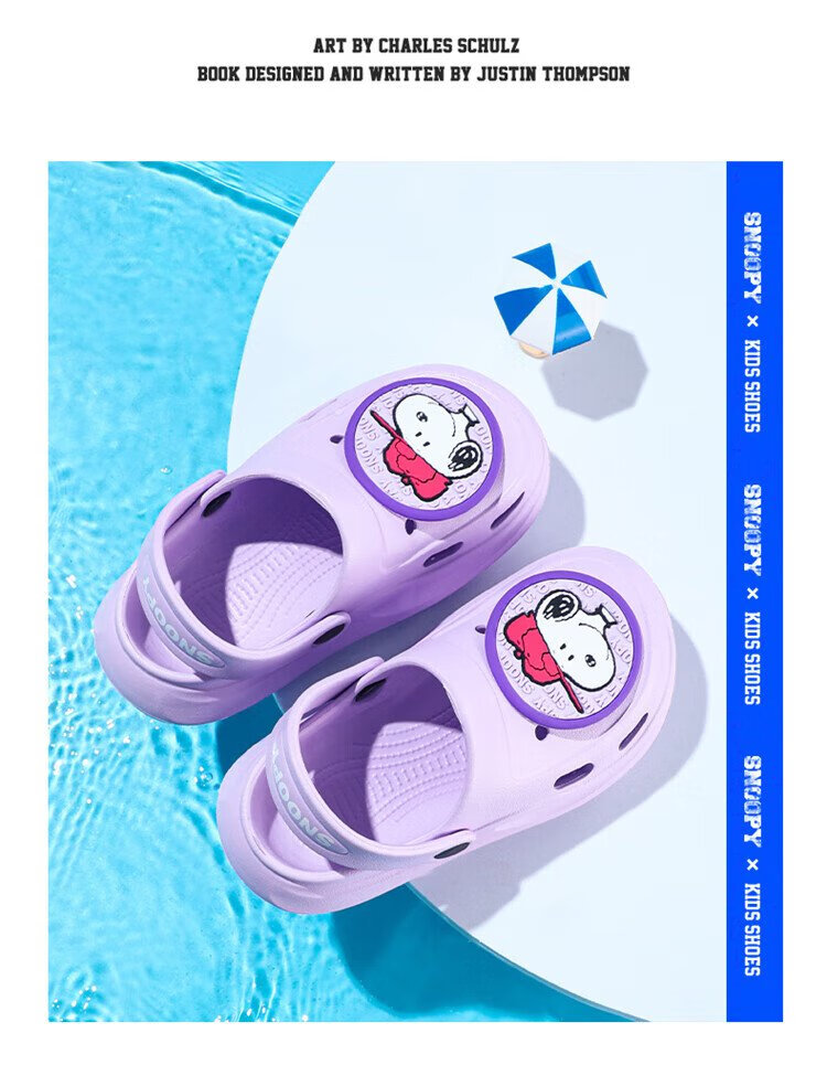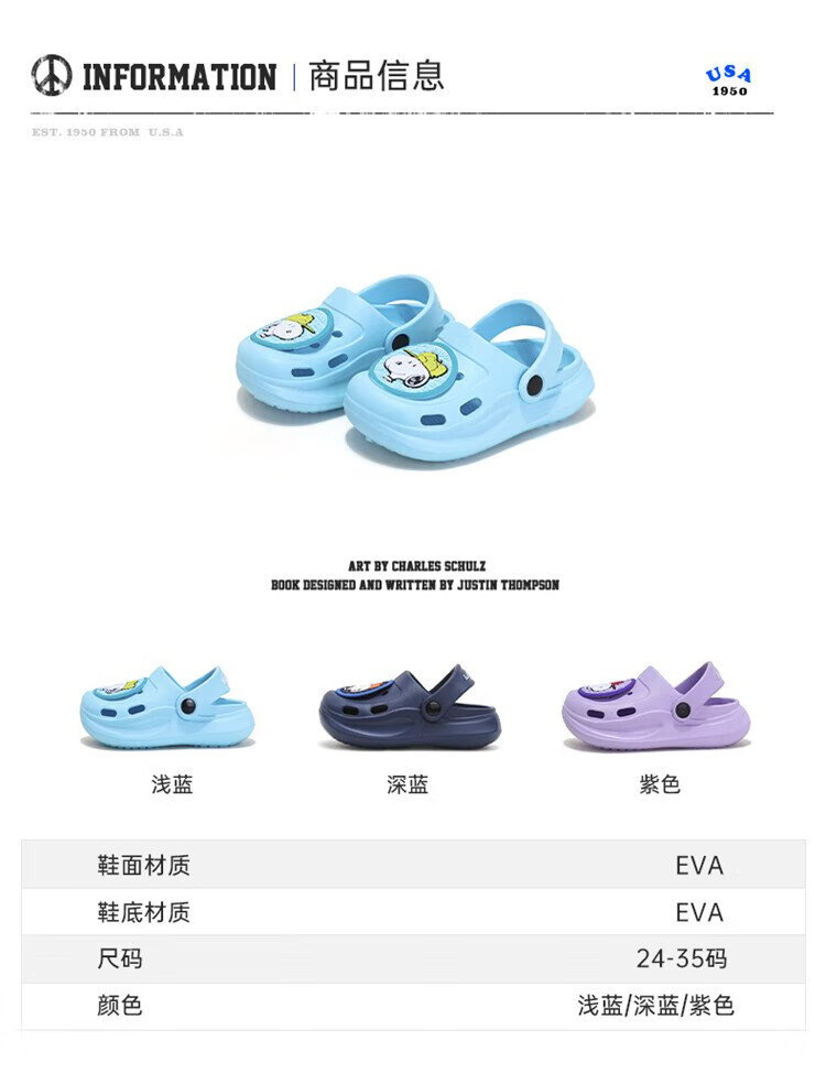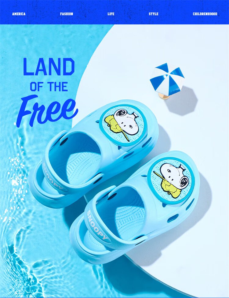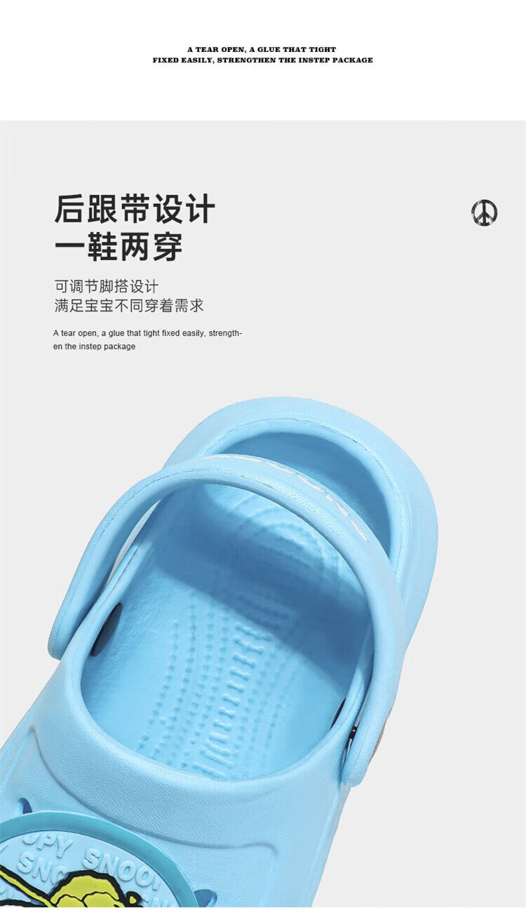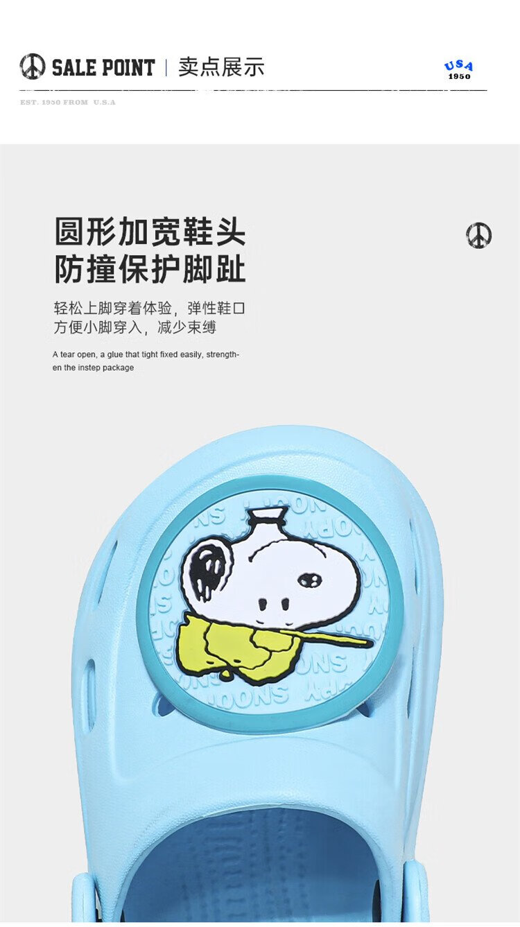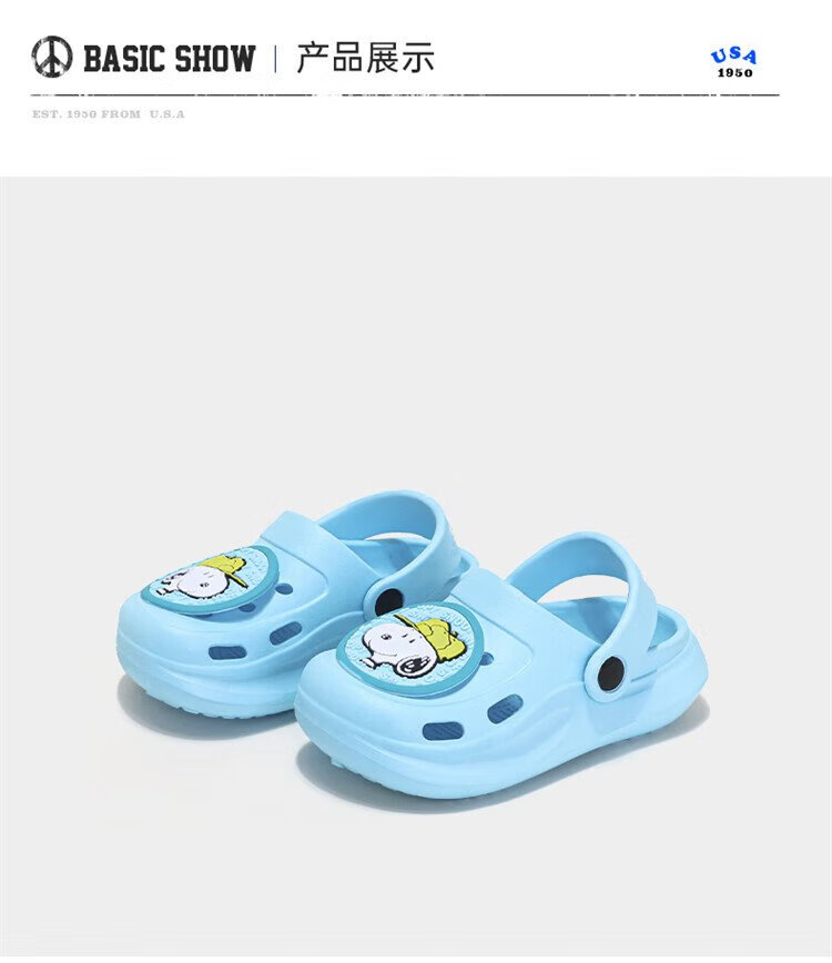 SNOOPY Snoopy children's shoes children's hole shoes boys and girls garden shoes cartoon four seasons home slippers 3943 light blue 24