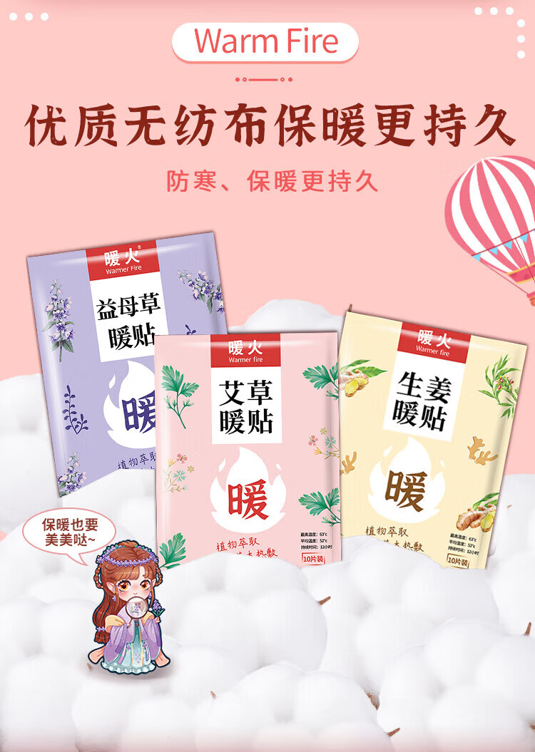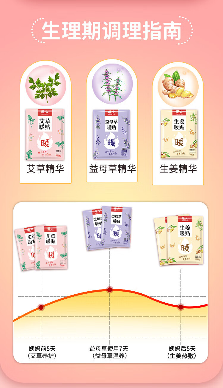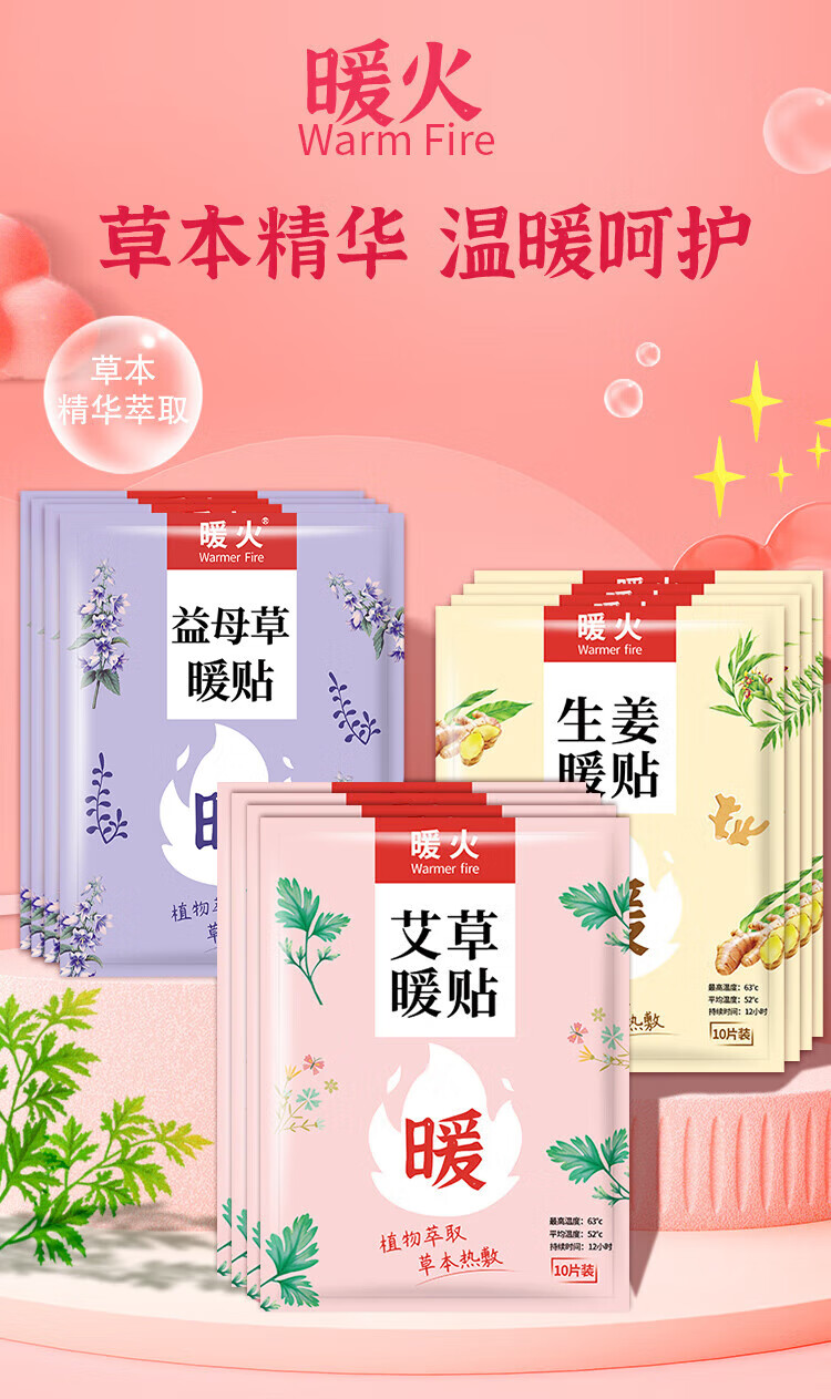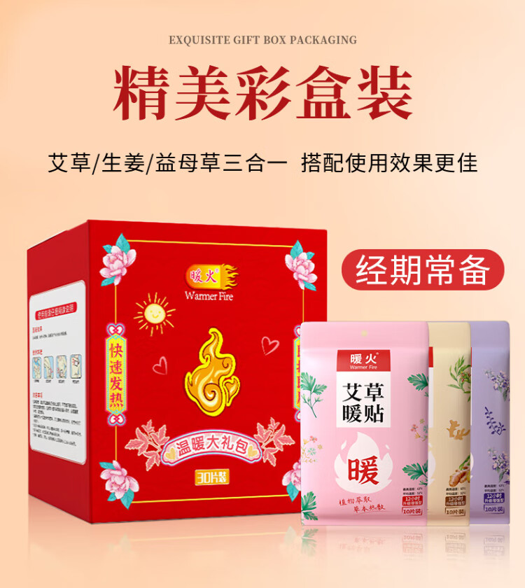 Nuanhuo Nuanbao Warming Patch 30 pieces, mugwort, motherwort and ginger, 10 pieces each, Gong Nuan Auntie Warm Waist Warmer, self-heating to keep warm